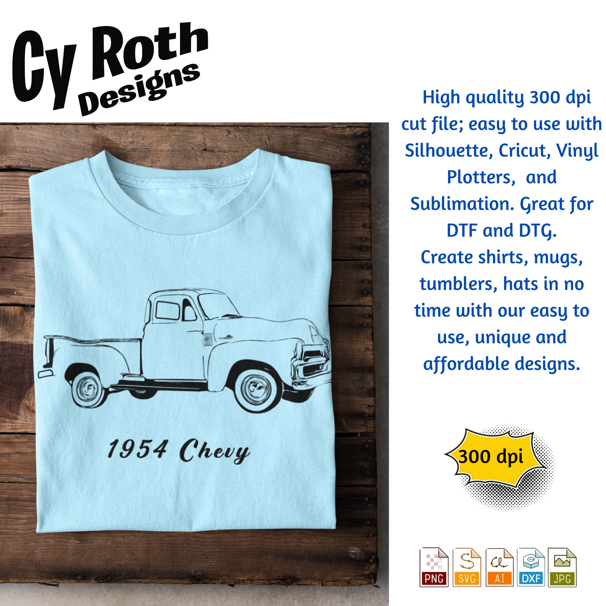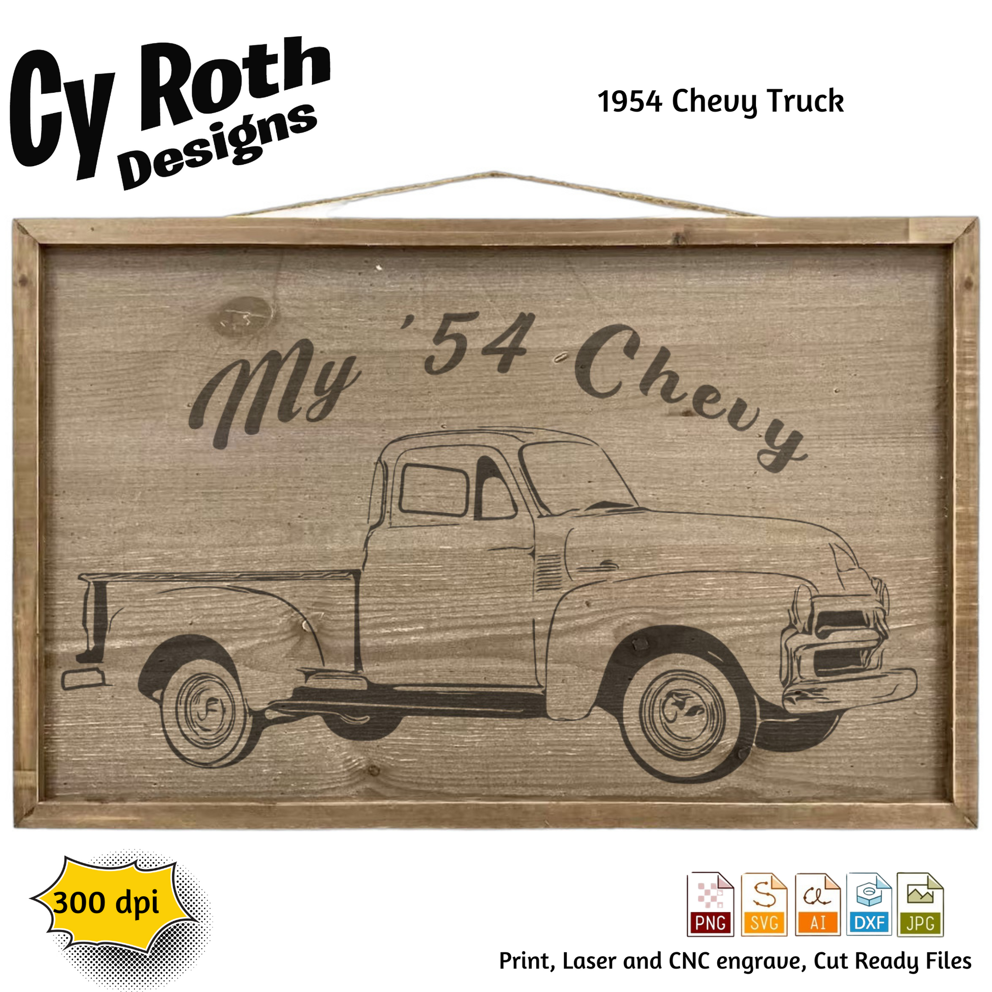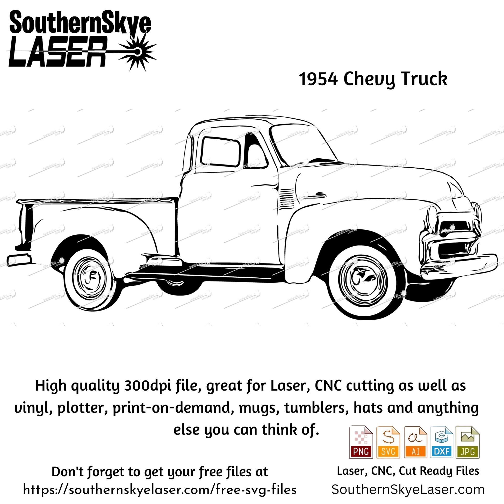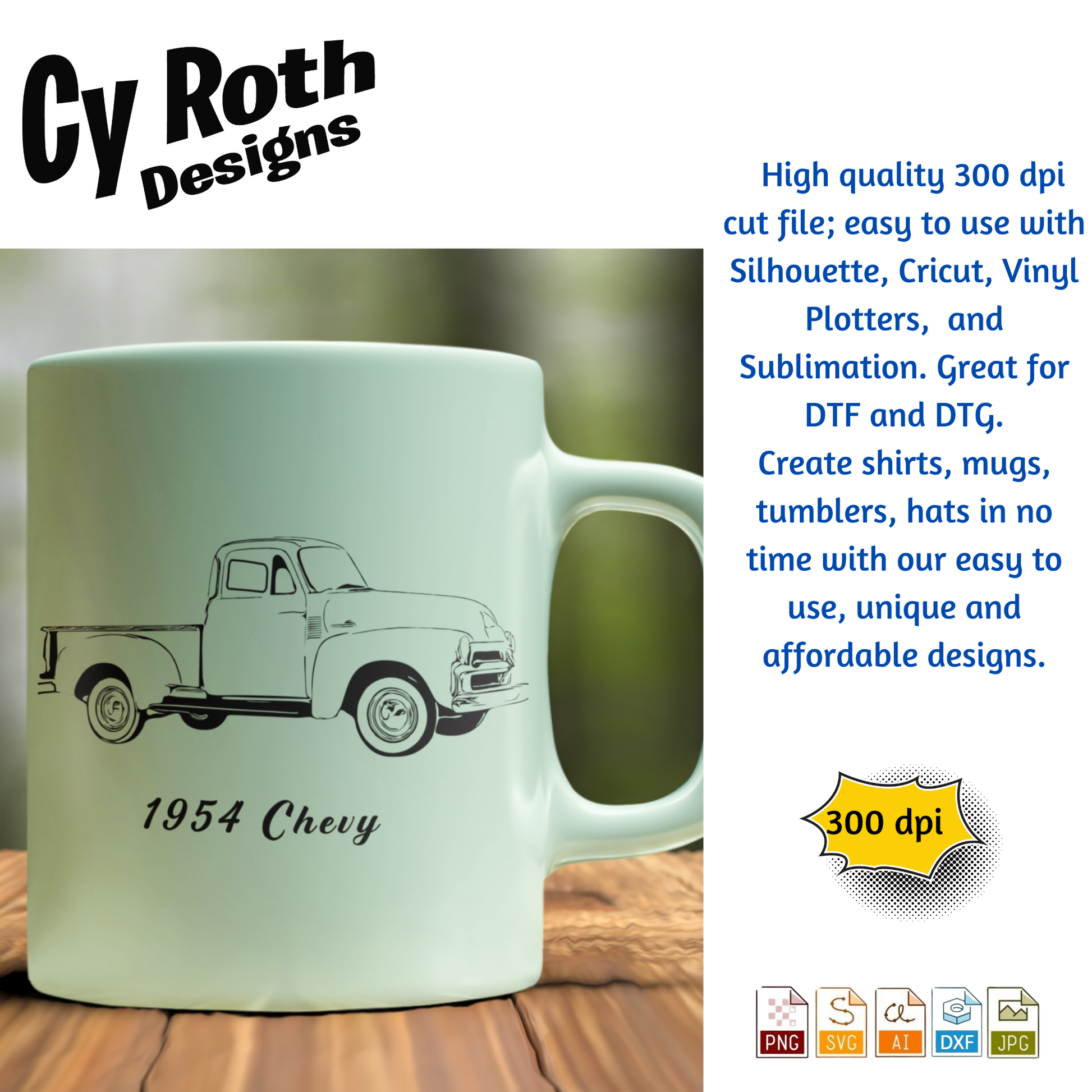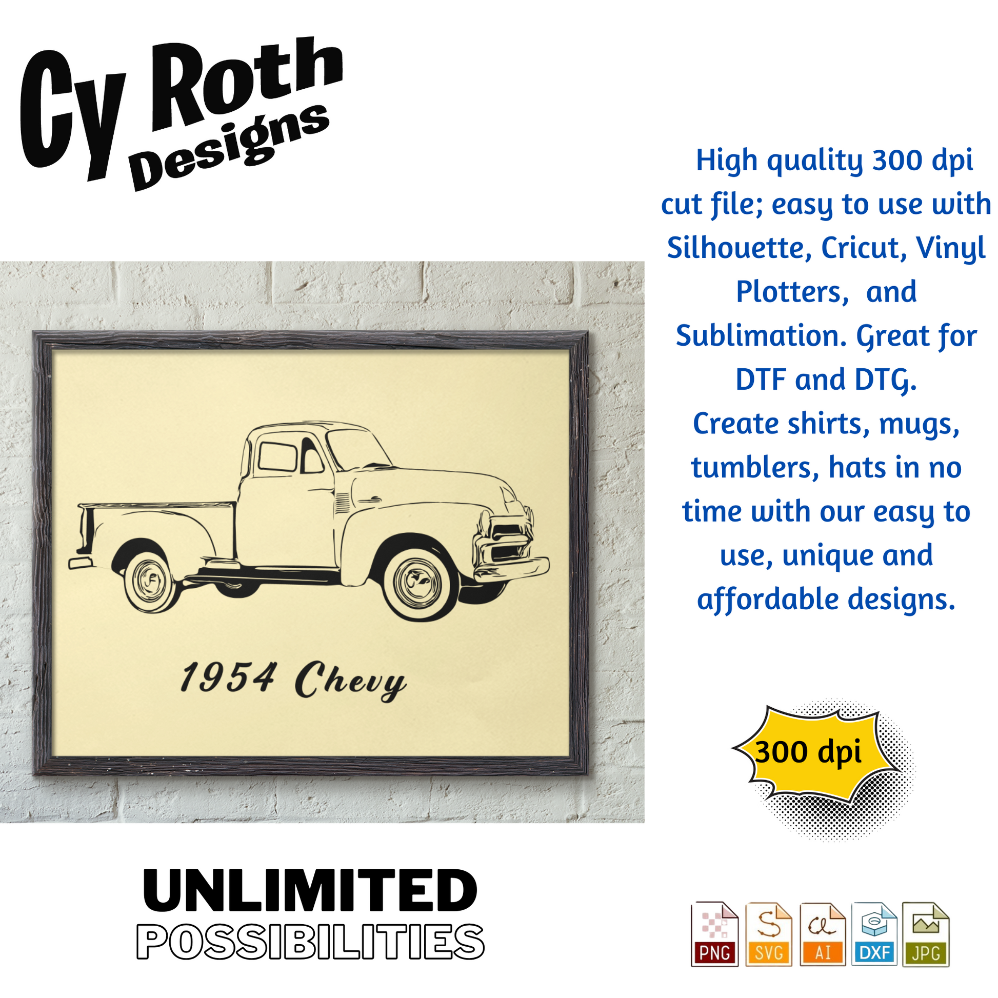 1954 Chevy Truck svg png jpg ai dxf file, for Silhouette, Cricut, Vinyl Plotters, Laser, CNC and Sublimation. Great for DTF and DTG.