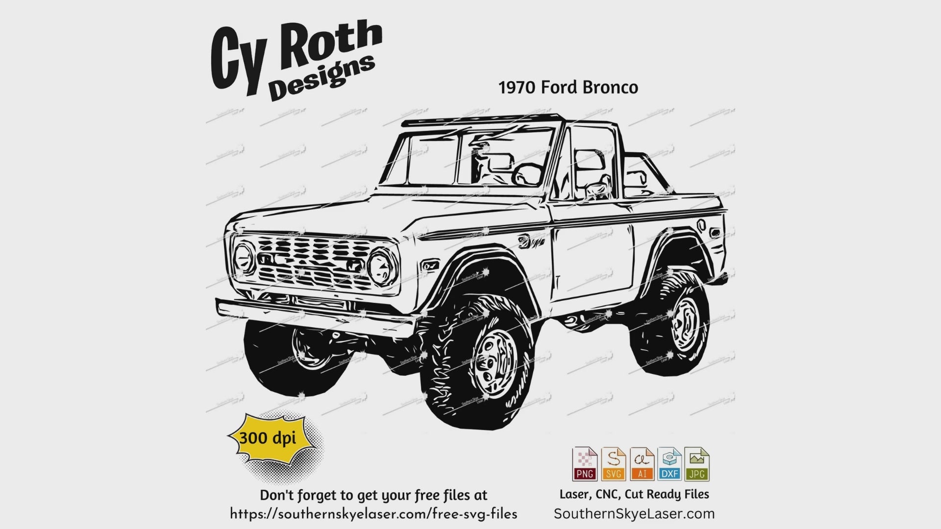 1970 Ford Bronco svg png jpg ai dxf file, for Silhouette, Cricut, Vinyl Plotters, Laser, CNC and Sublimation. Great for DTF and DTG.