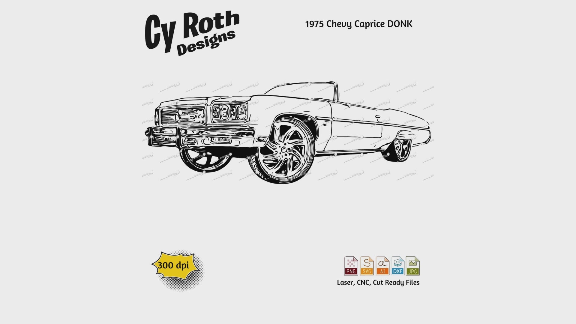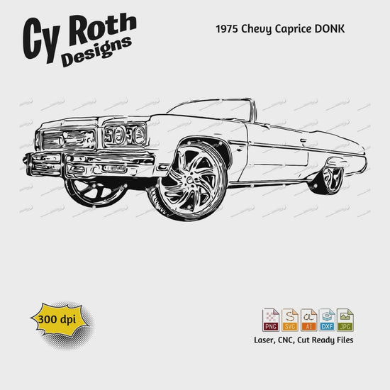 1975 Chevy Caprice DONK svg png jpg ai dxf file, for Silhouette, Cricut, Vinyl Plotters, Laser, CNC and Sublimation. Great for DTF and DTG.