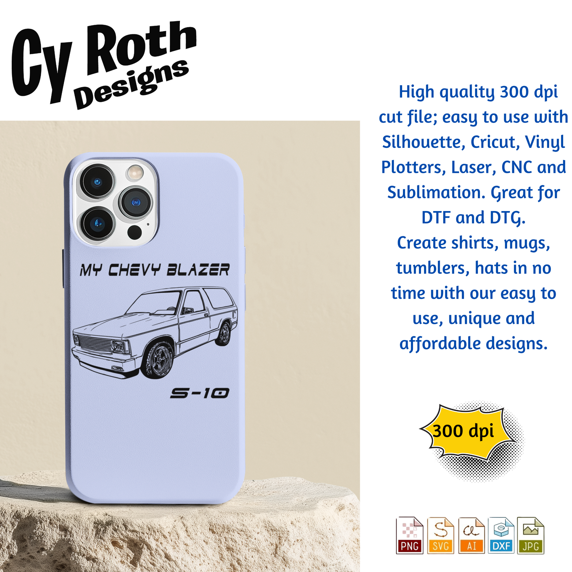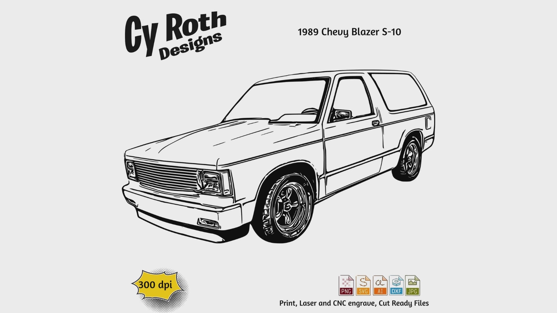 1989 Chevy S-10 Blazer svg png jpg ai dxf file, for Silhouette, Cricut, Vinyl Plotters, Laser, CNC and Sublimation. Great for DTF and DTG.