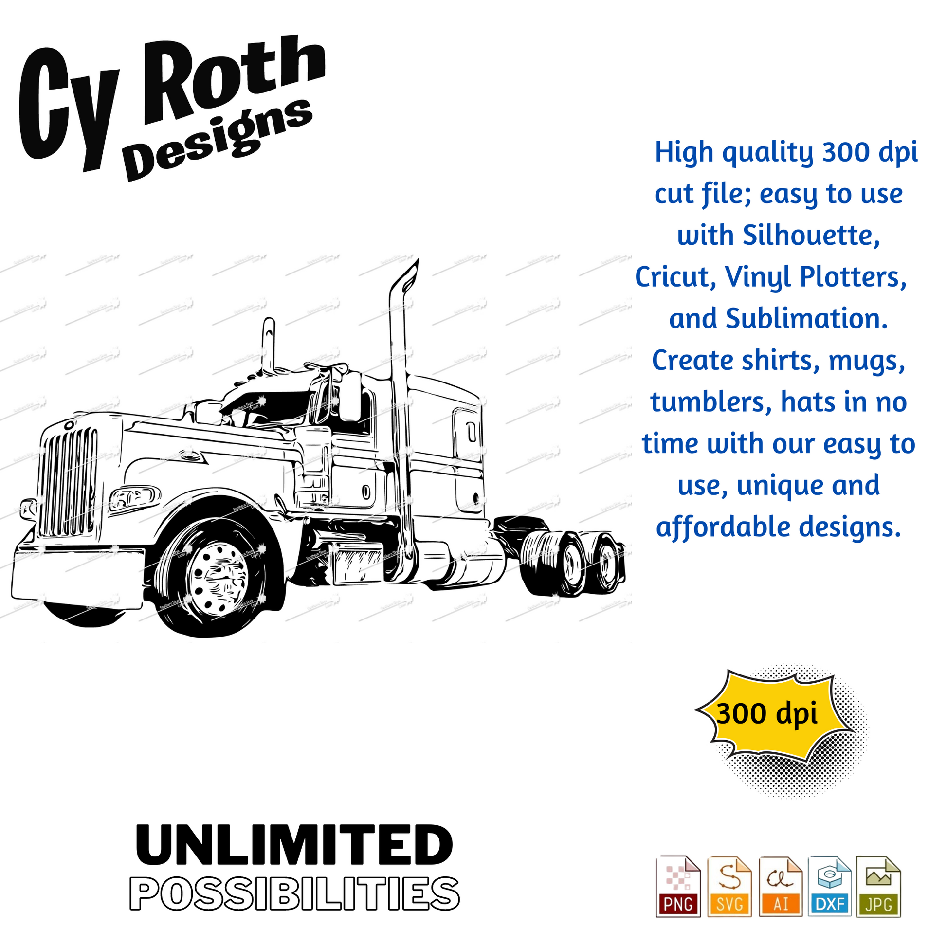 2019 Peterbilt svg png jpg ai dxf file, for Silhouette, Cricut, Vinyl Plotters, Laser, CNC and Sublimation. Great for DTF and DTG.