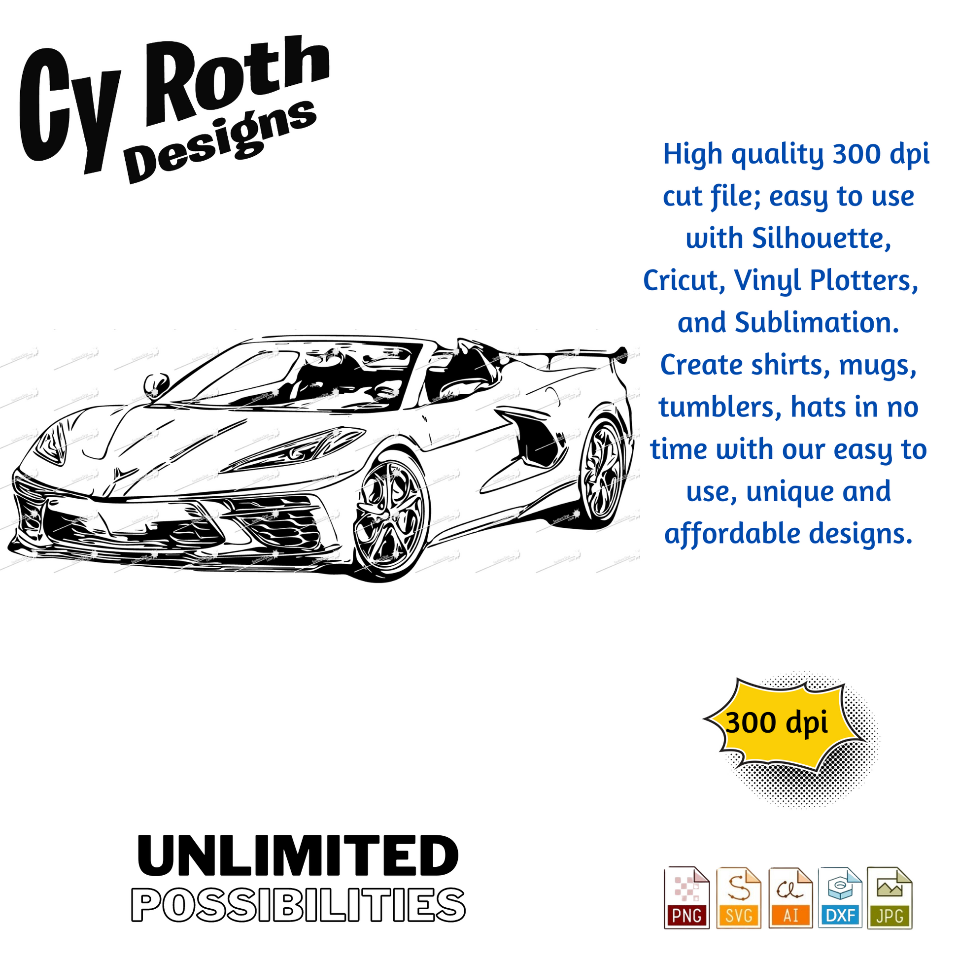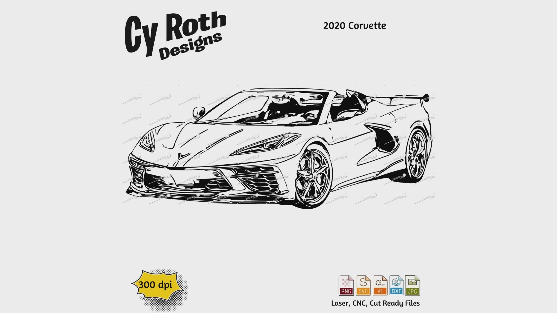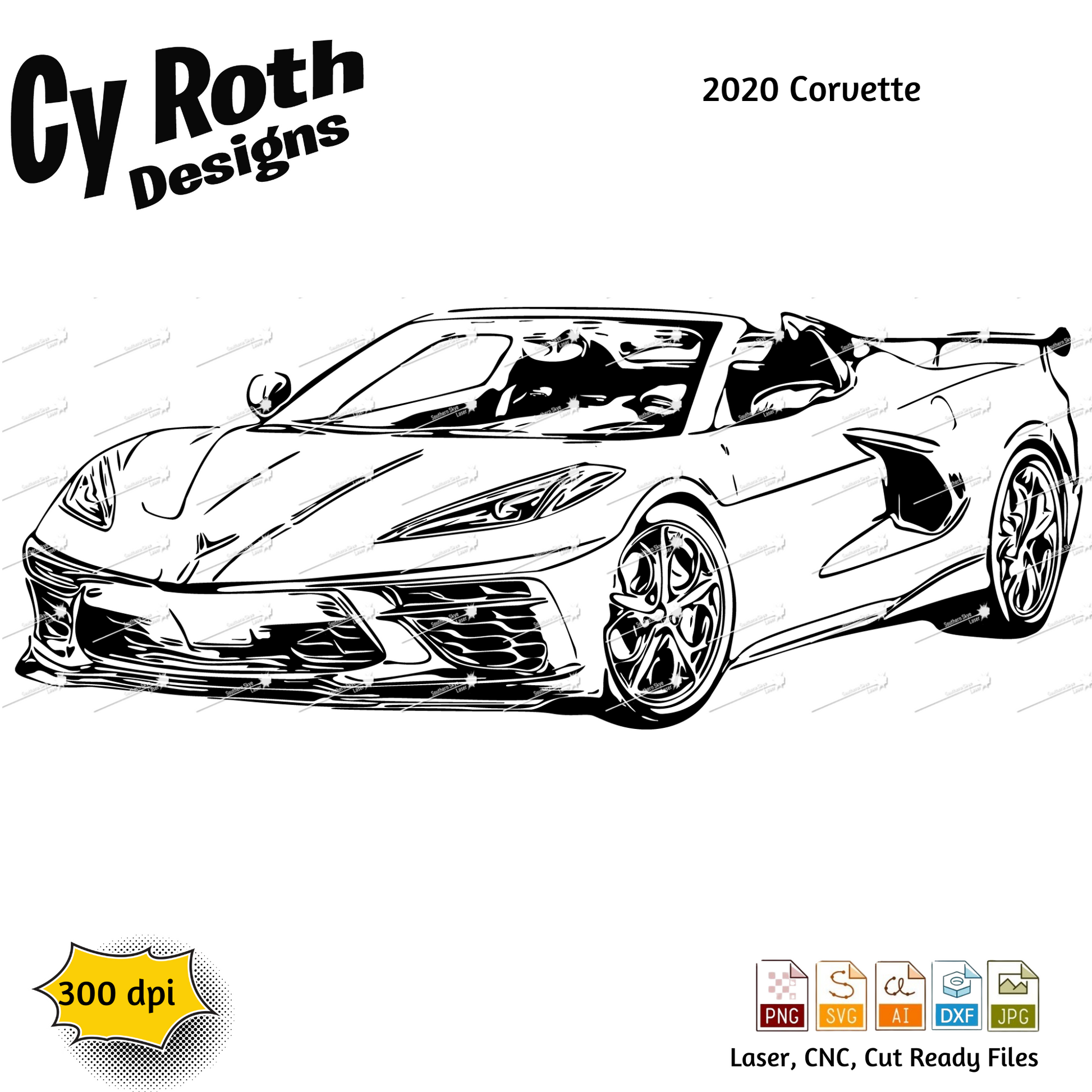 2020 Chevy Corvette svg png jpg ai dxf file, for Silhouette, Cricut, Vinyl Plotters, Laser, CNC and Sublimation. Great for DTF and DTG.