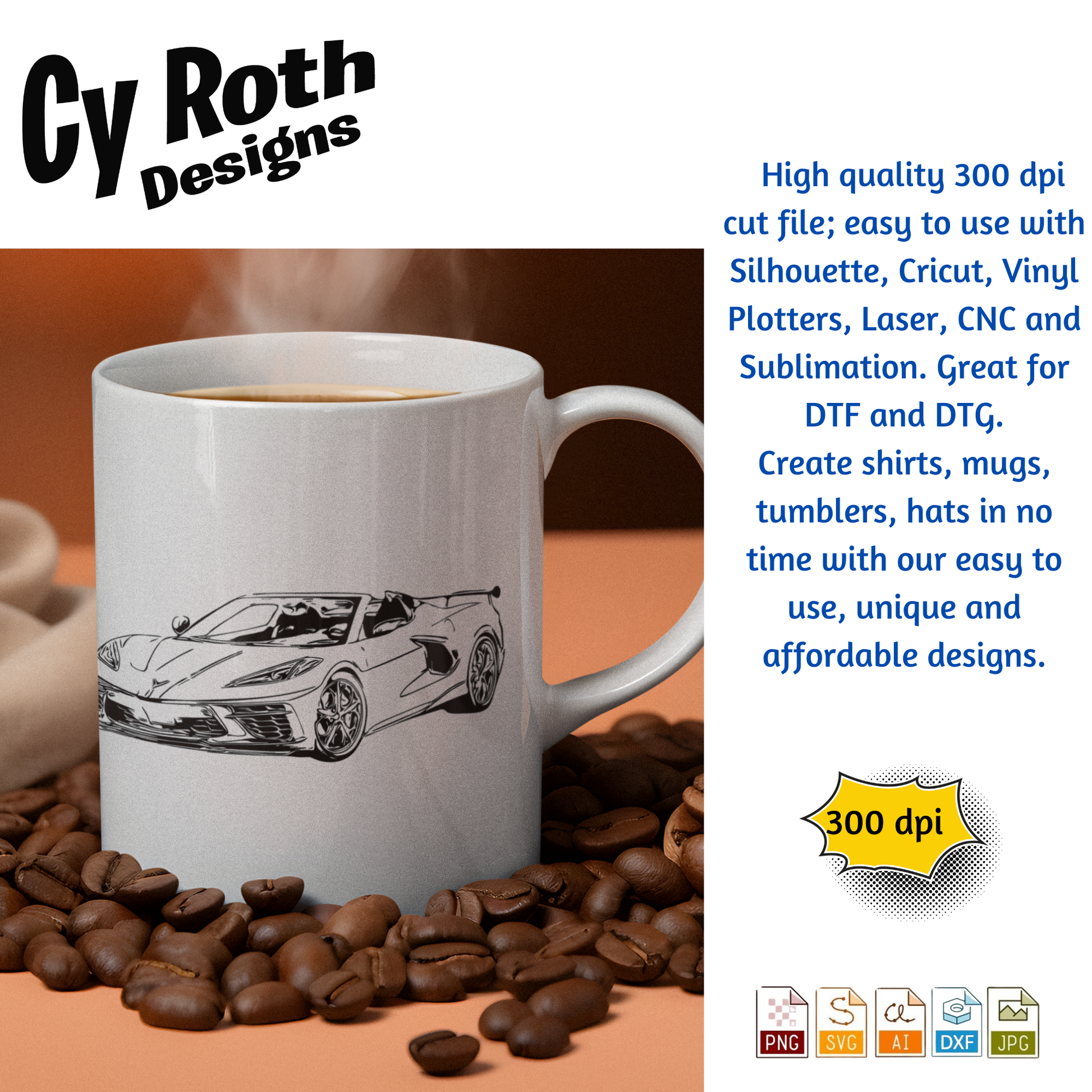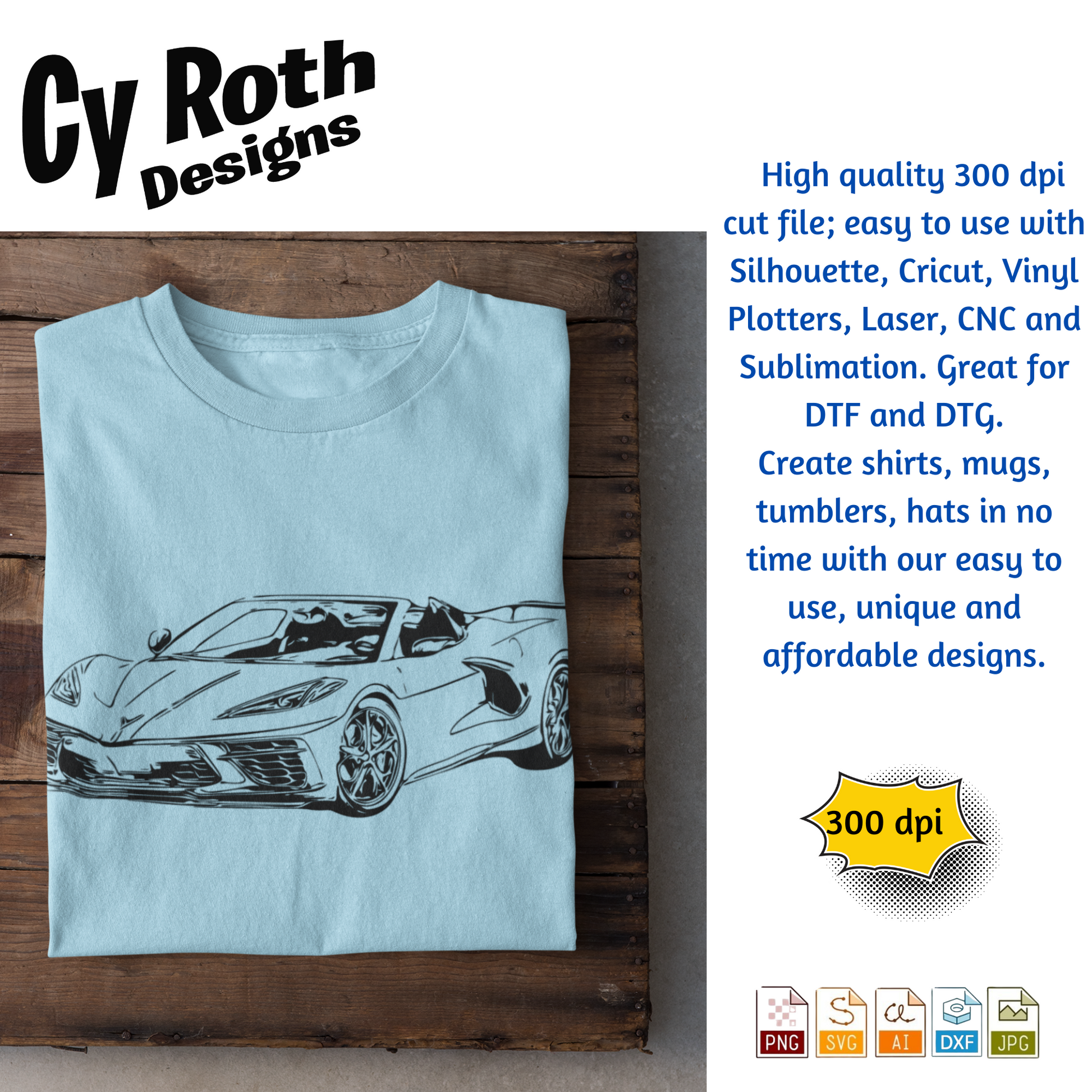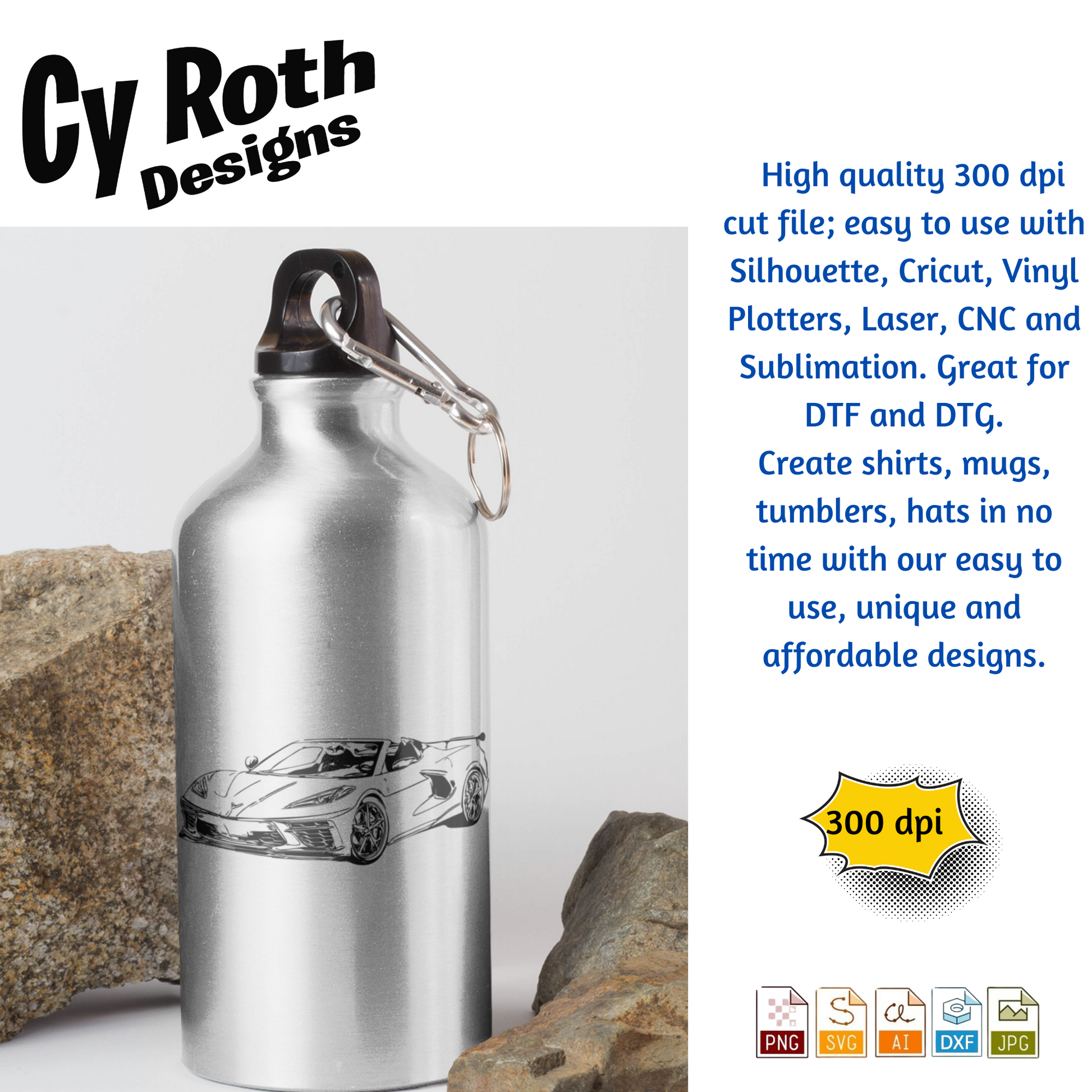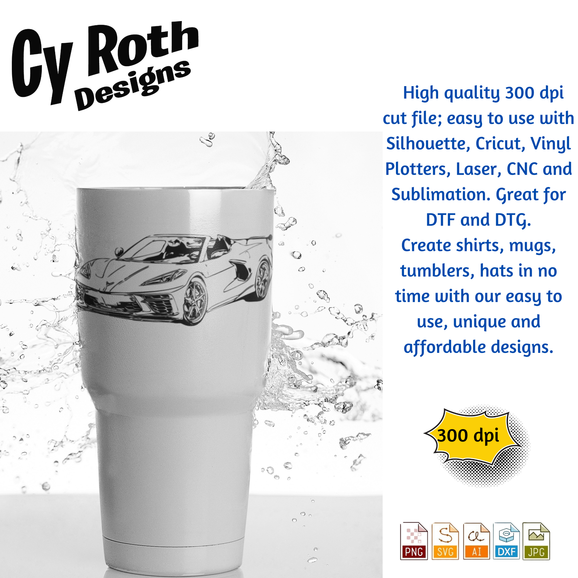 2020 Chevy Corvette svg png jpg ai dxf file, for Silhouette, Cricut, Vinyl Plotters, Laser, CNC and Sublimation. Great for DTF and DTG.