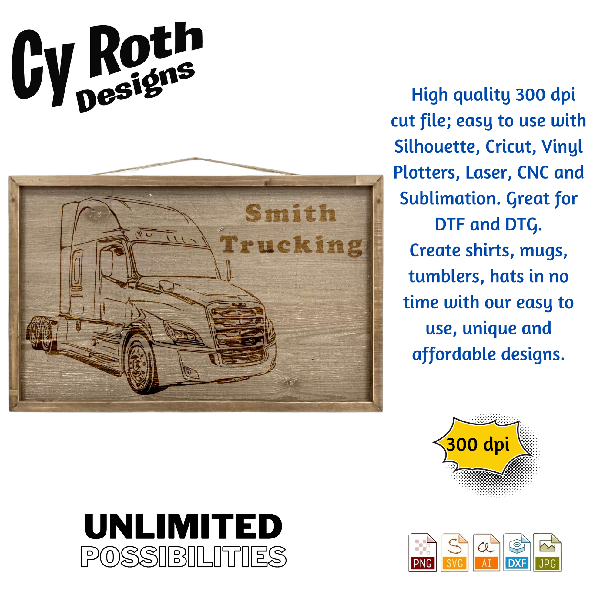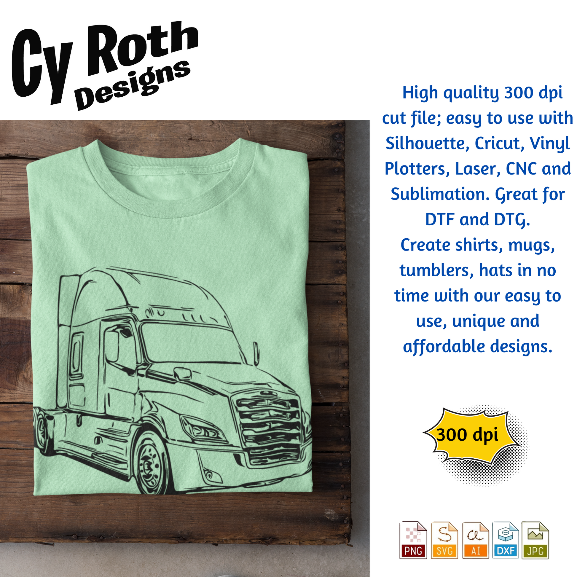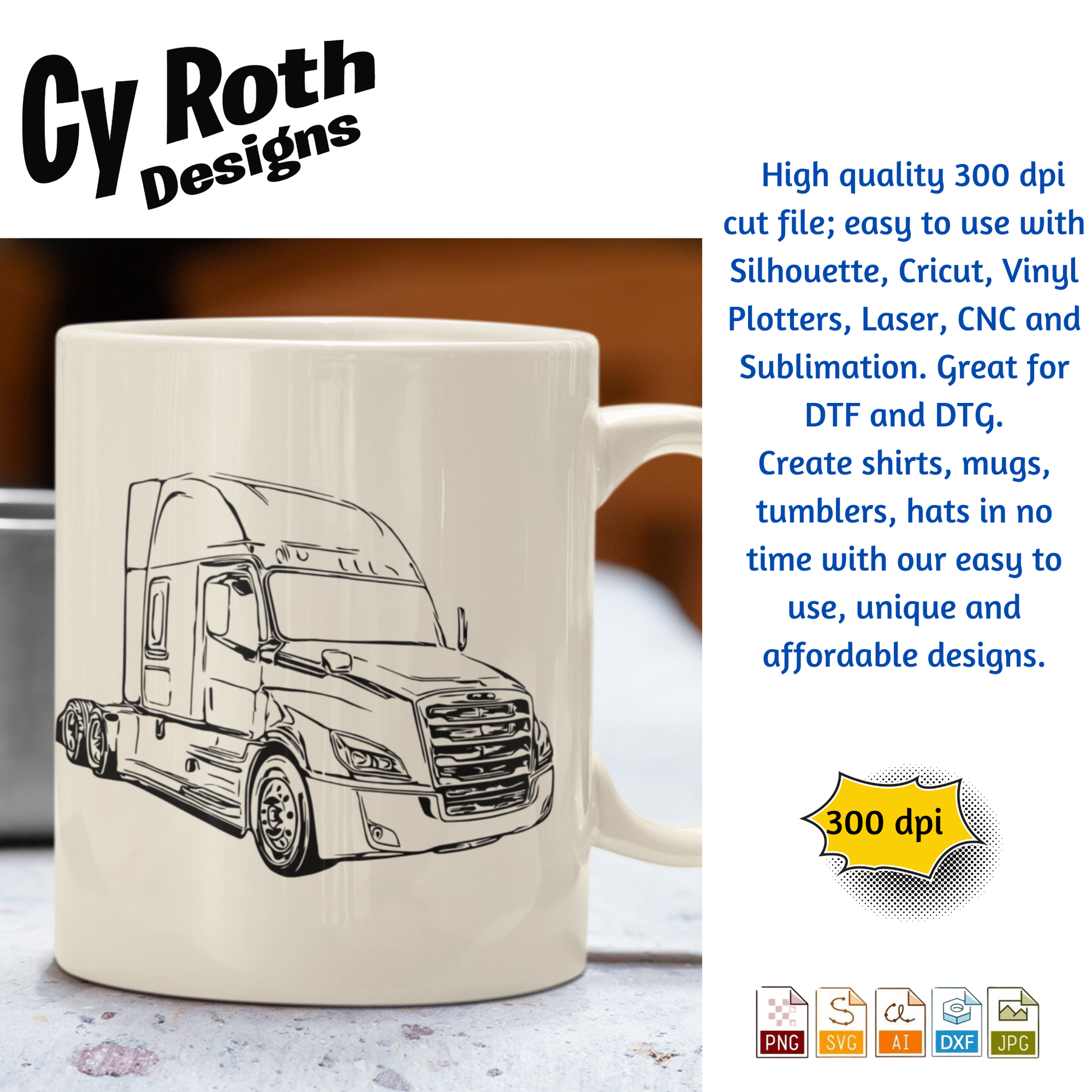 2020 Freightliner Cascadia svg png jpg ai dxf file, for Silhouette, Cricut, Vinyl Plotters, Laser, CNC and Sublimation. Great for DTF and DTG.