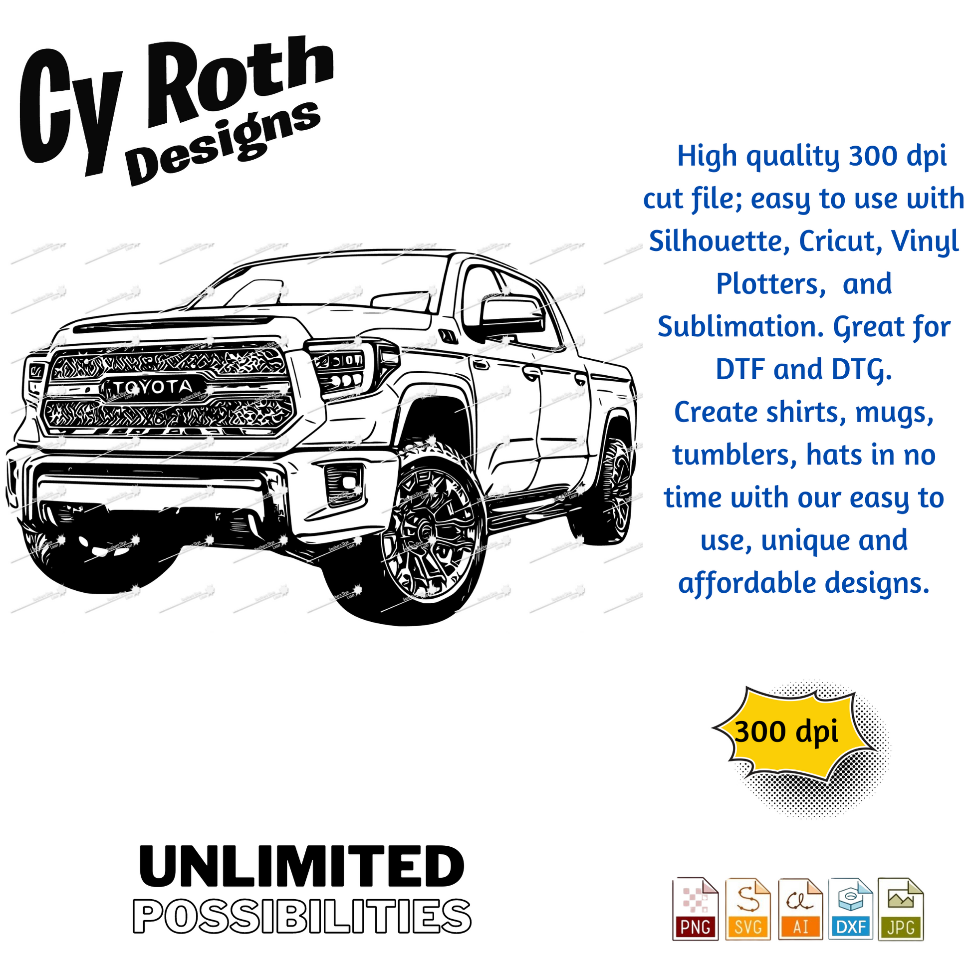 2022 Toyota Tundra svg png jpg ai dxf file, for Silhouette, Cricut, Vinyl Plotters, Laser, CNC and Sublimation. Great for DTF and DTG.