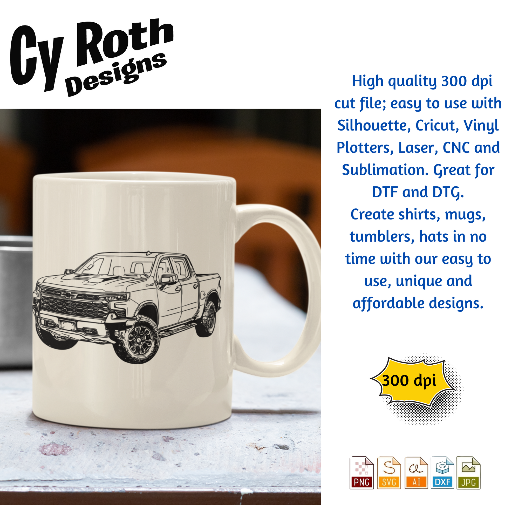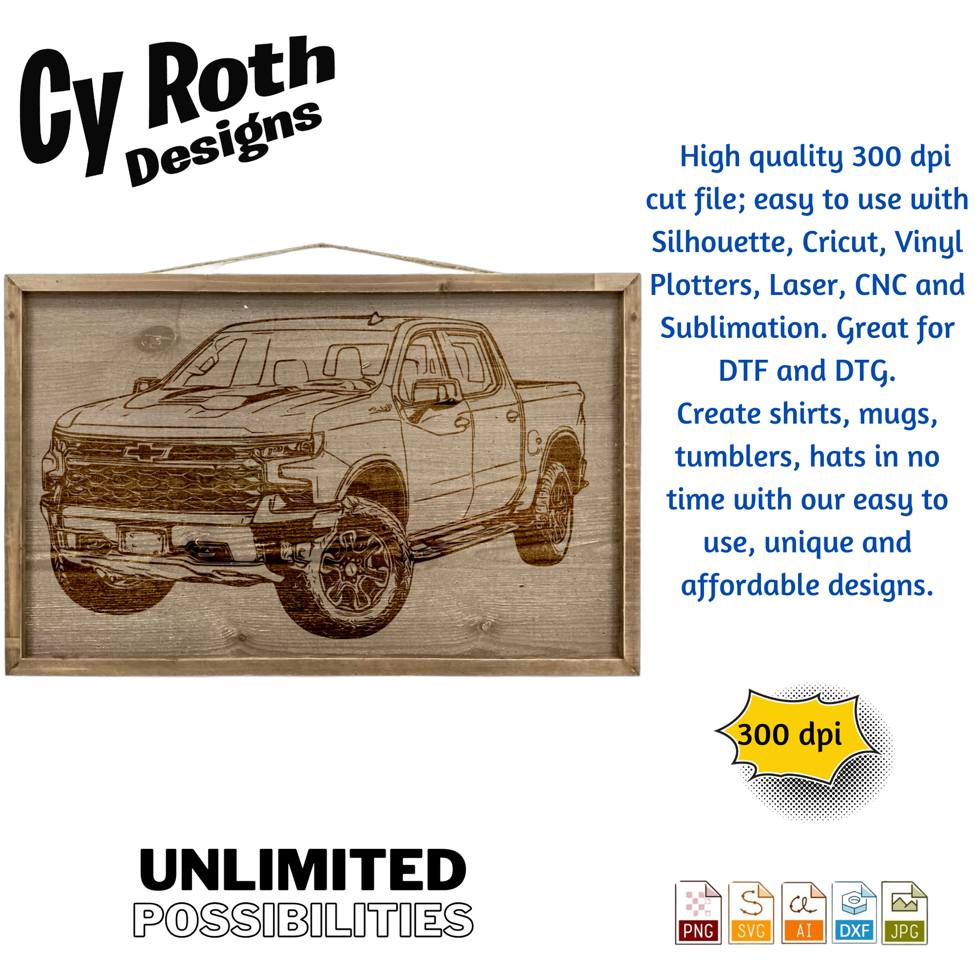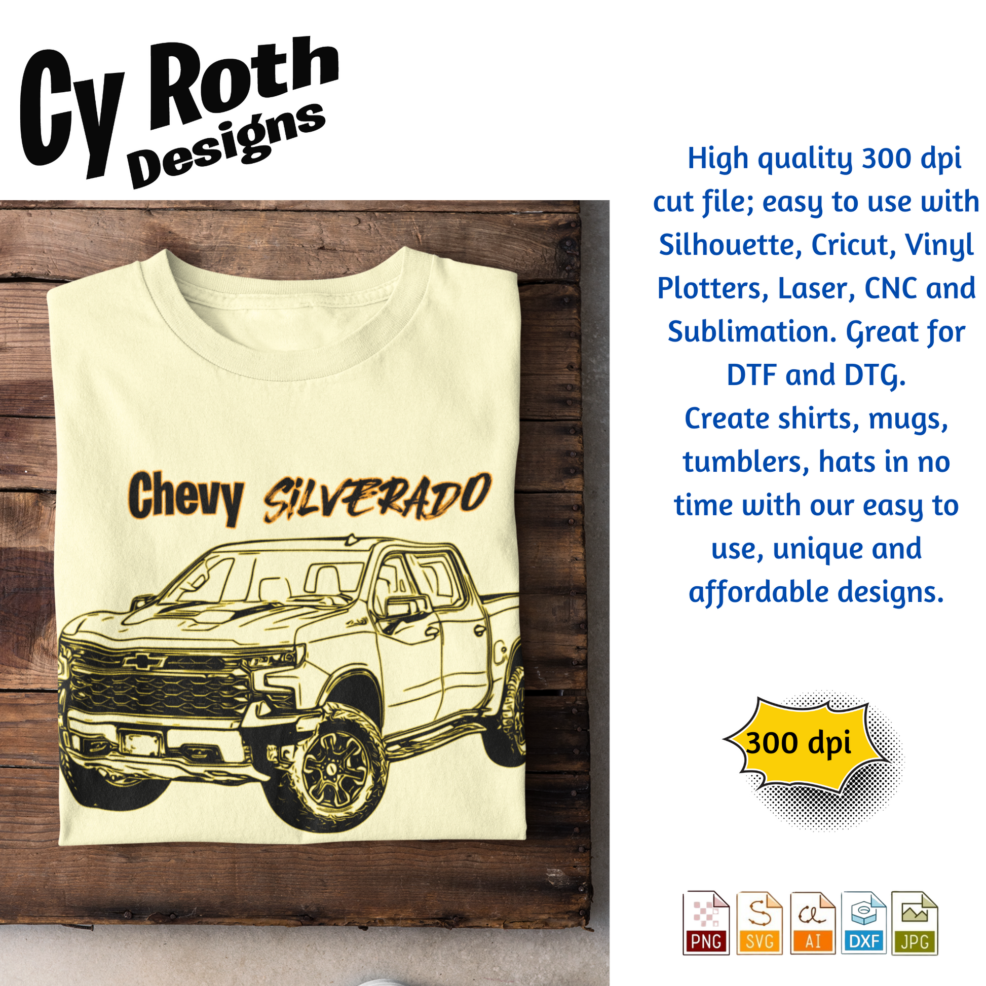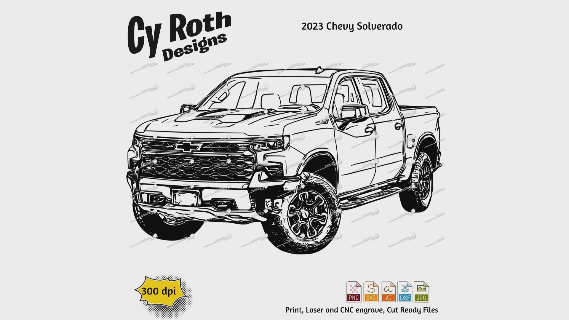 2023 Chevy Silverado svg png jpg ai dxf file, for Silhouette, Cricut, Vinyl Plotters, Laser, CNC and Sublimation. Great for DTF and DTG.