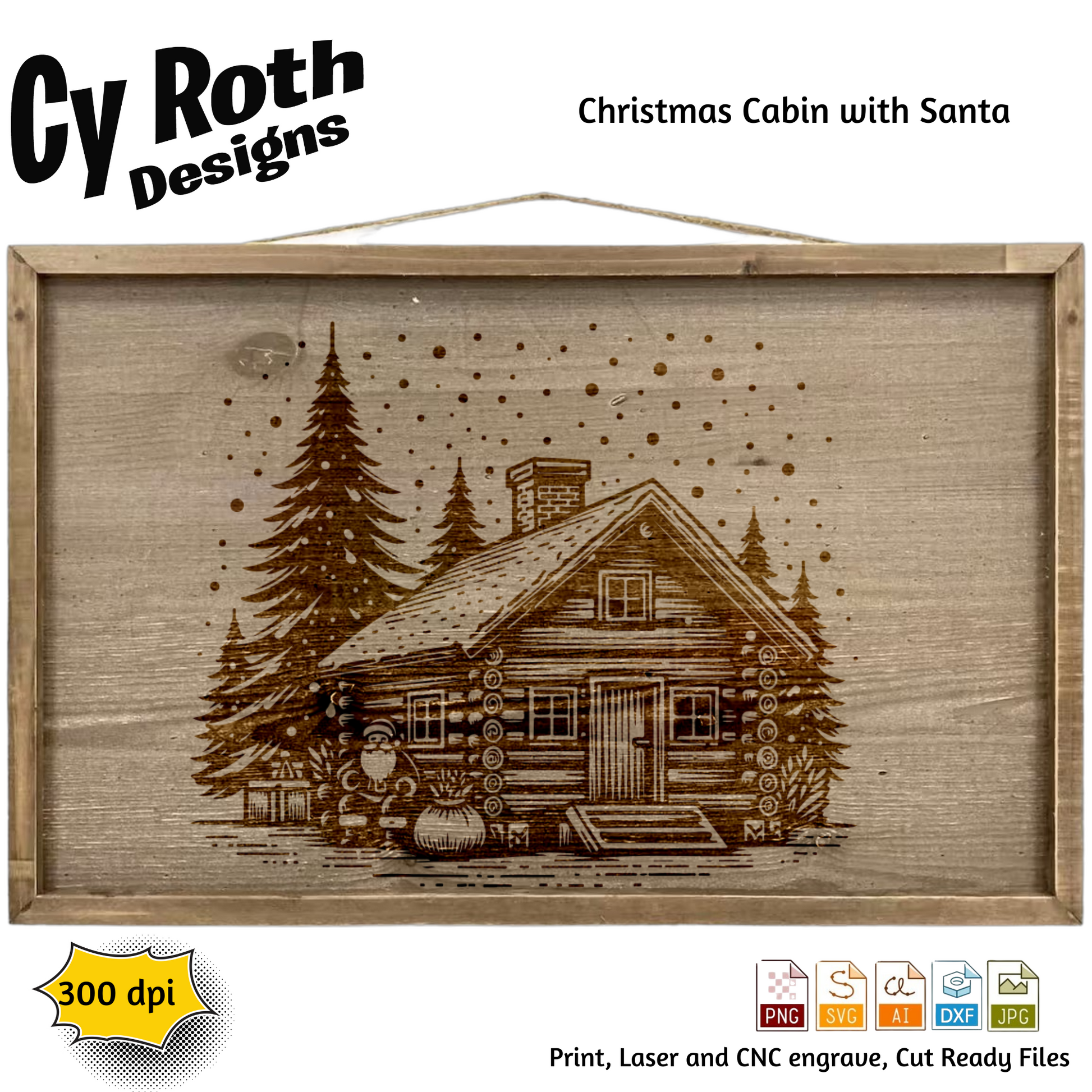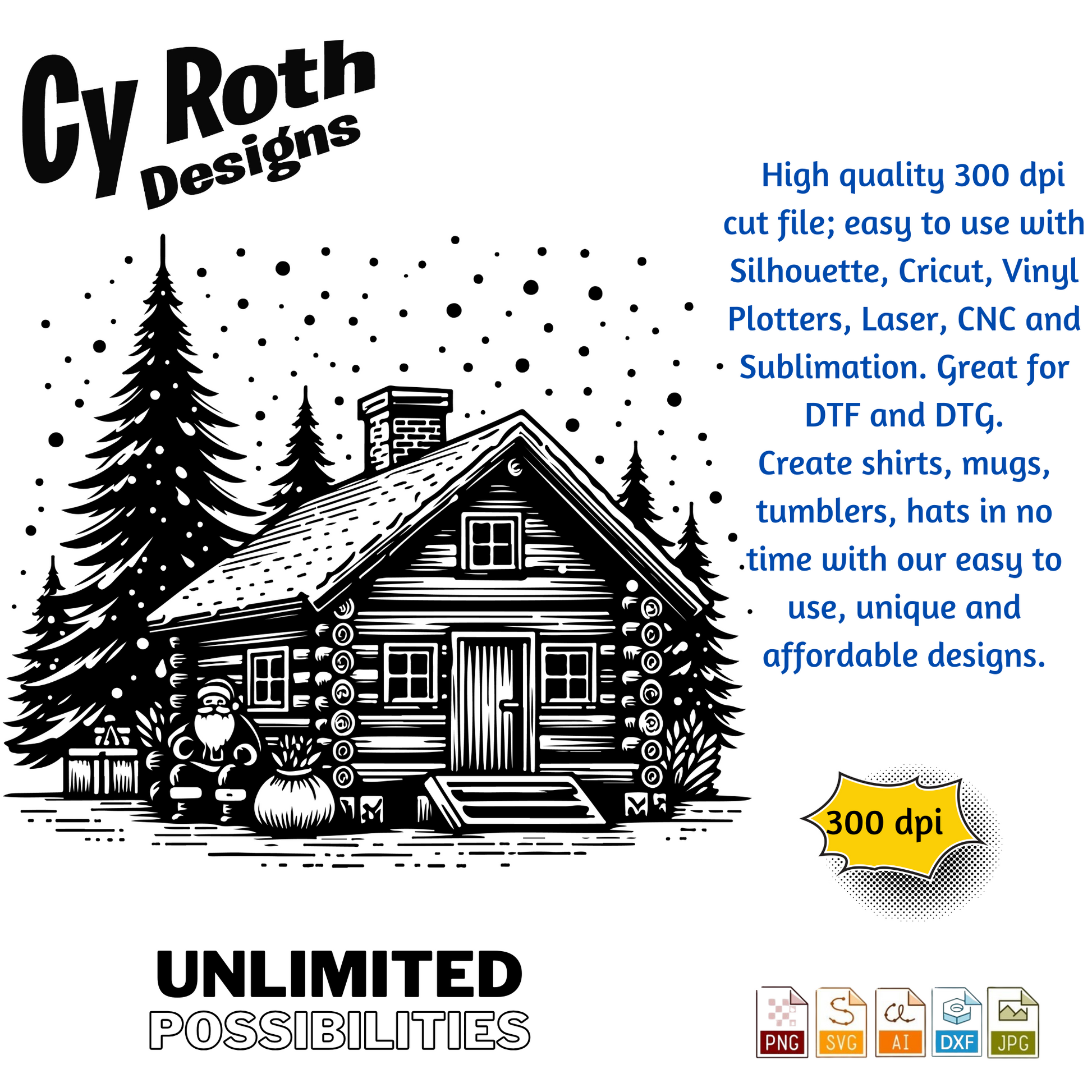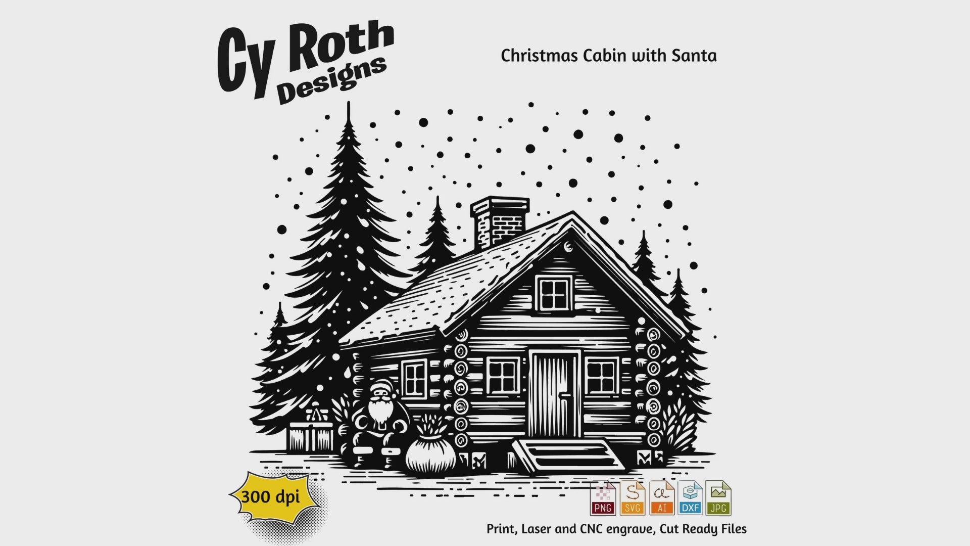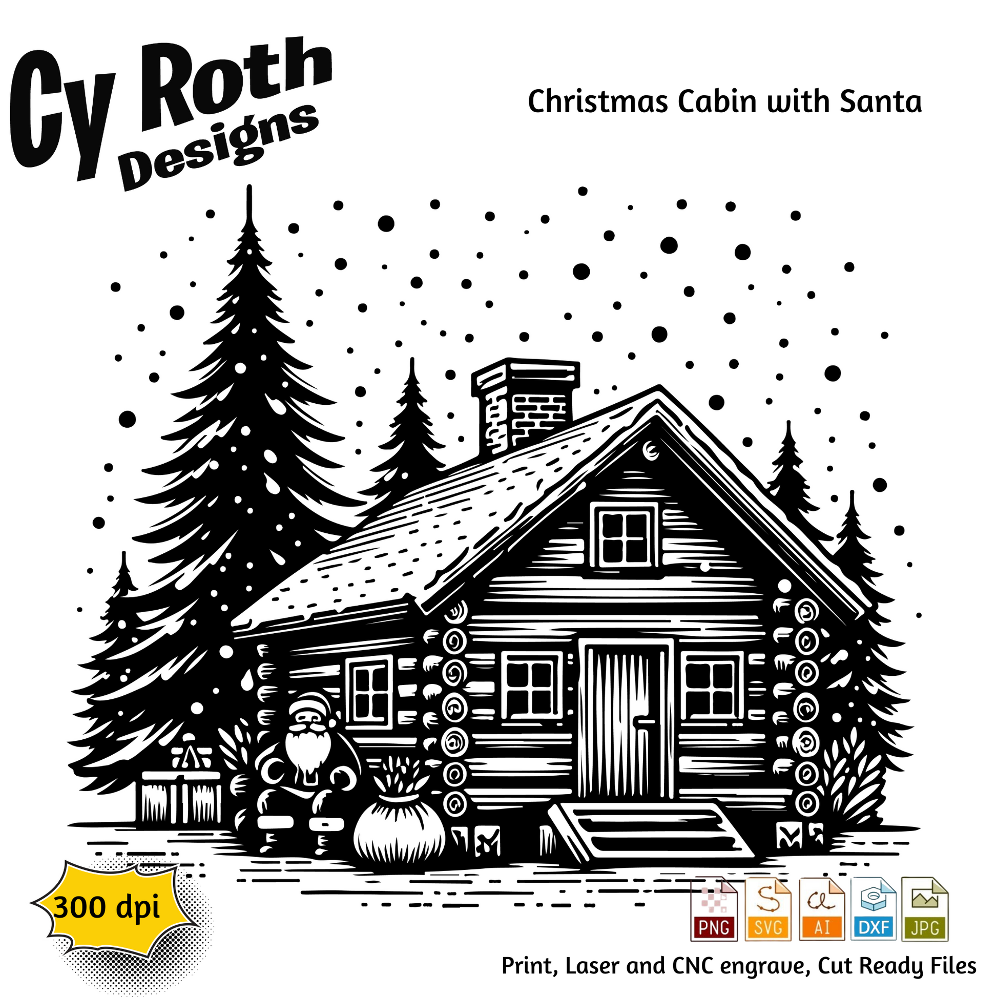 Christmas Cabin with Santa svg png jpg ai dxf file, for Silhouette, Cricut, Vinyl Plotters, Laser, CNC and Sublimation. Great for DTF and DTG.
