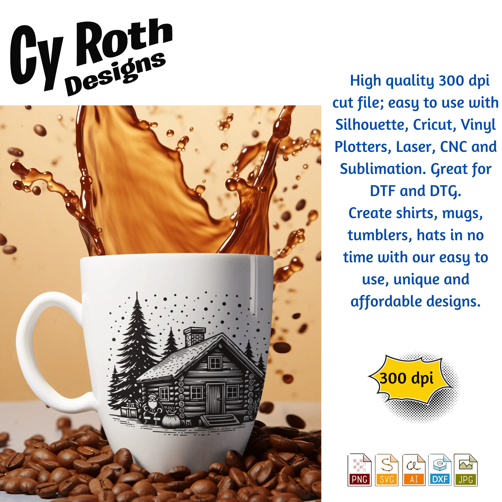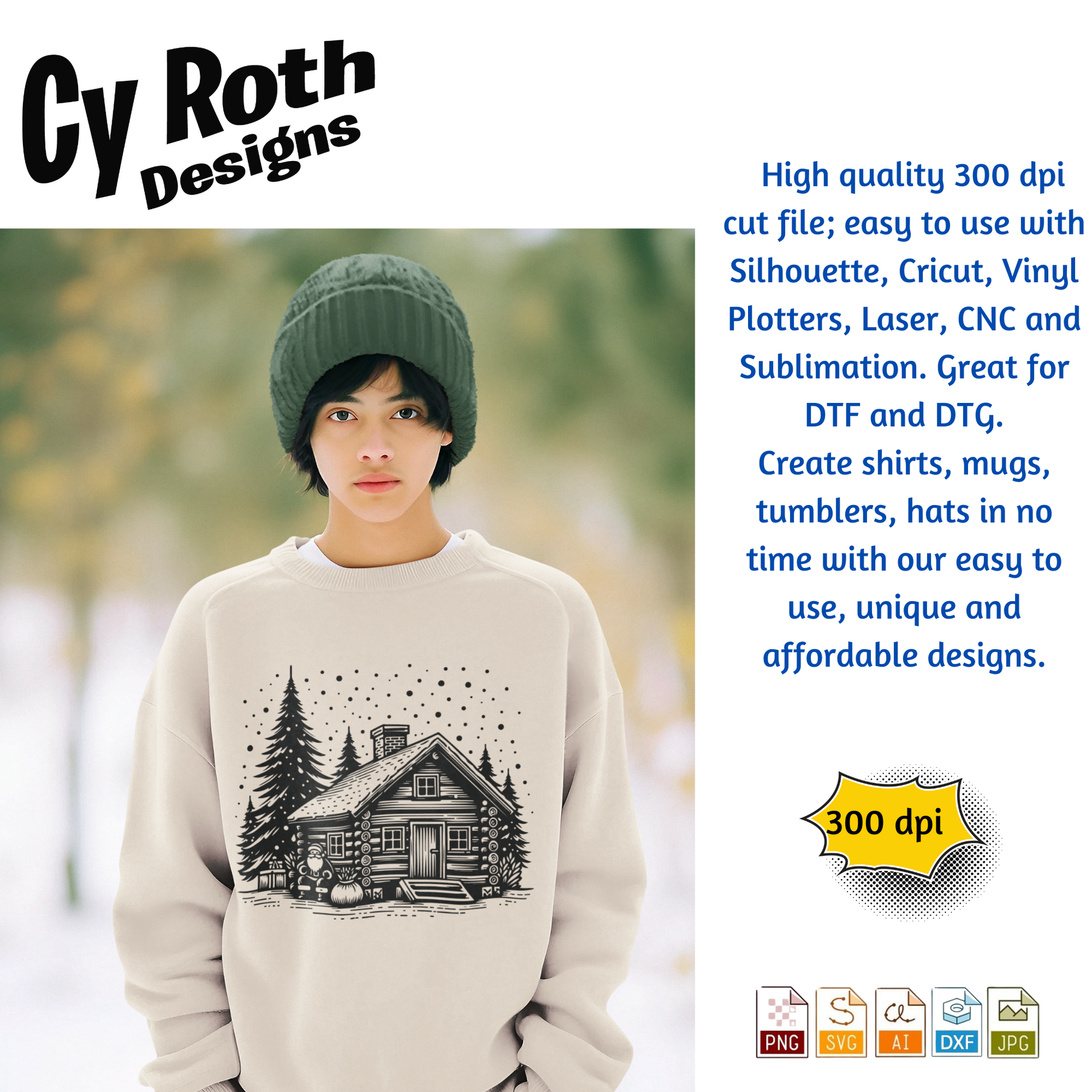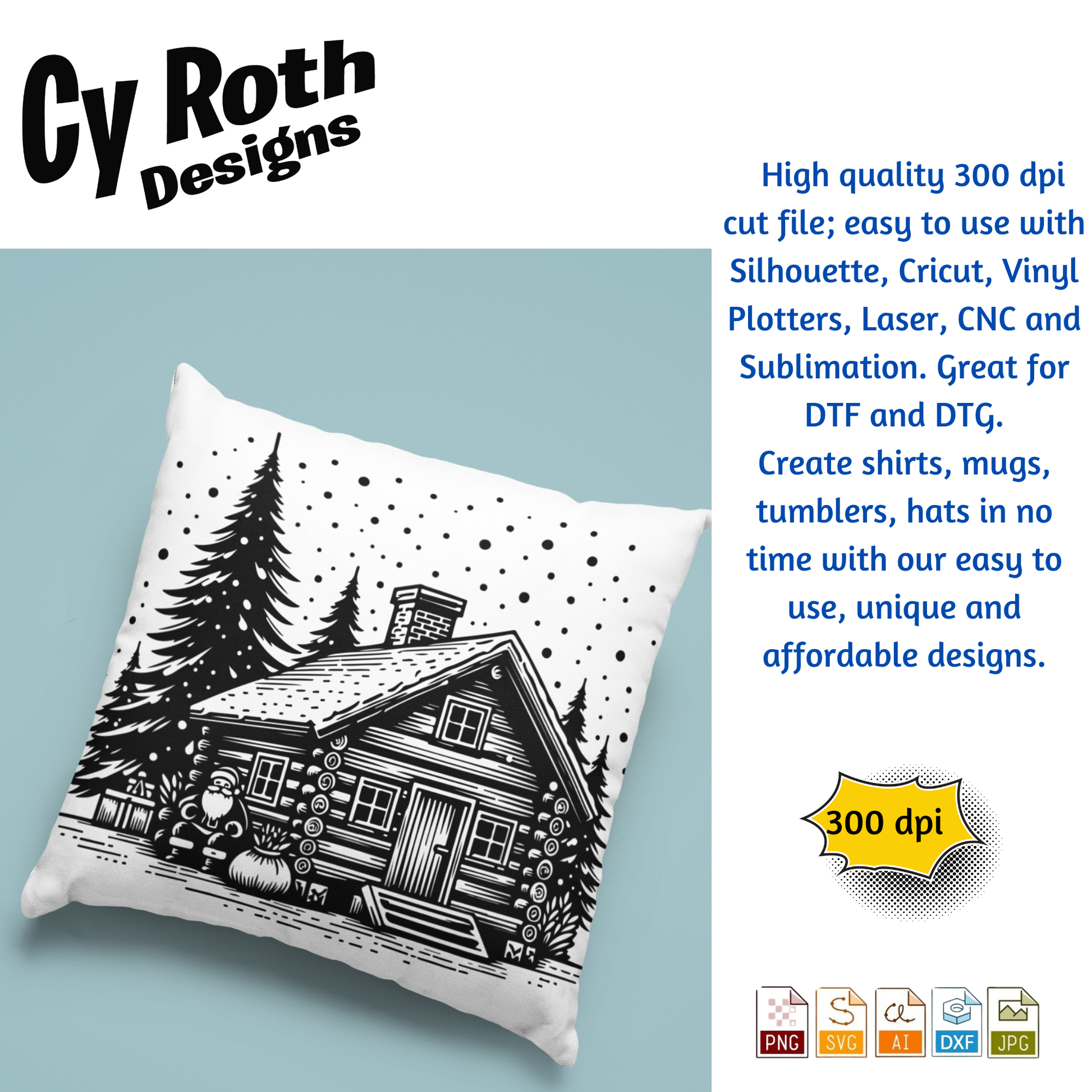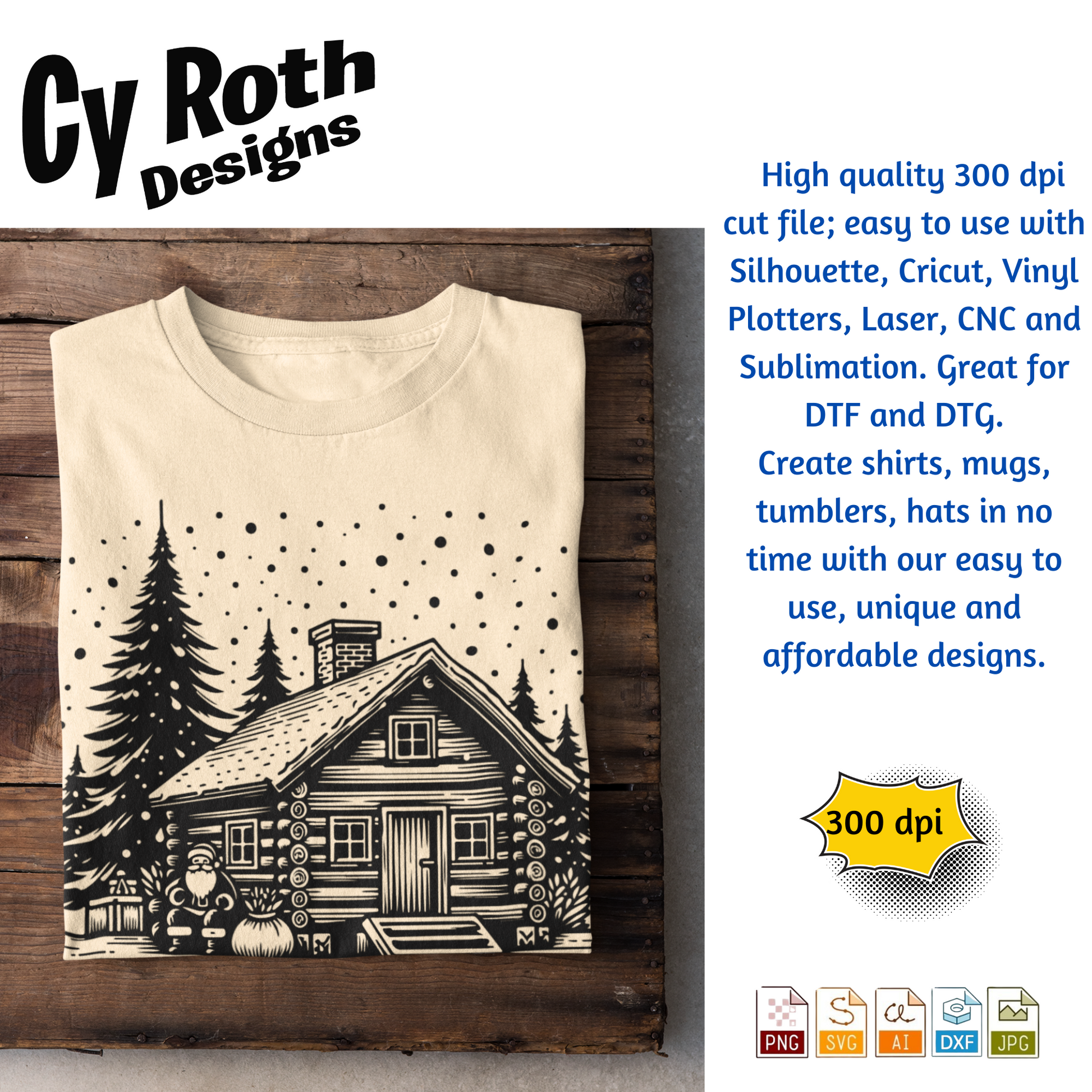 Christmas Cabin with Santa svg png jpg ai dxf file, for Silhouette, Cricut, Vinyl Plotters, Laser, CNC and Sublimation. Great for DTF and DTG.