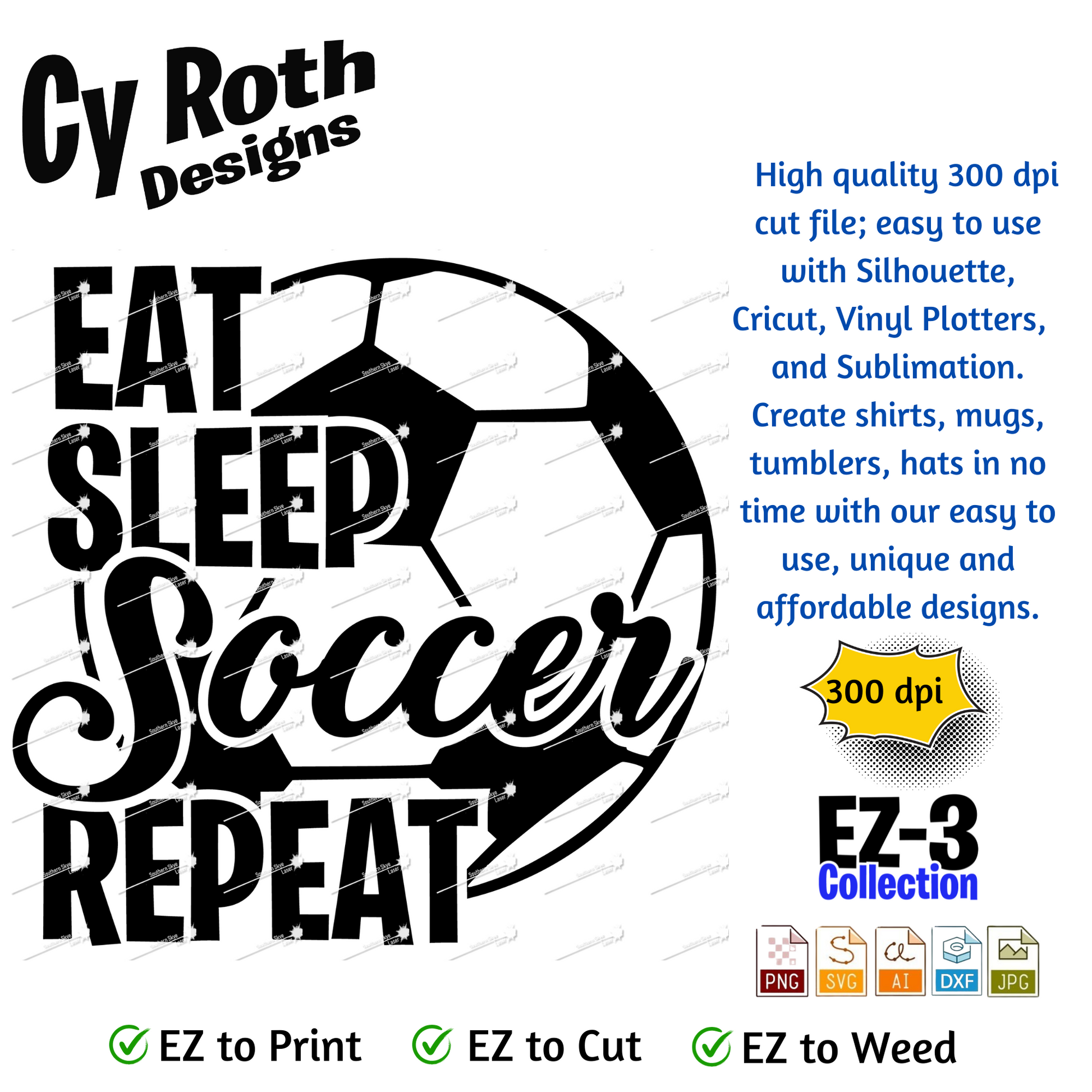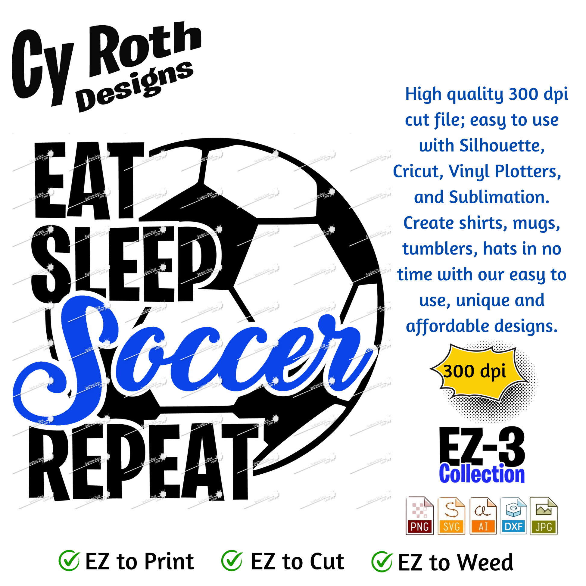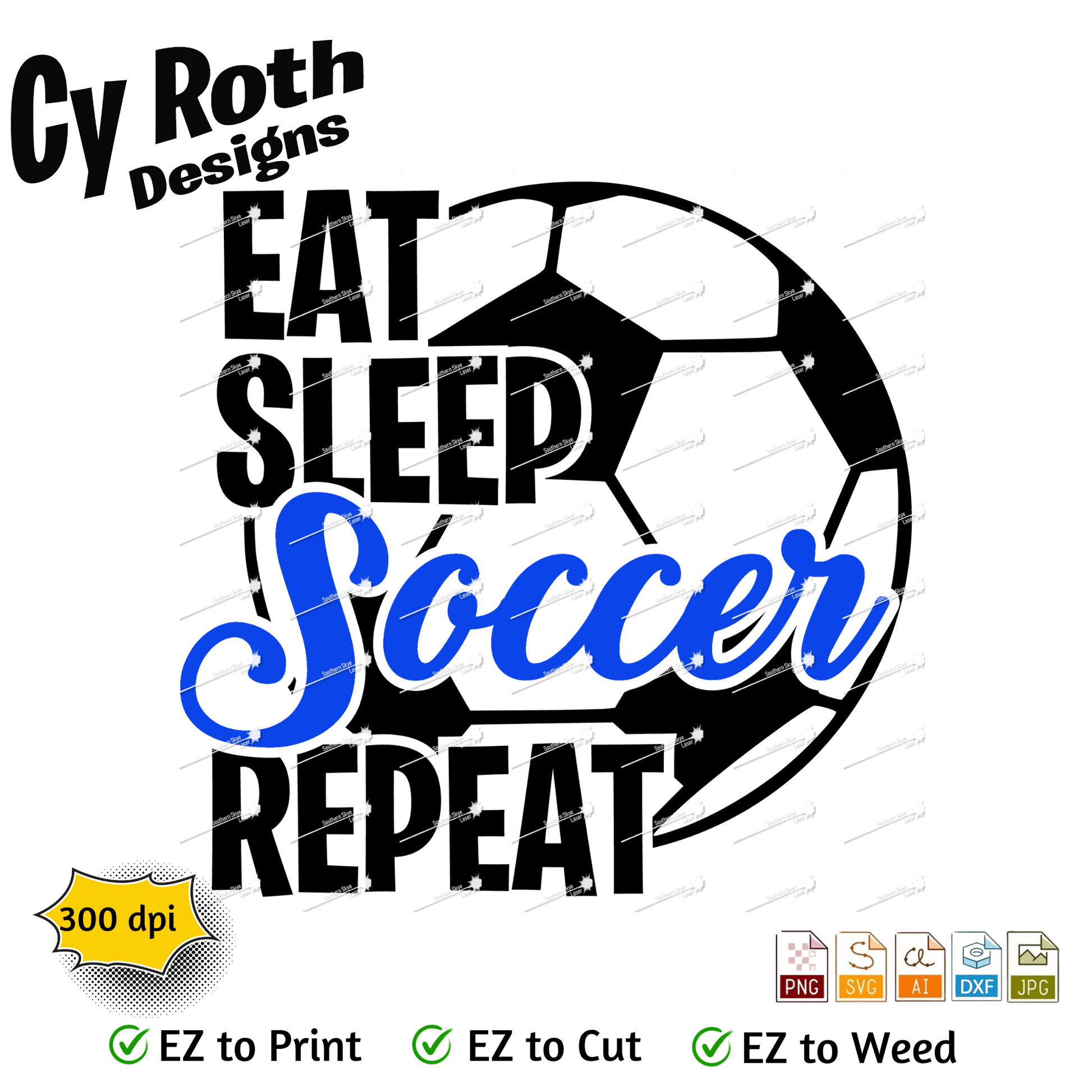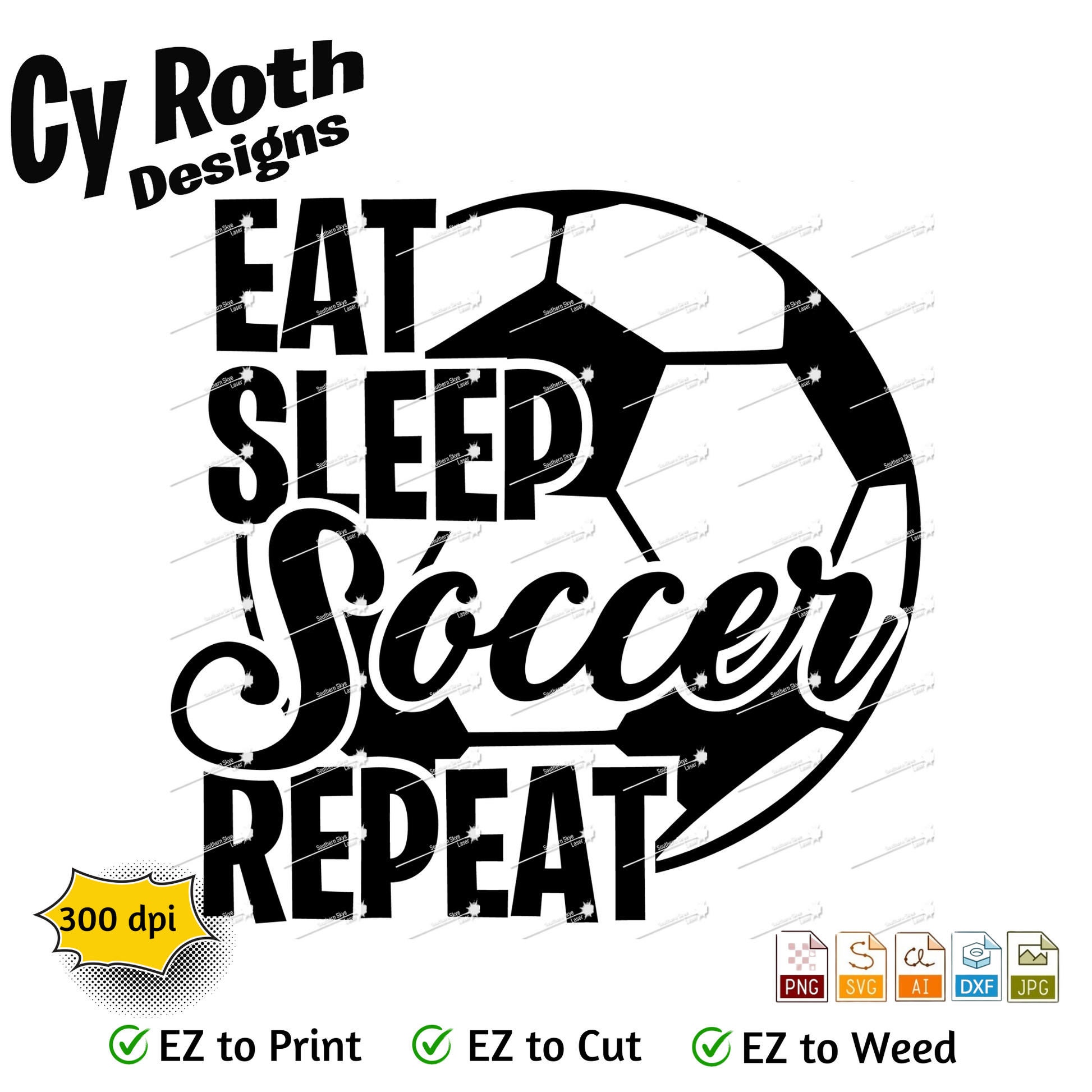 Soccer svg png jpg ai dxf file, for Silhouette, Cricut, Vinyl Plotters, Laser, CNC and Sublimation. Great for DTF and DTG. Eat Sleep Soccer Repeat