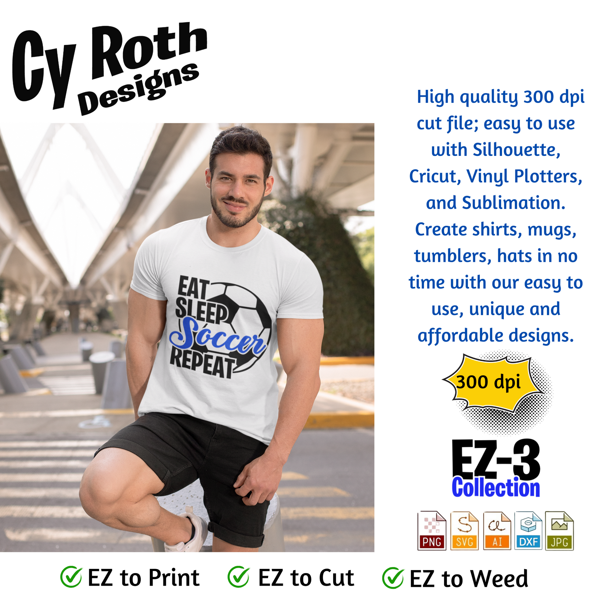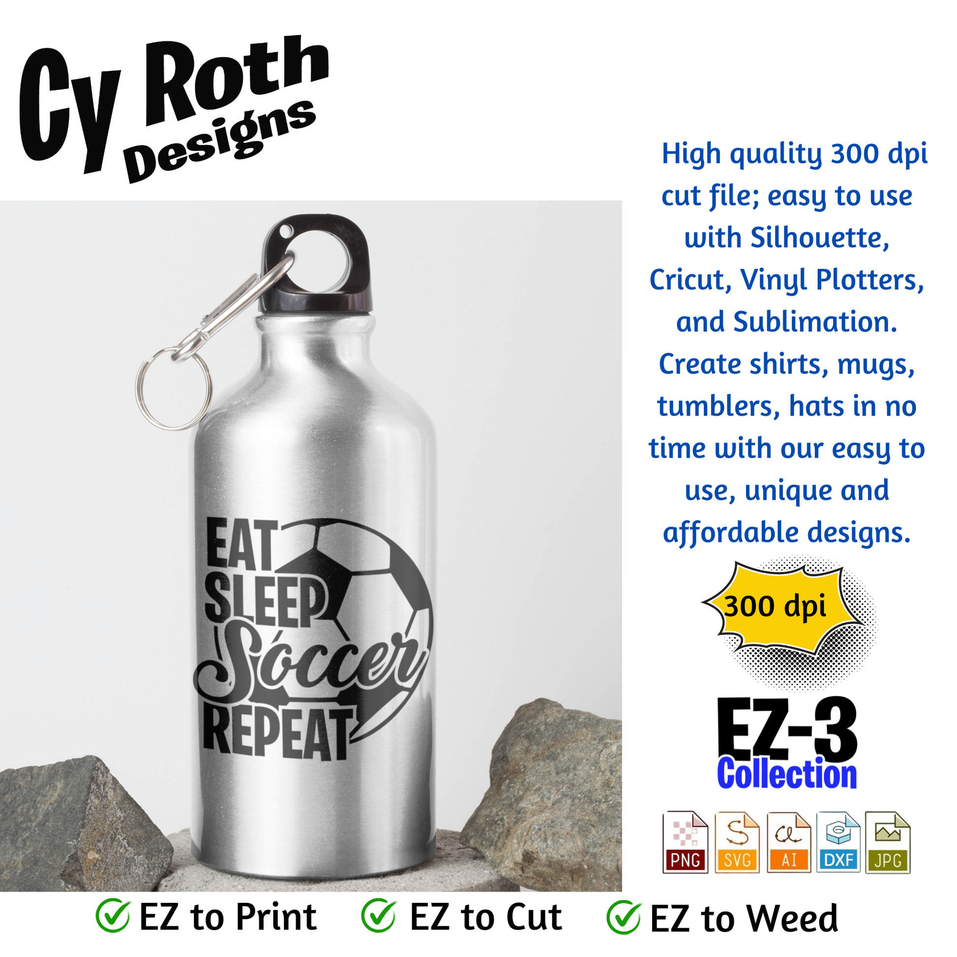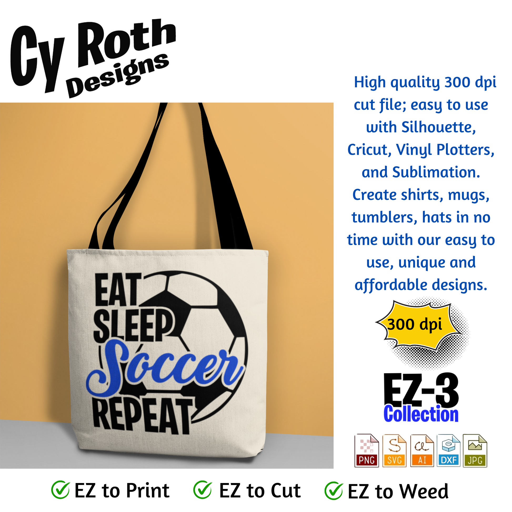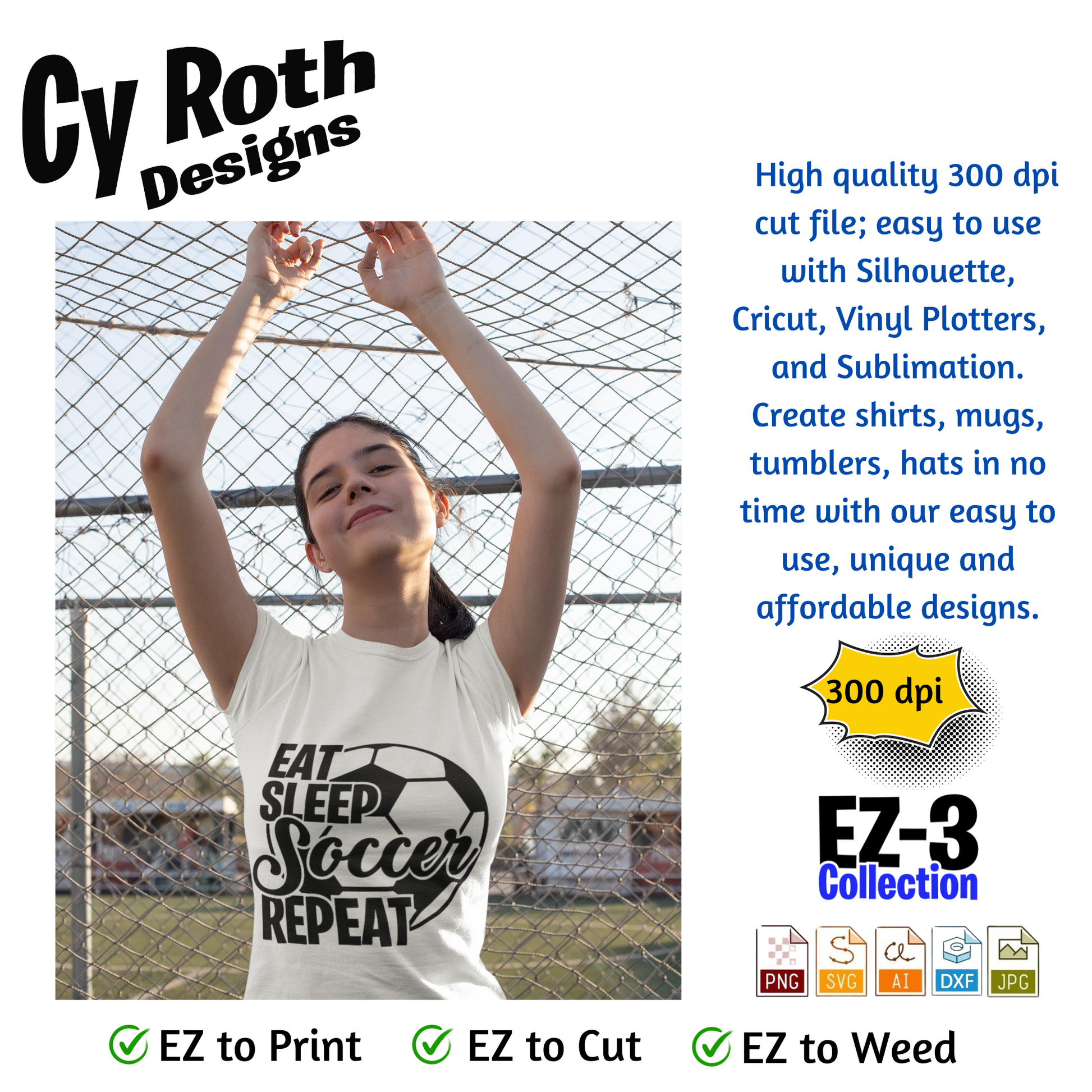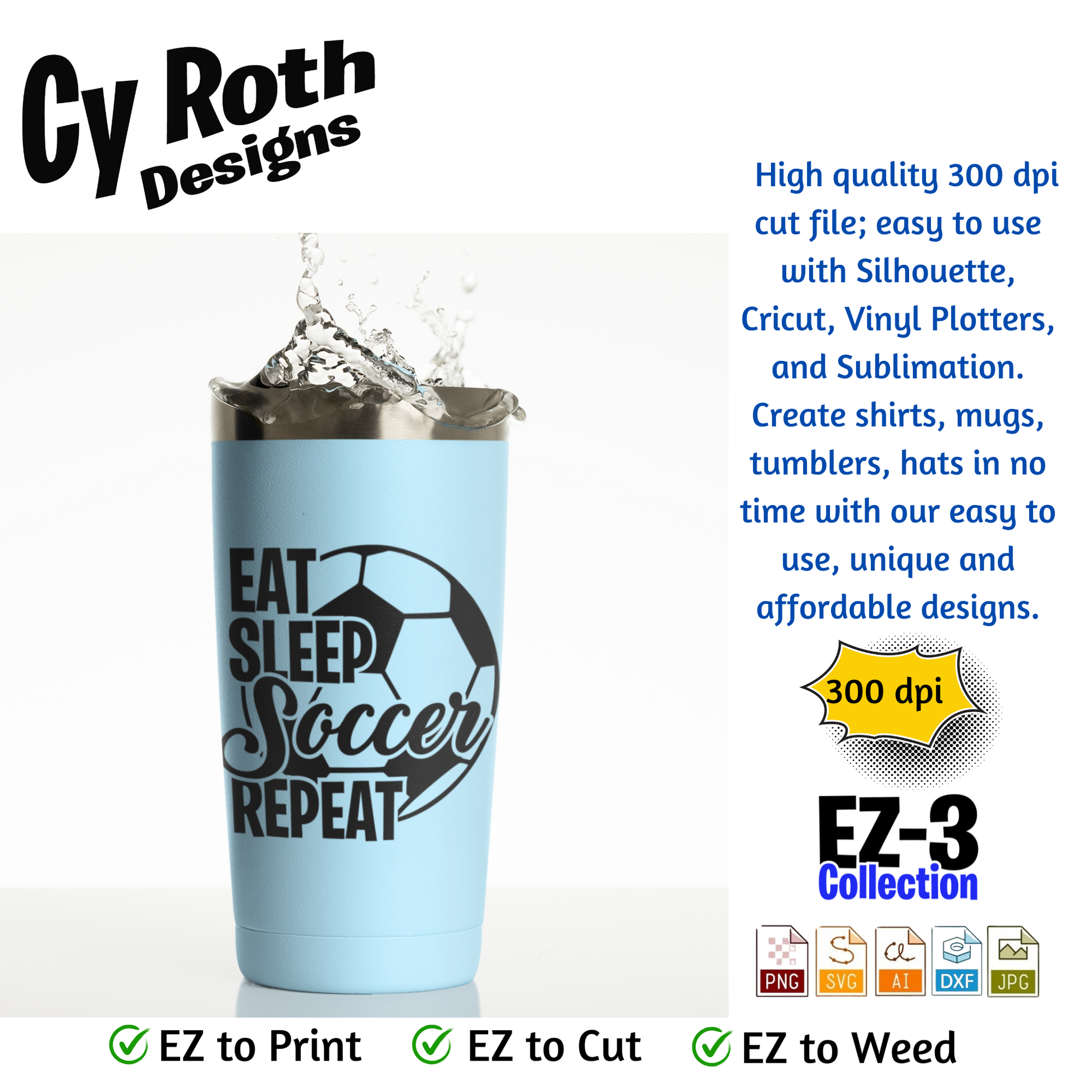 Soccer svg png jpg ai dxf file, for Silhouette, Cricut, Vinyl Plotters, Laser, CNC and Sublimation. Great for DTF and DTG. Eat Sleep Soccer Repeat