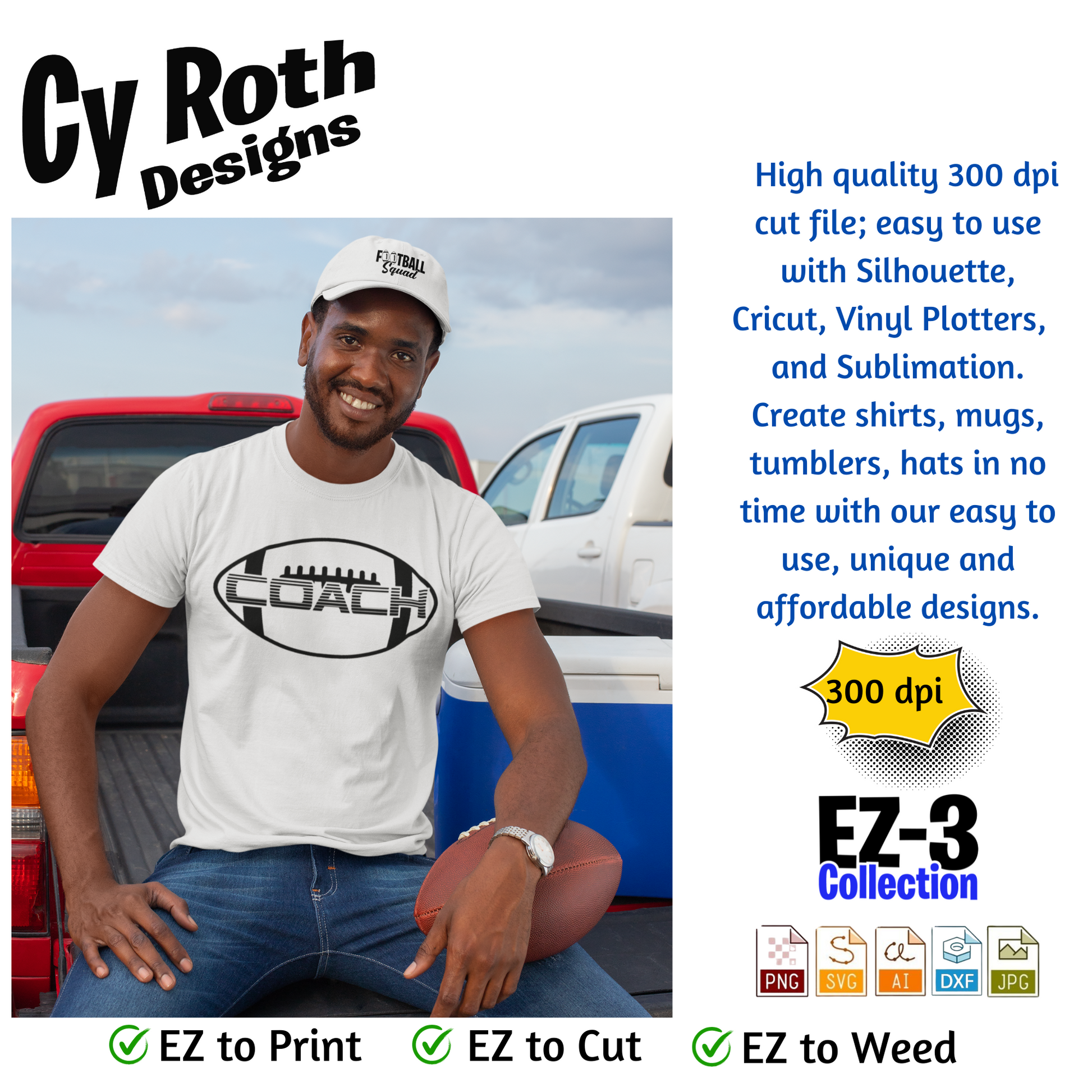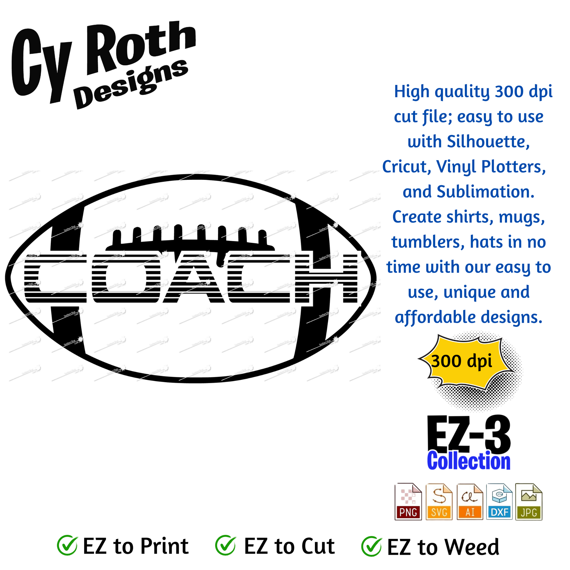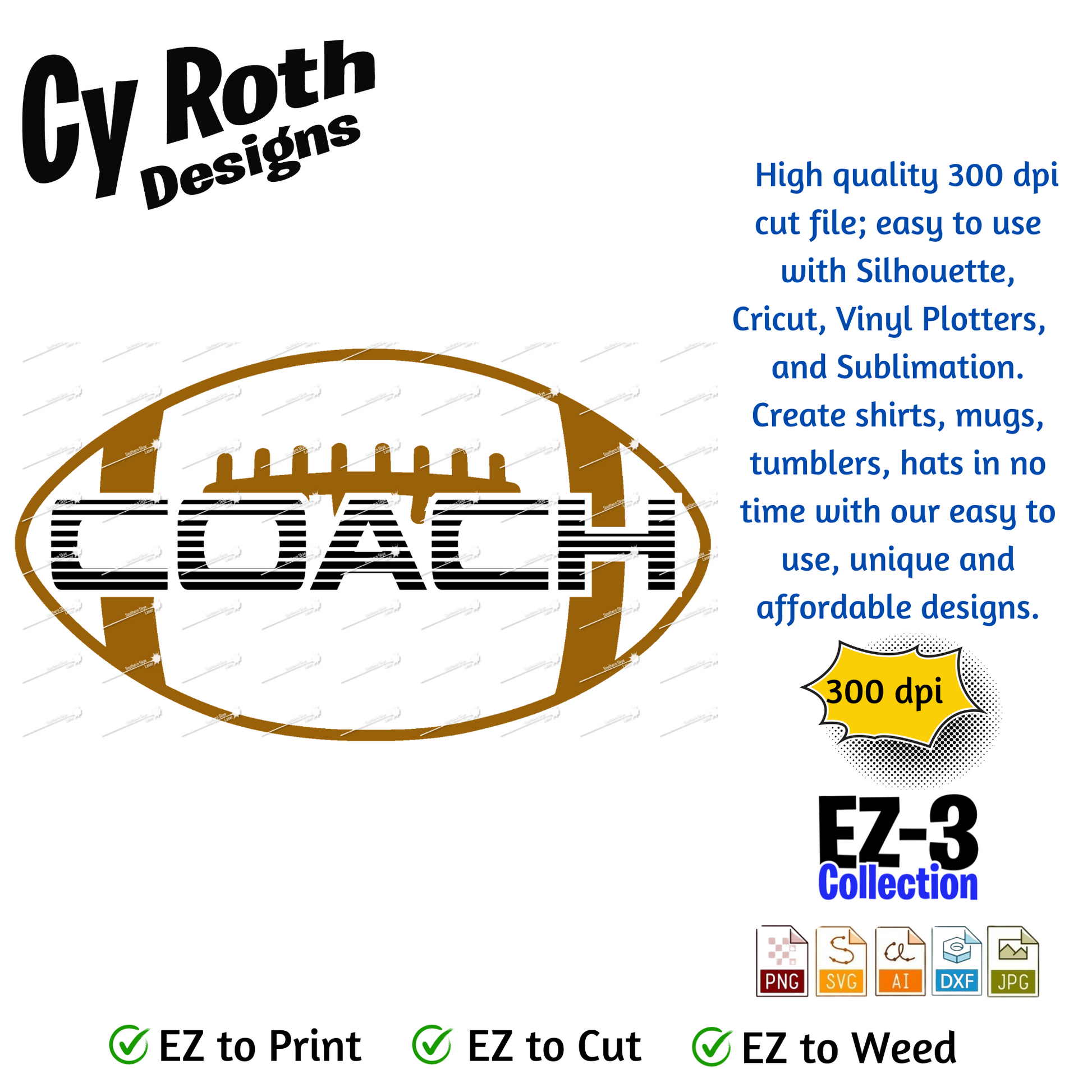 Football svg png jpg ai dxf file, for Silhouette, Cricut, Vinyl Plotters, Laser, CNC and Sublimation. Great for DTF and DTG. Football coach