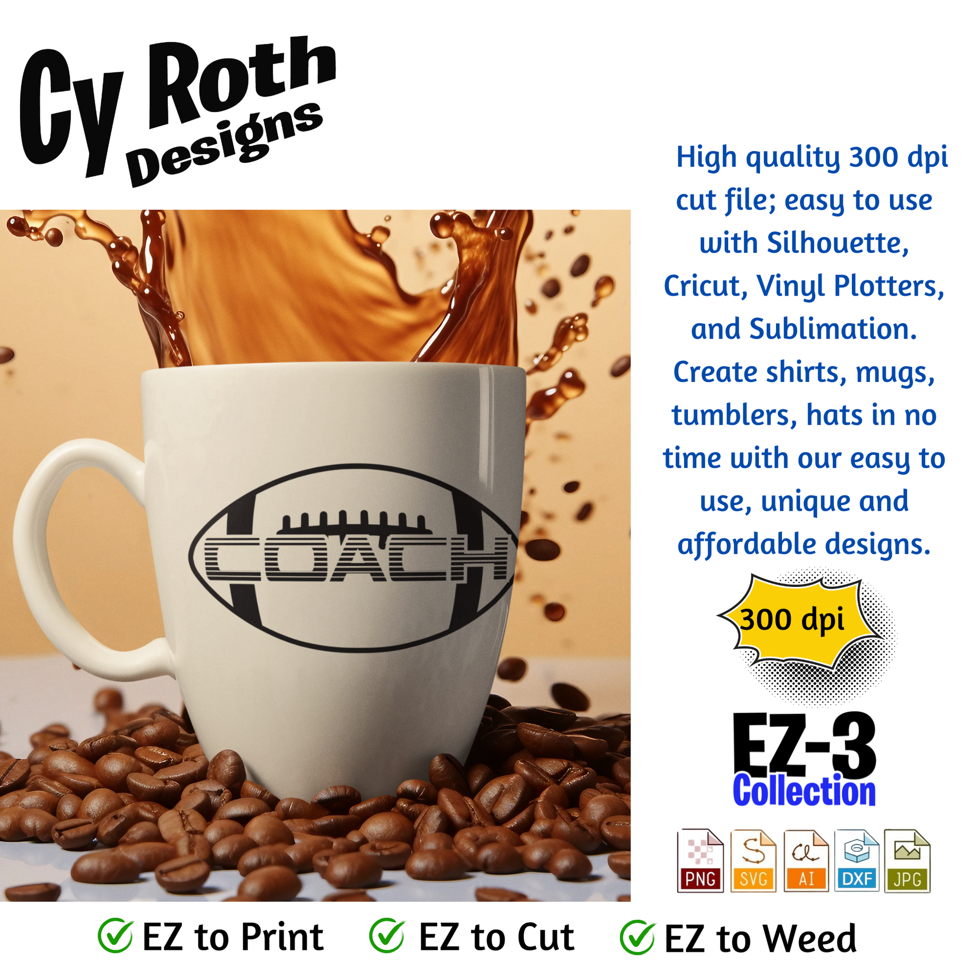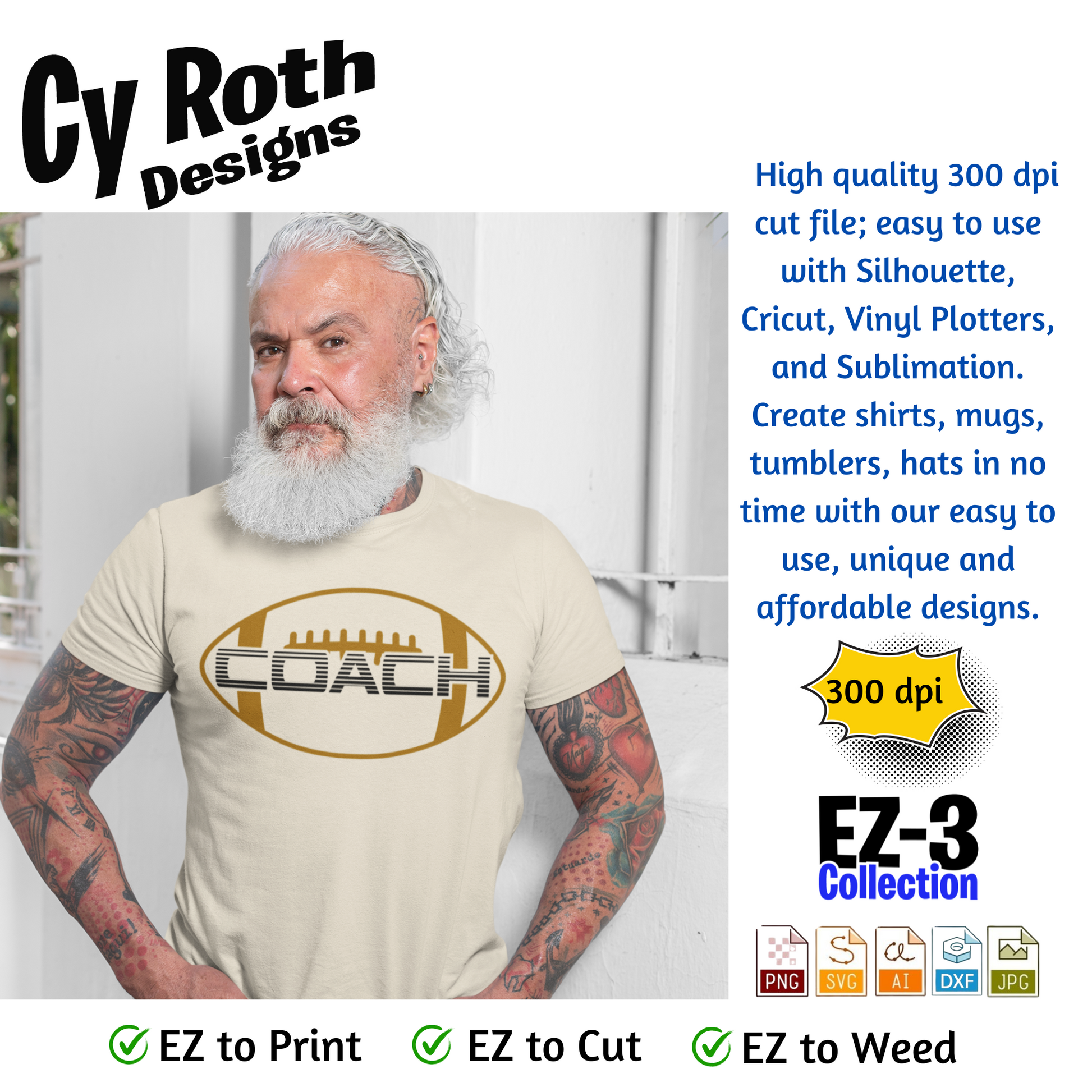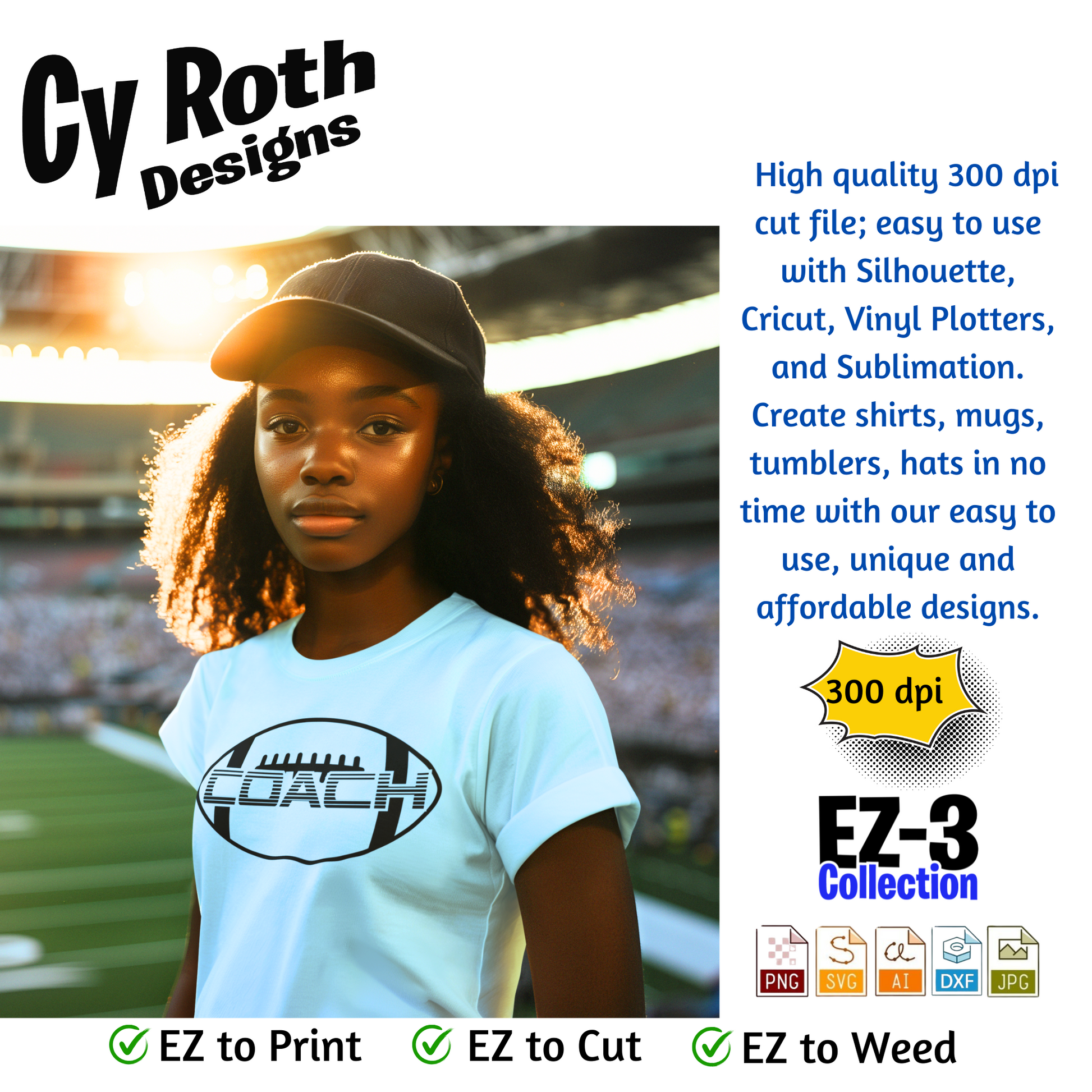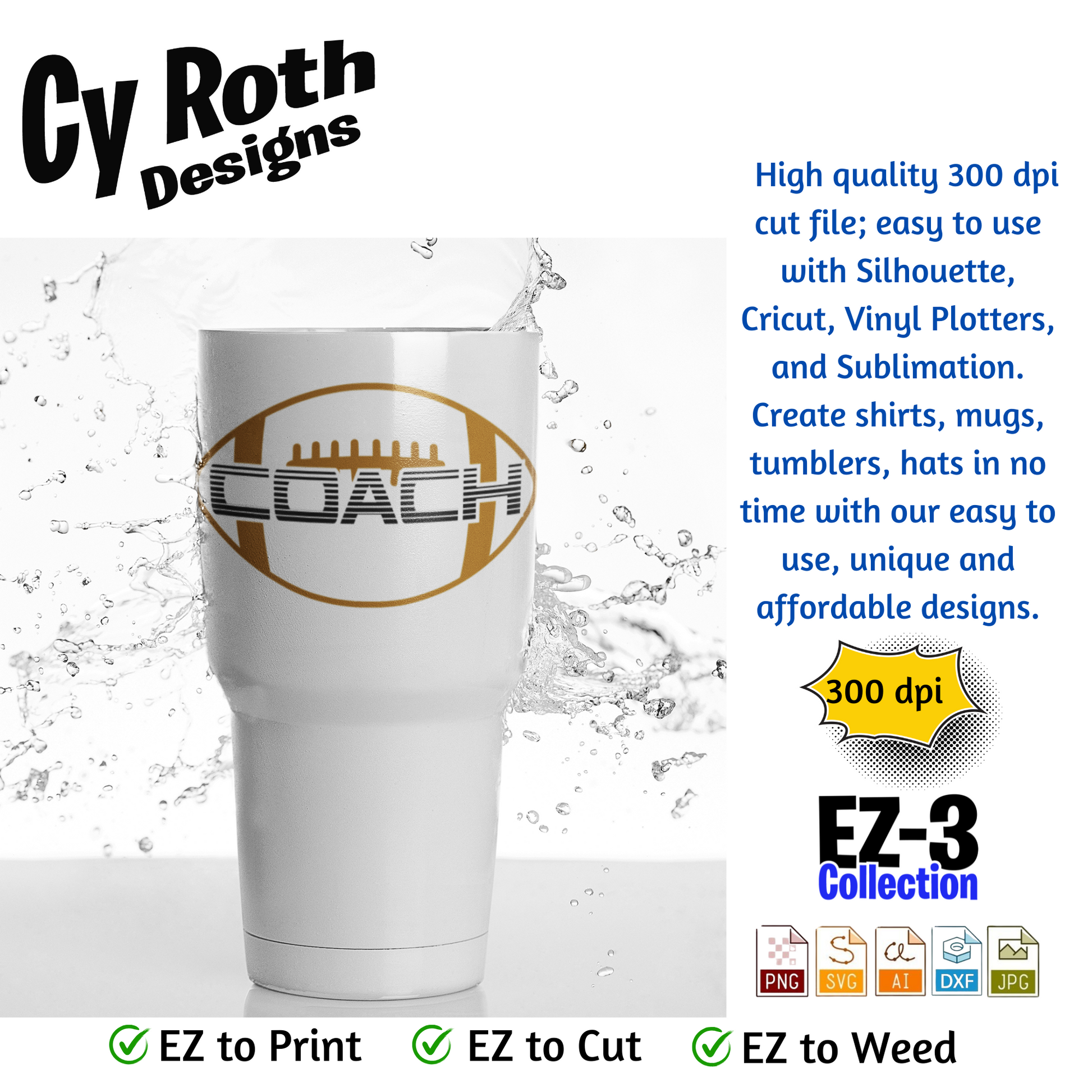 Football svg png jpg ai dxf file, for Silhouette, Cricut, Vinyl Plotters, Laser, CNC and Sublimation. Great for DTF and DTG. Football coach
