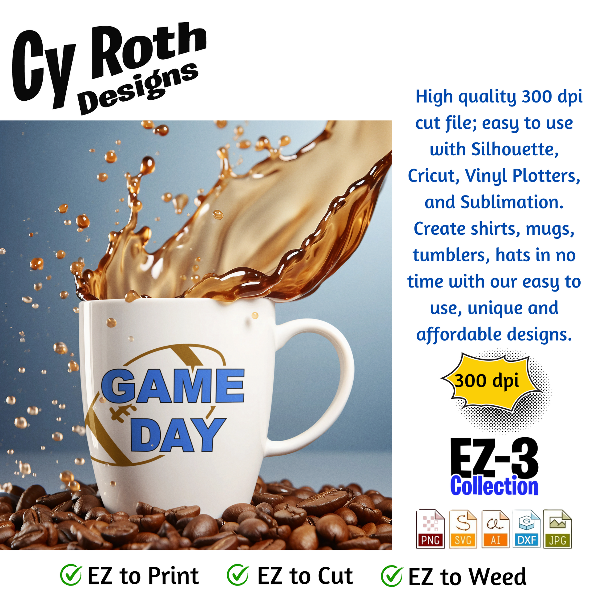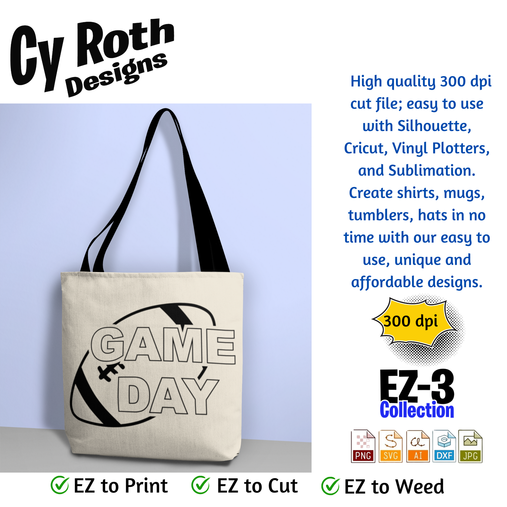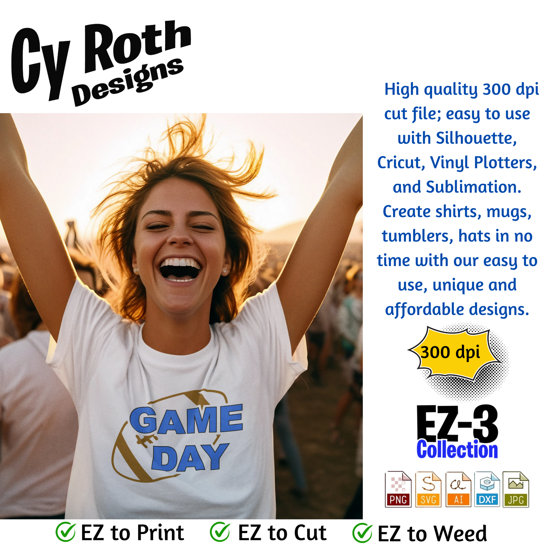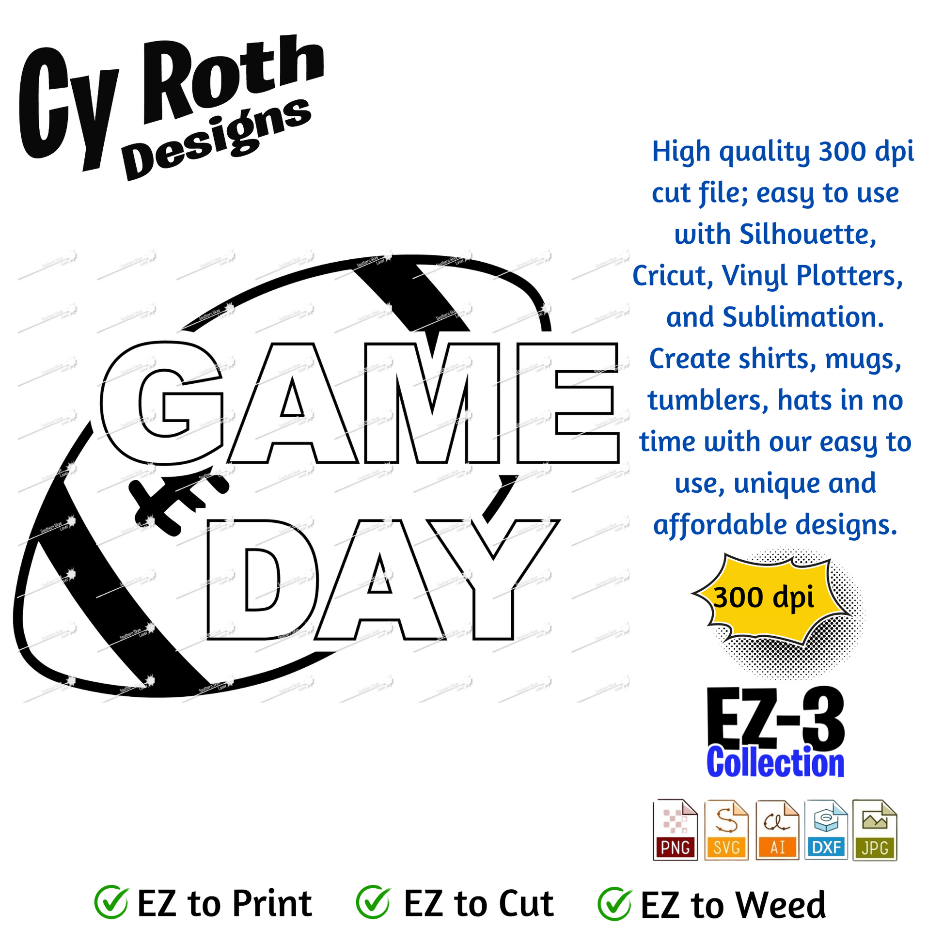 Football svg png jpg ai dxf file, for Silhouette, Cricut, Vinyl Plotters, Laser, CNC and Sublimation. Great for DTF and DTG. Game Day
