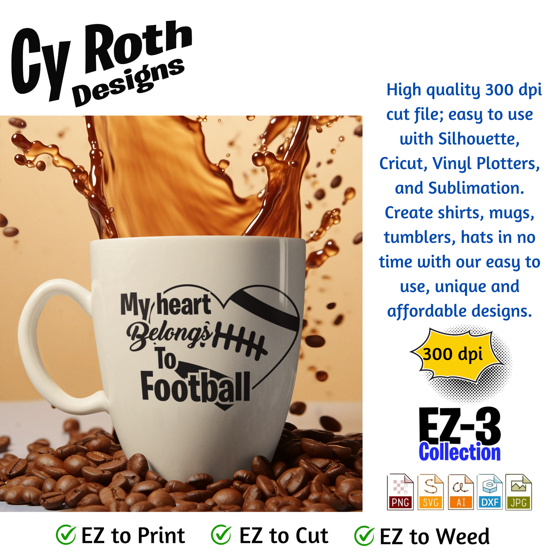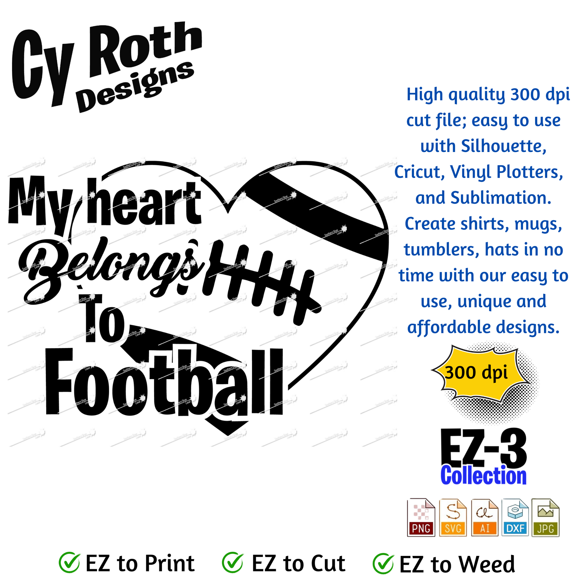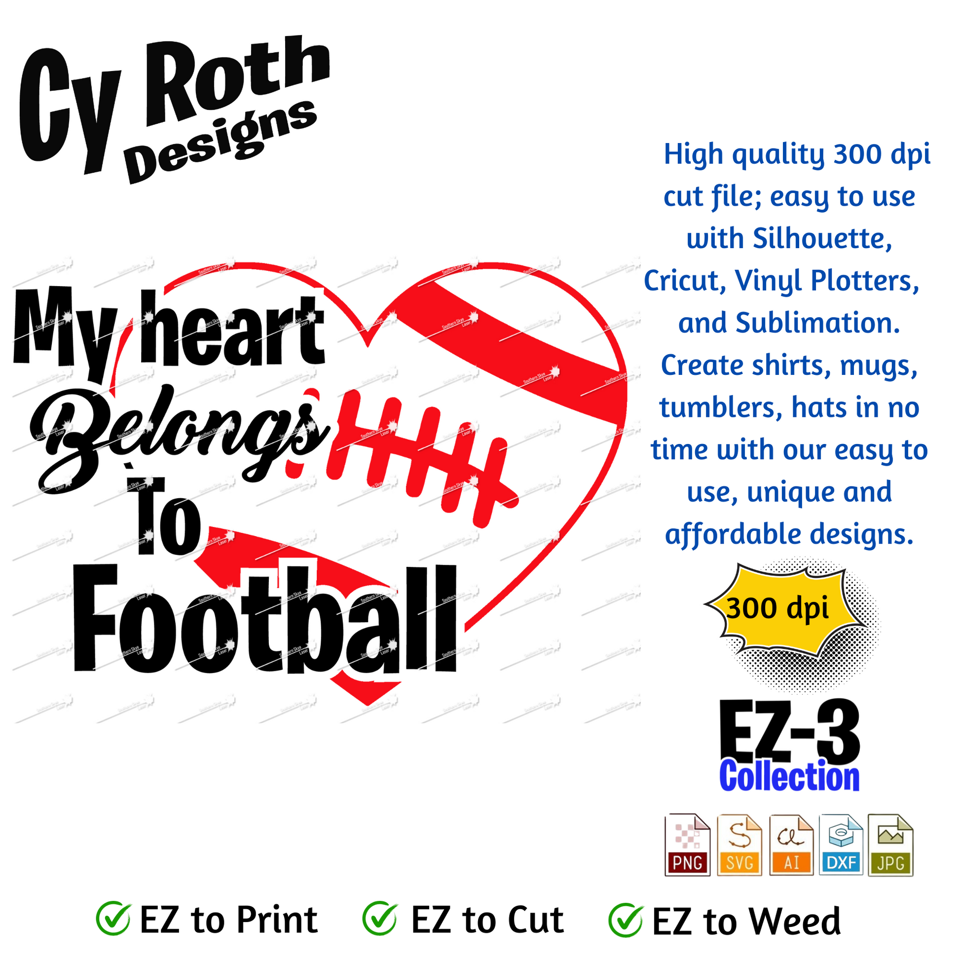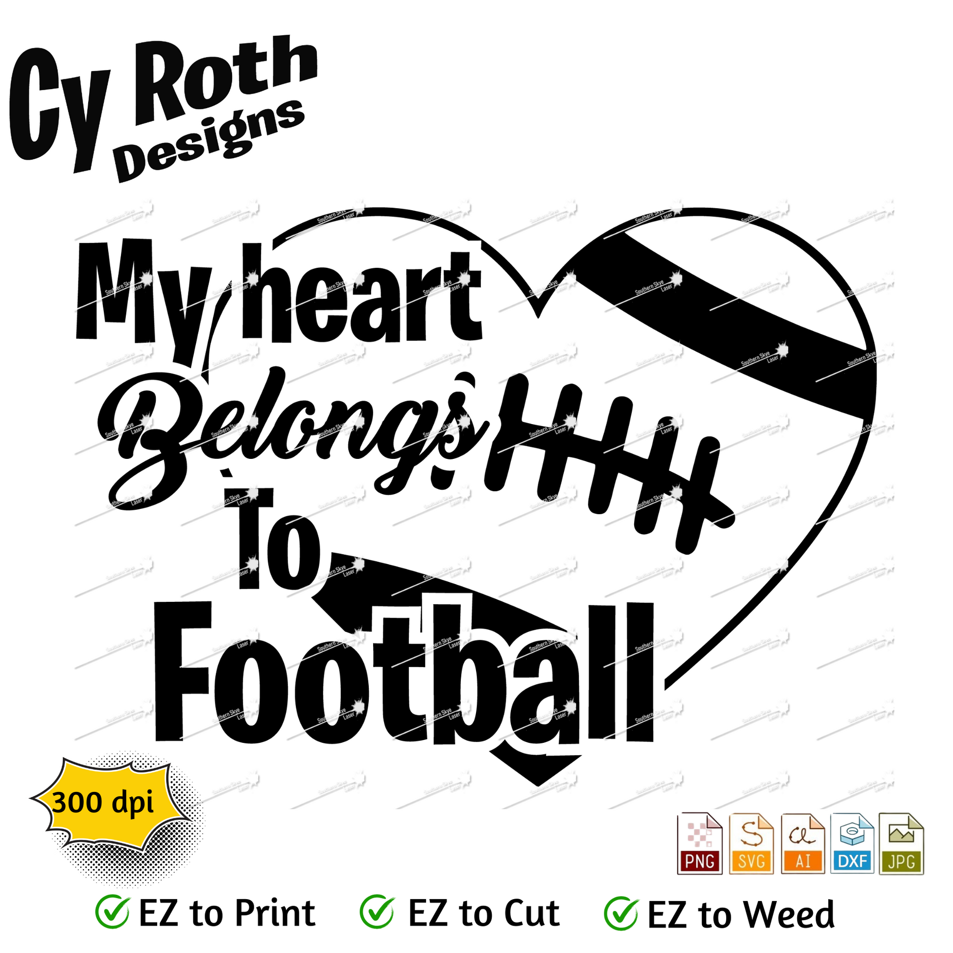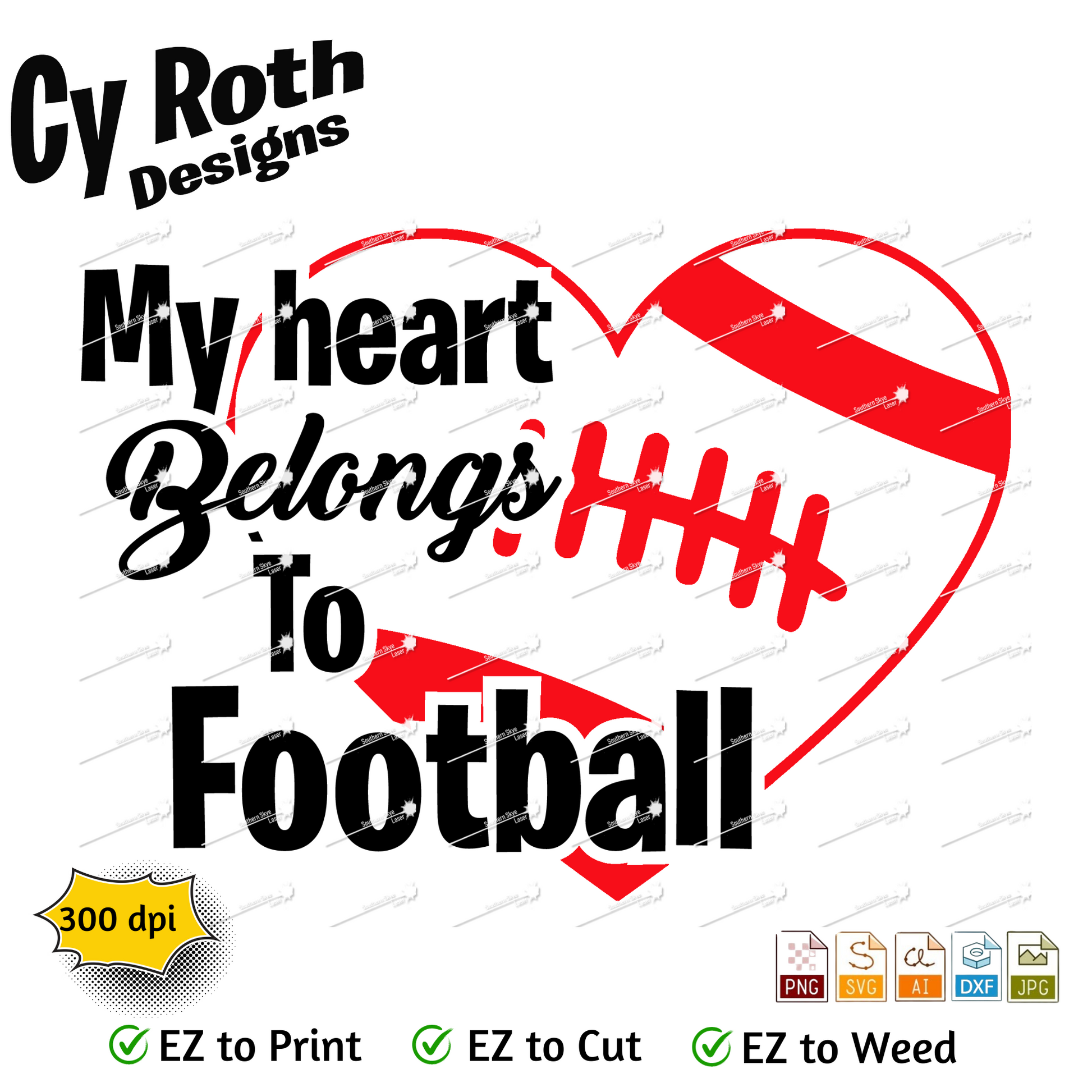 Football svg png jpg ai dxf file, for Silhouette, Cricut, Vinyl Plotters, Laser, CNC and Sublimation. Great for DTF and DTG. My heart belongs to football.