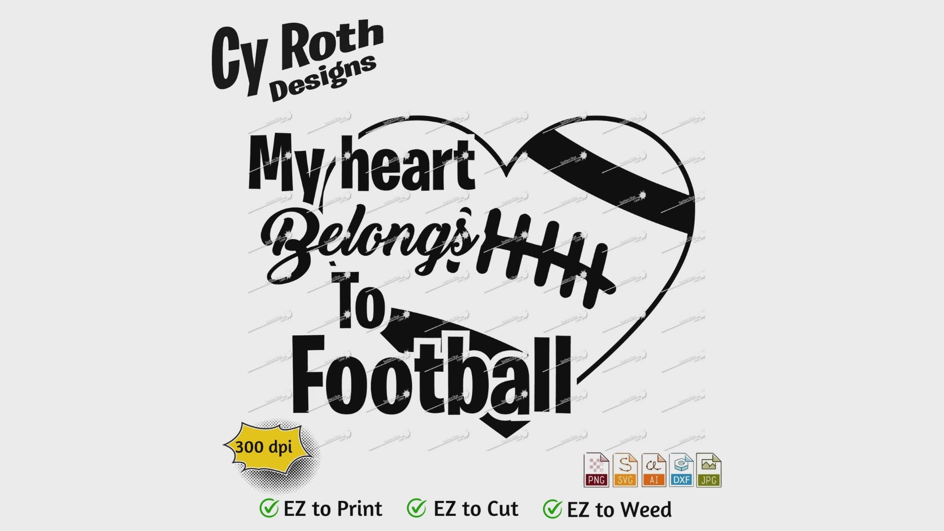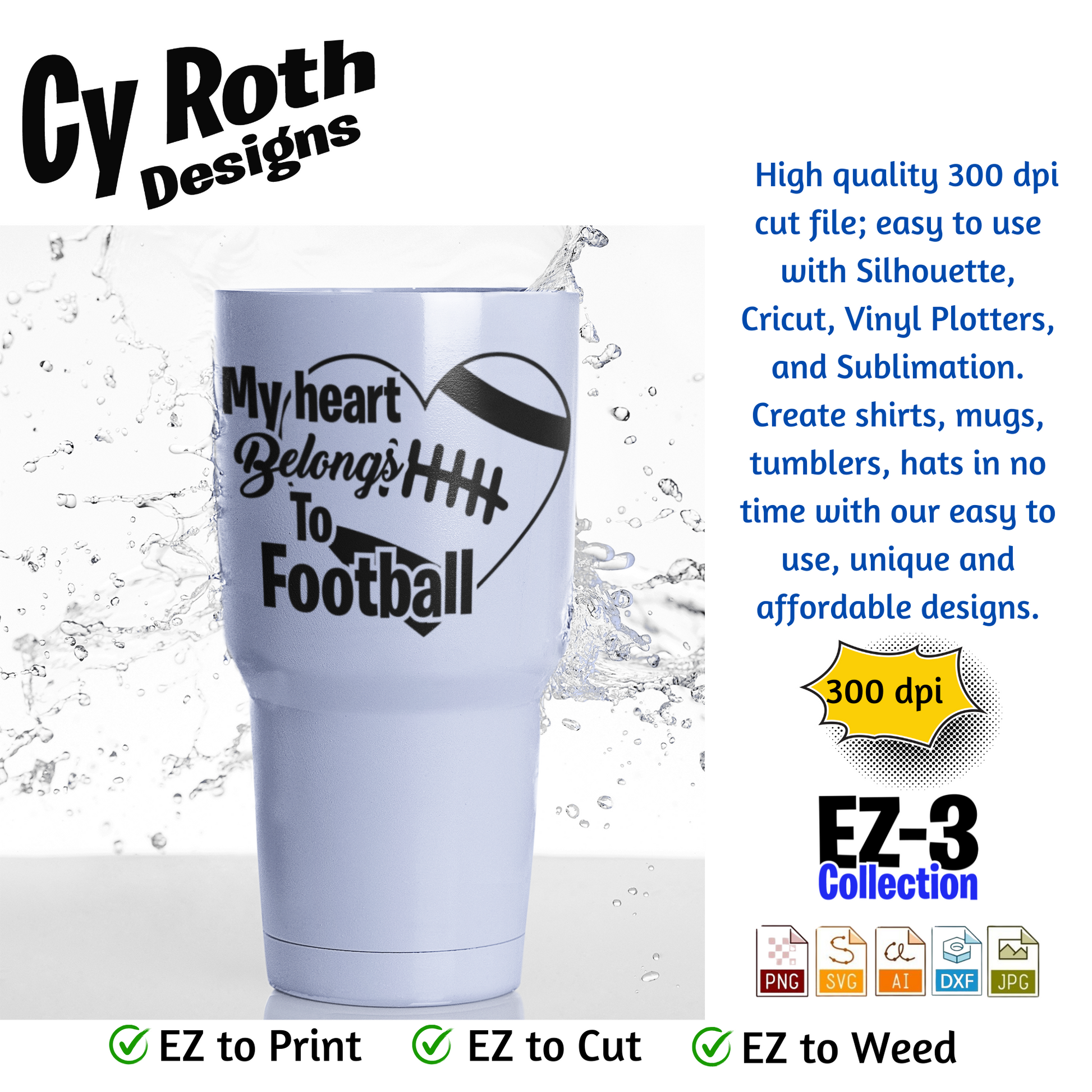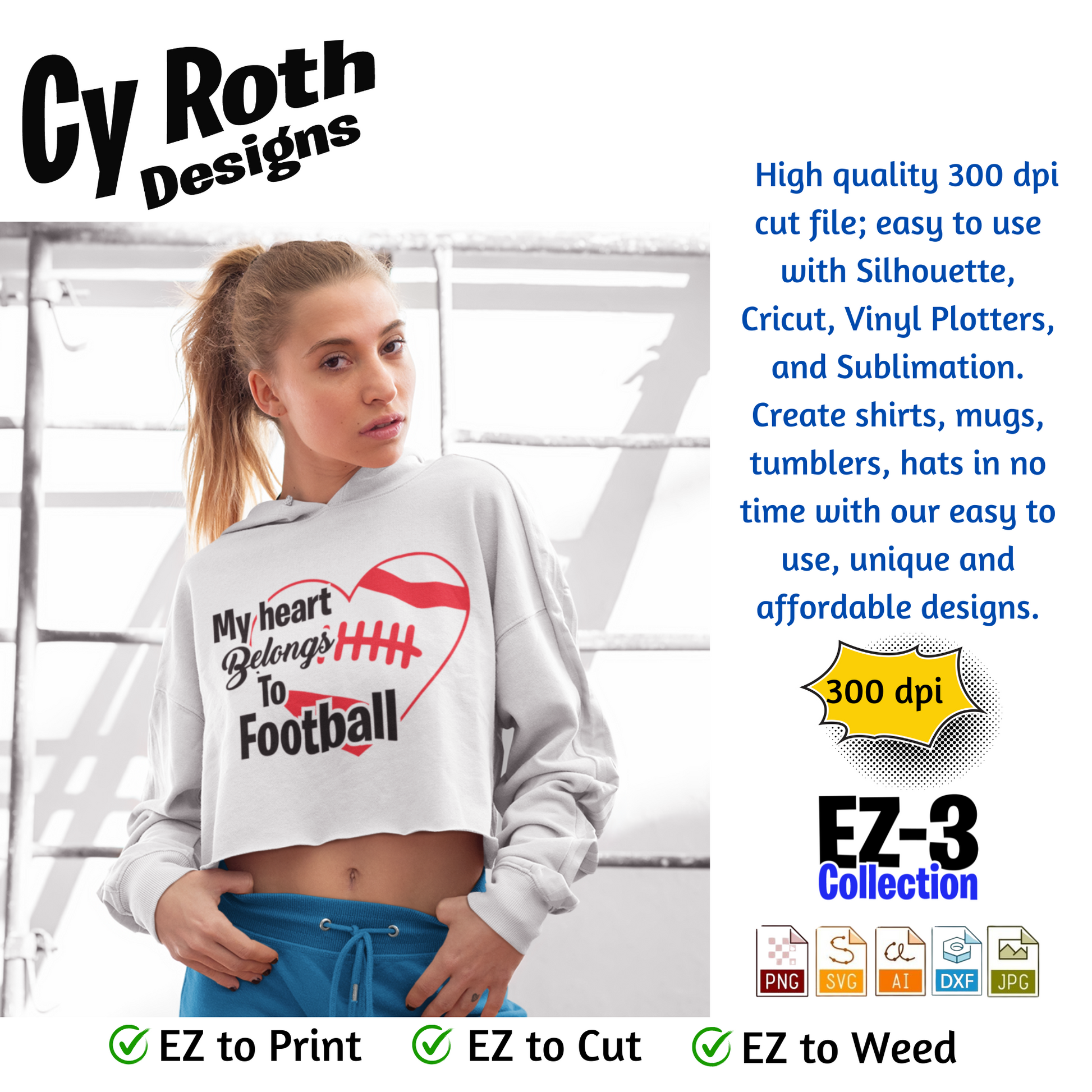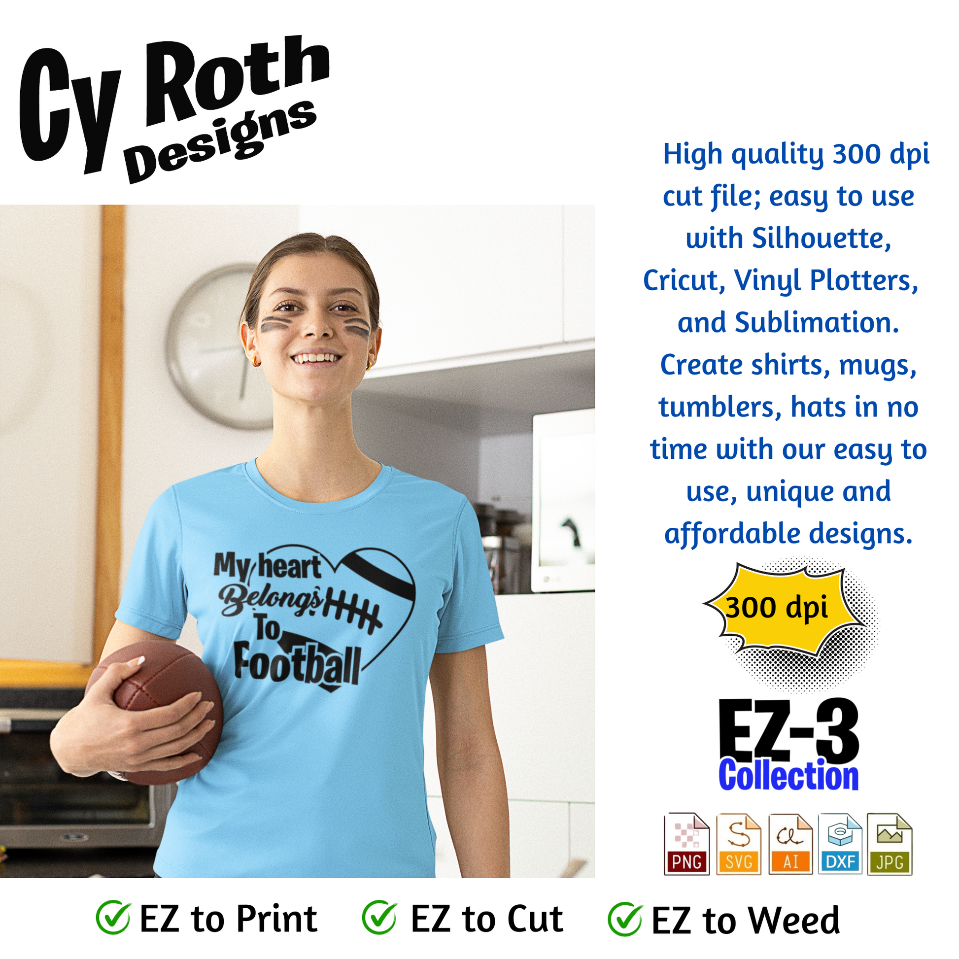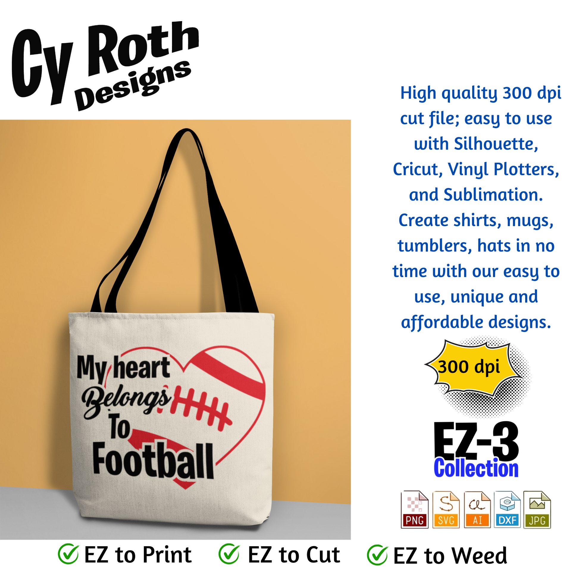 Football svg png jpg ai dxf file, for Silhouette, Cricut, Vinyl Plotters, Laser, CNC and Sublimation. Great for DTF and DTG. My heart belongs to football.