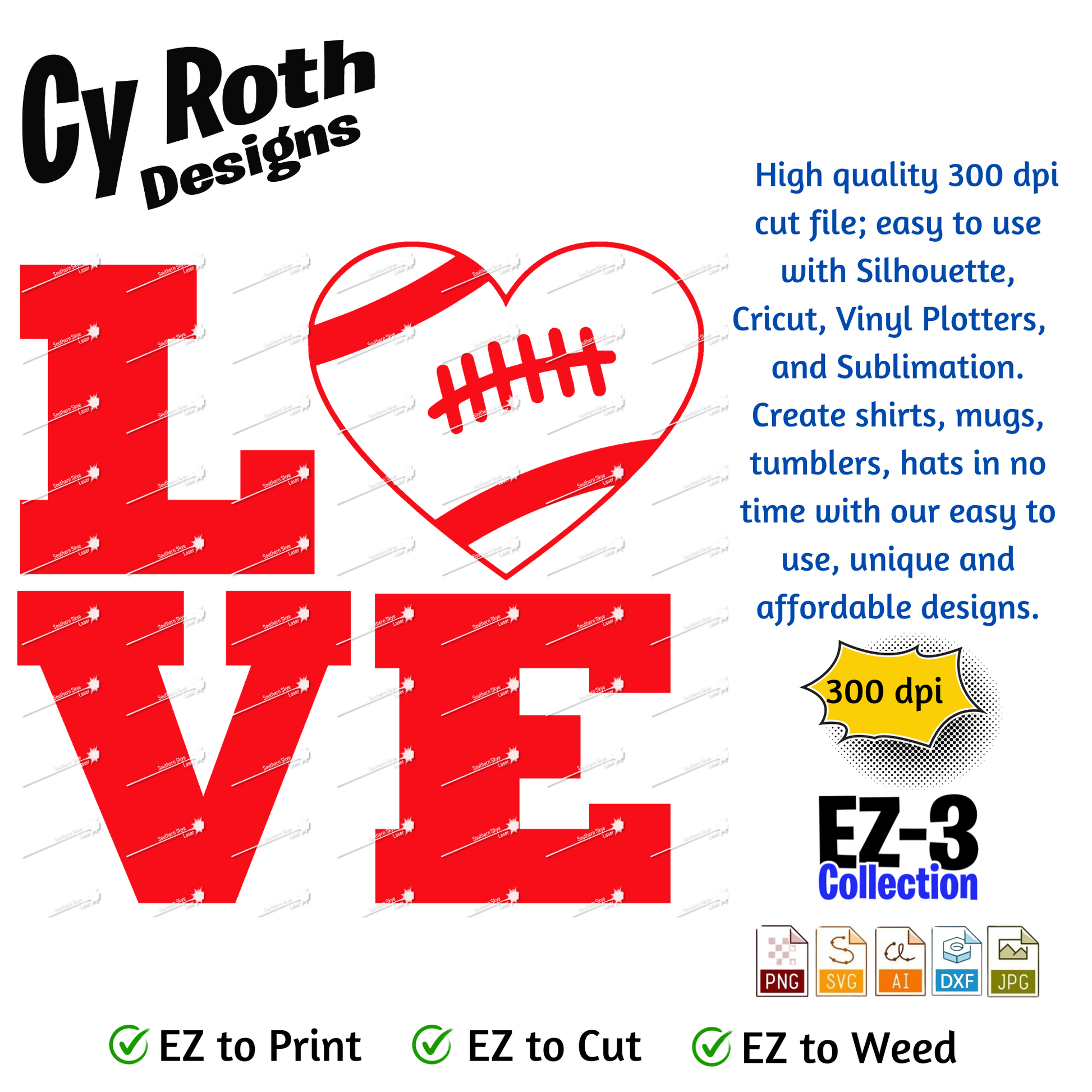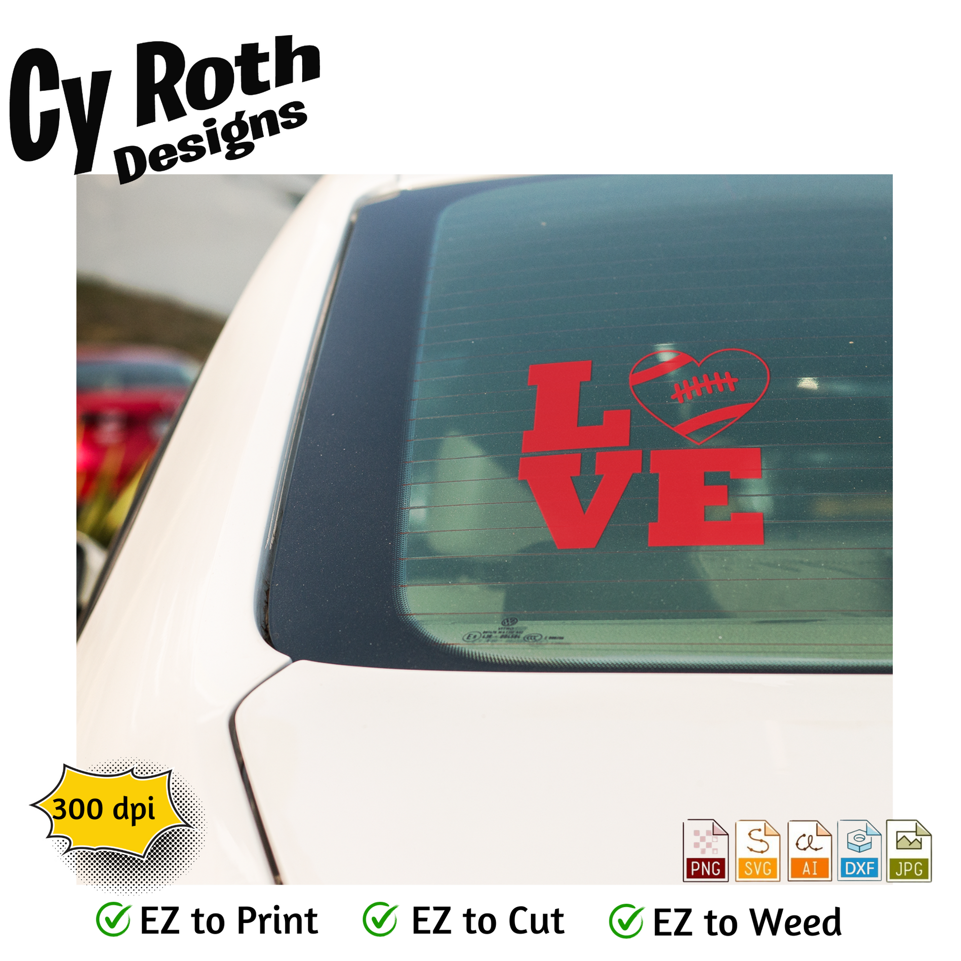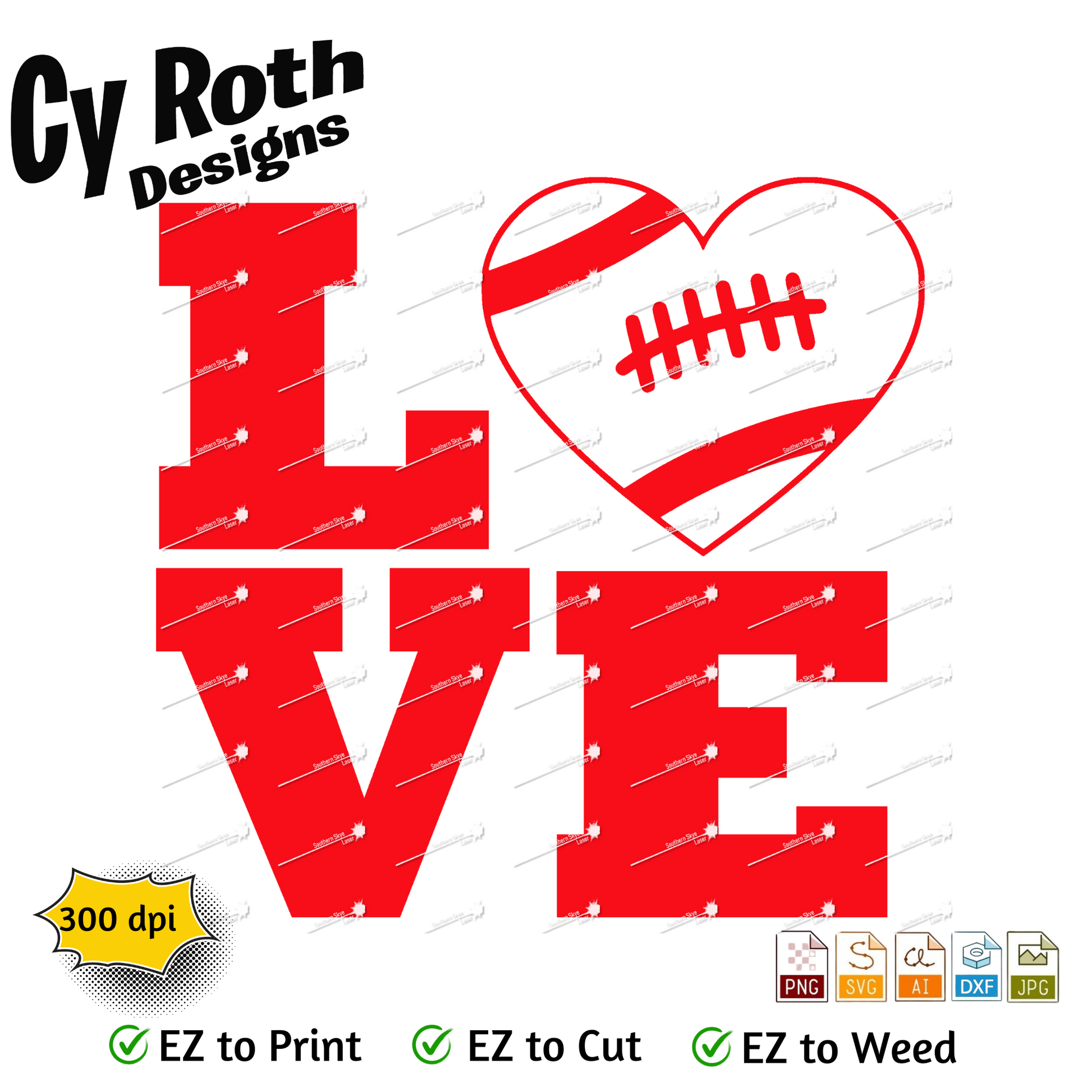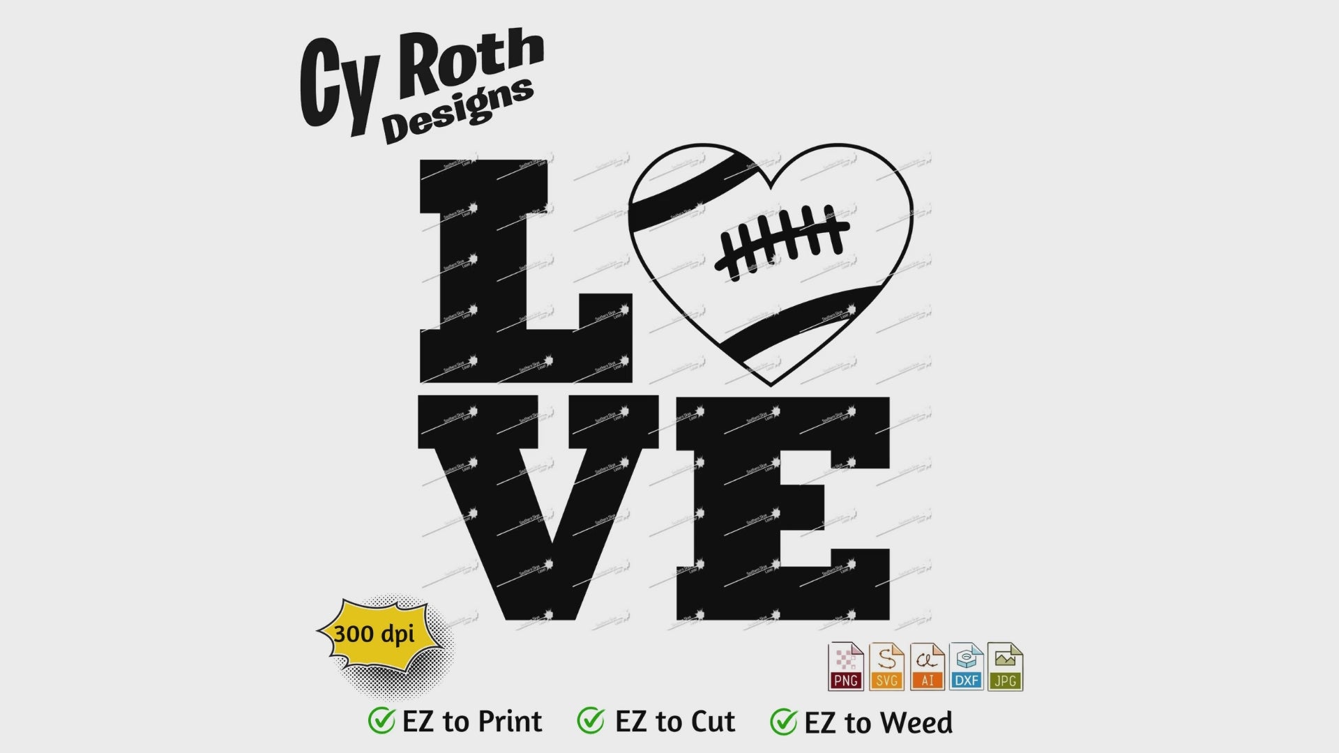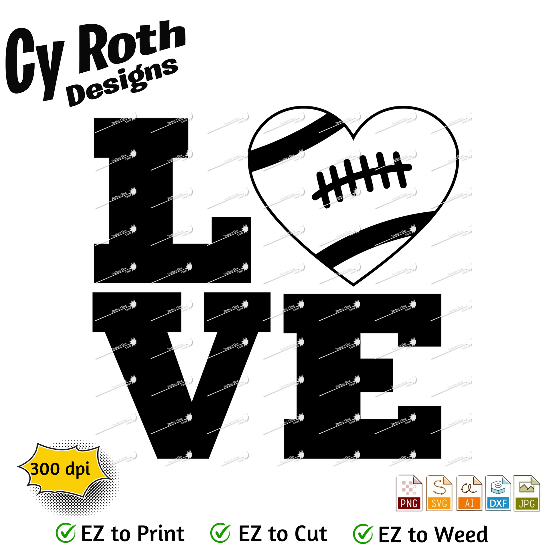 Football svg png jpg ai dxf file, for Silhouette, Cricut, Vinyl Plotters, Laser, CNC and Sublimation. Great for DTF and DTG. Football Love