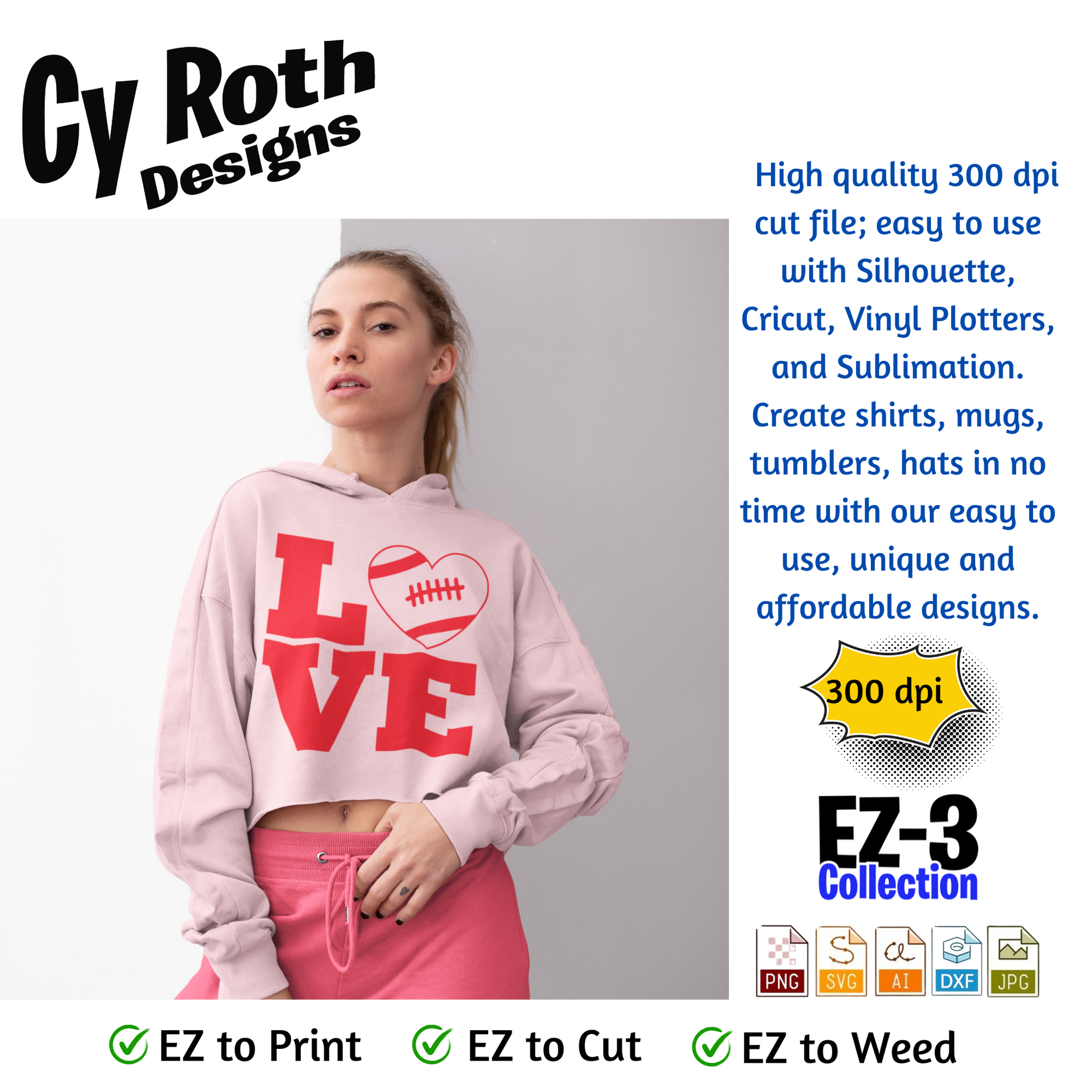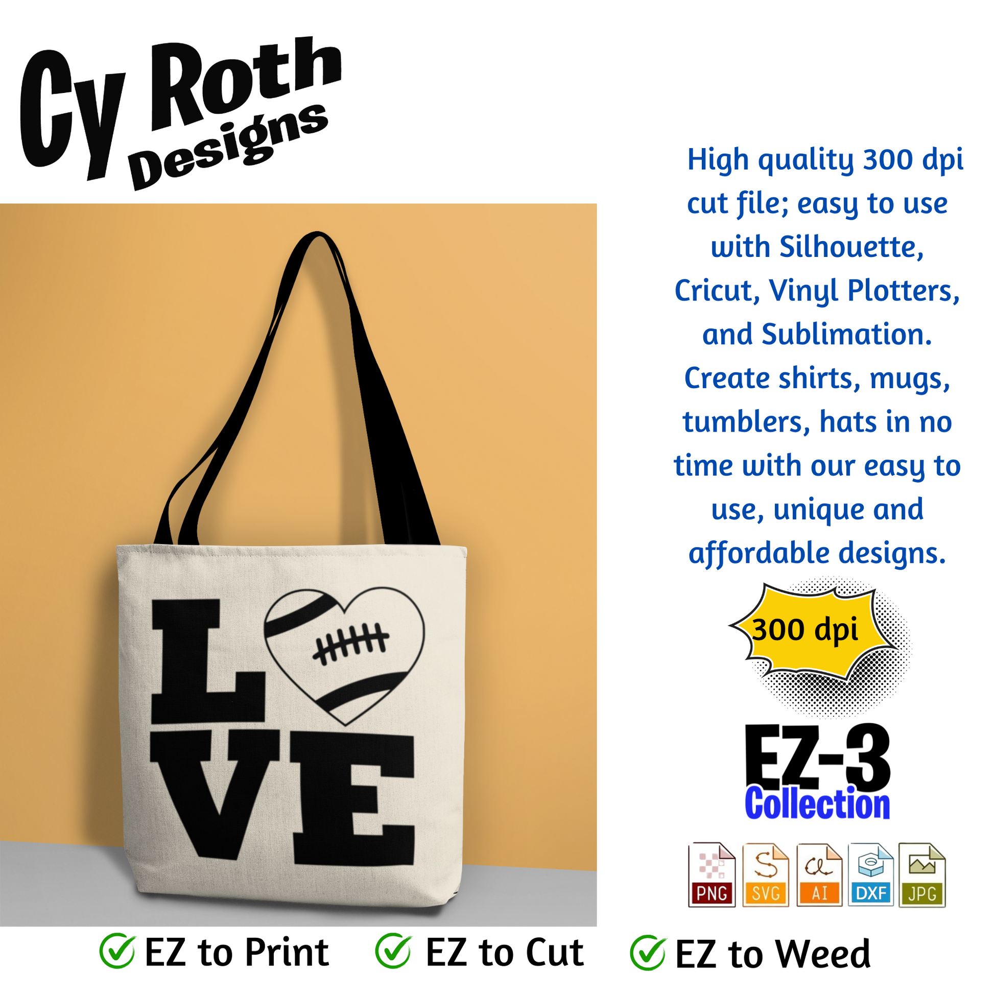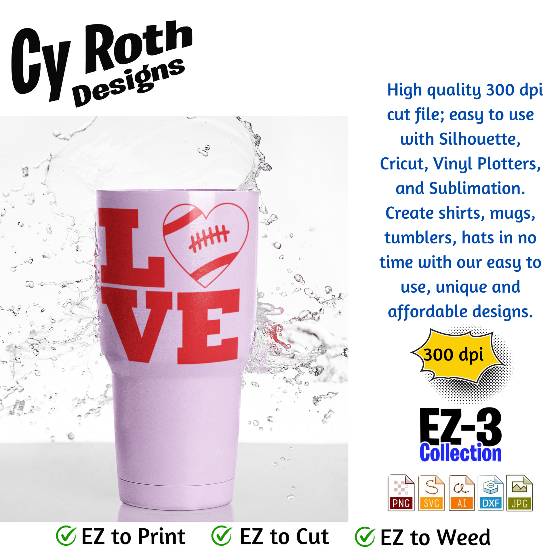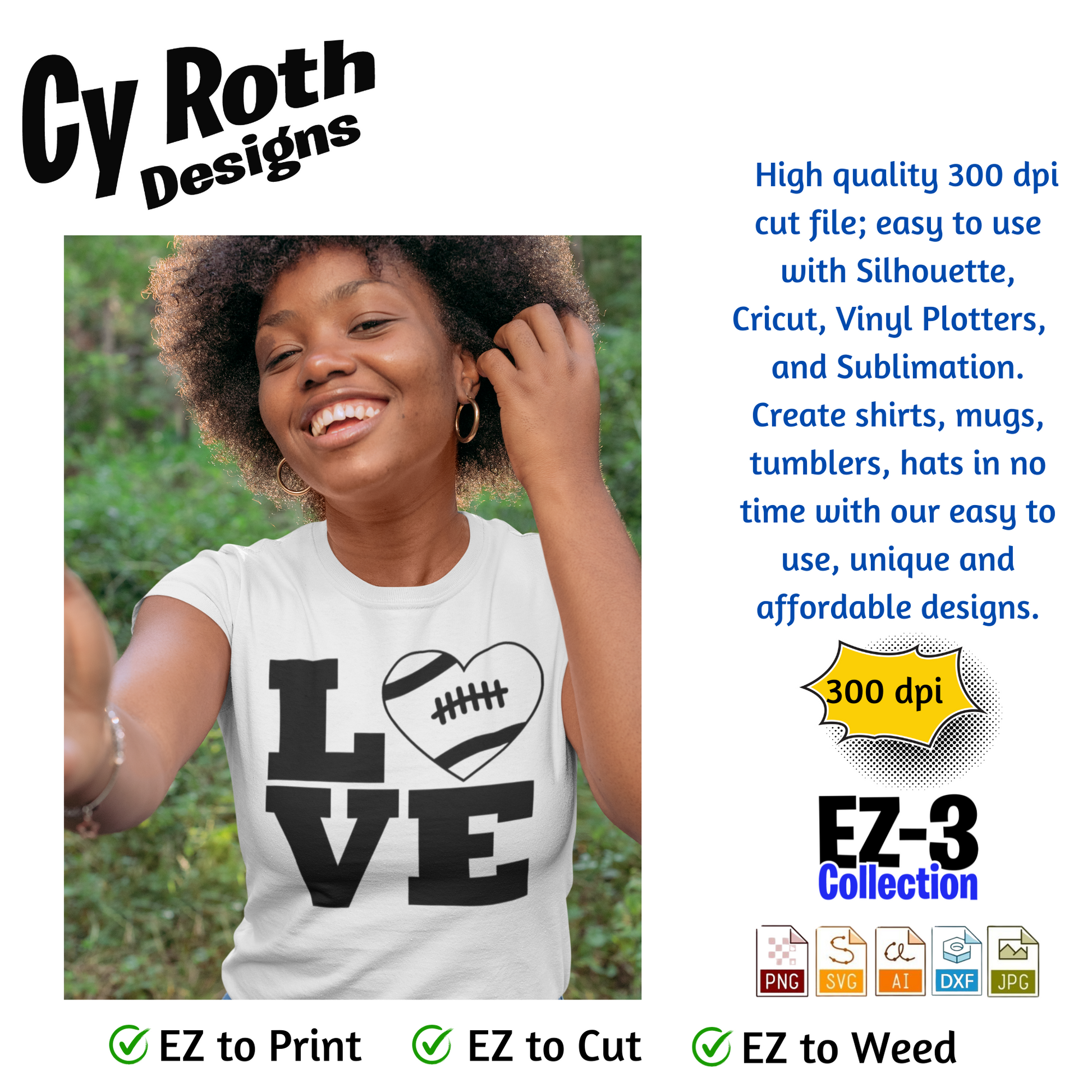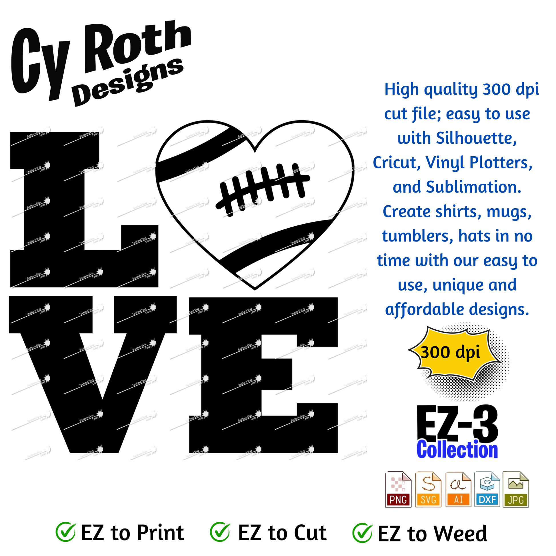 Football svg png jpg ai dxf file, for Silhouette, Cricut, Vinyl Plotters, Laser, CNC and Sublimation. Great for DTF and DTG. Football Love