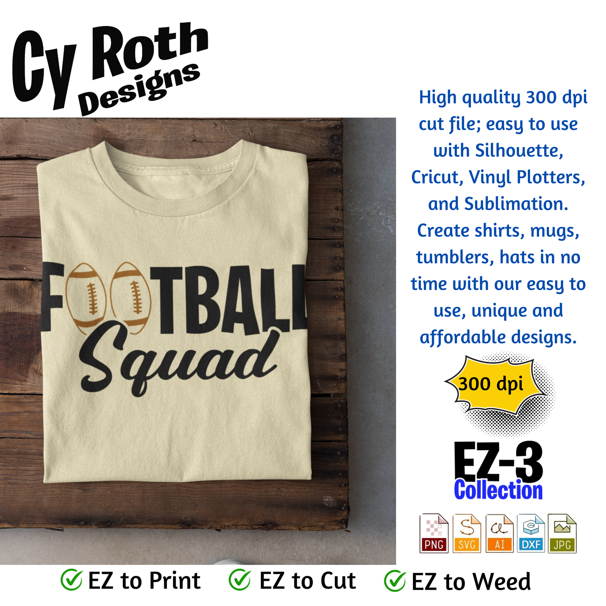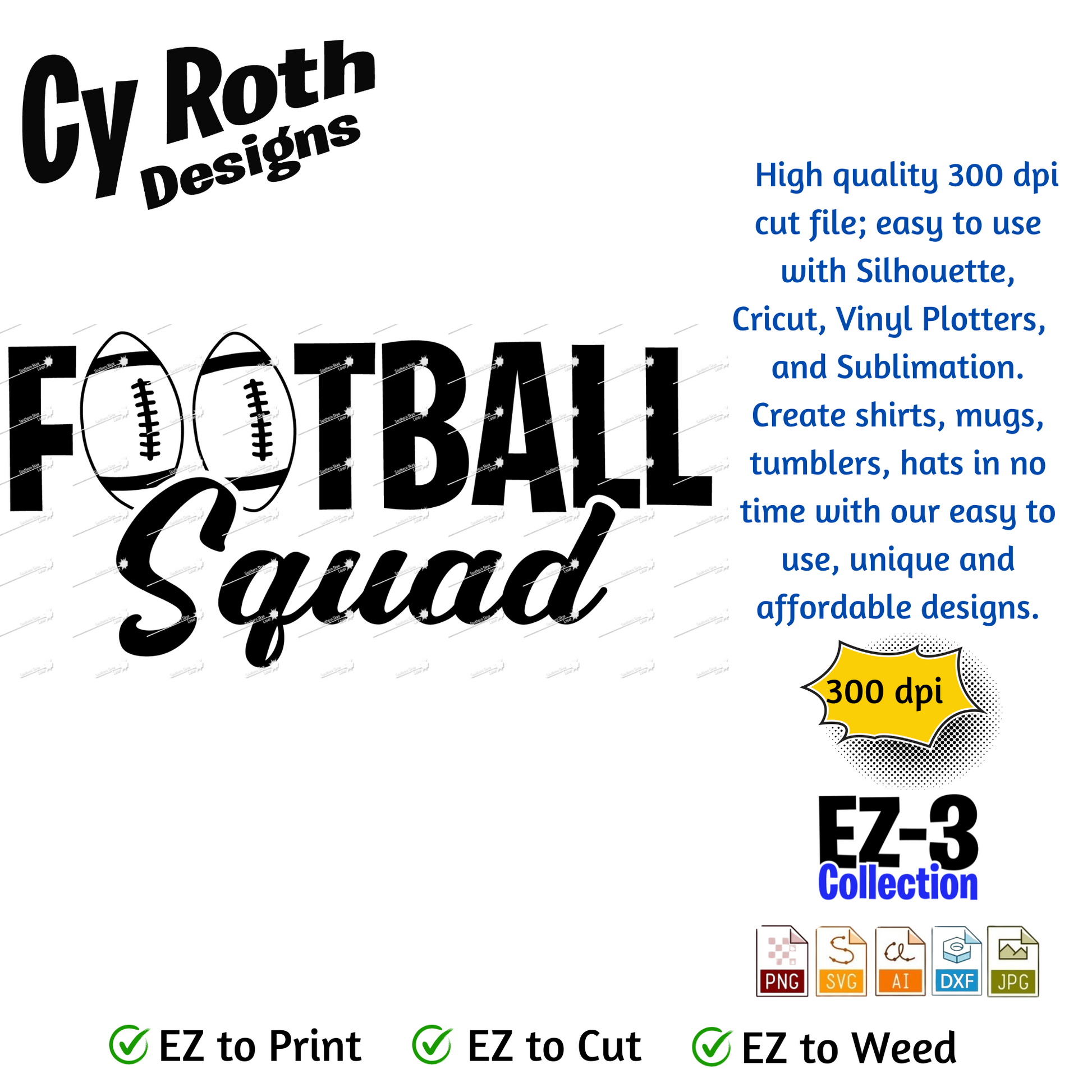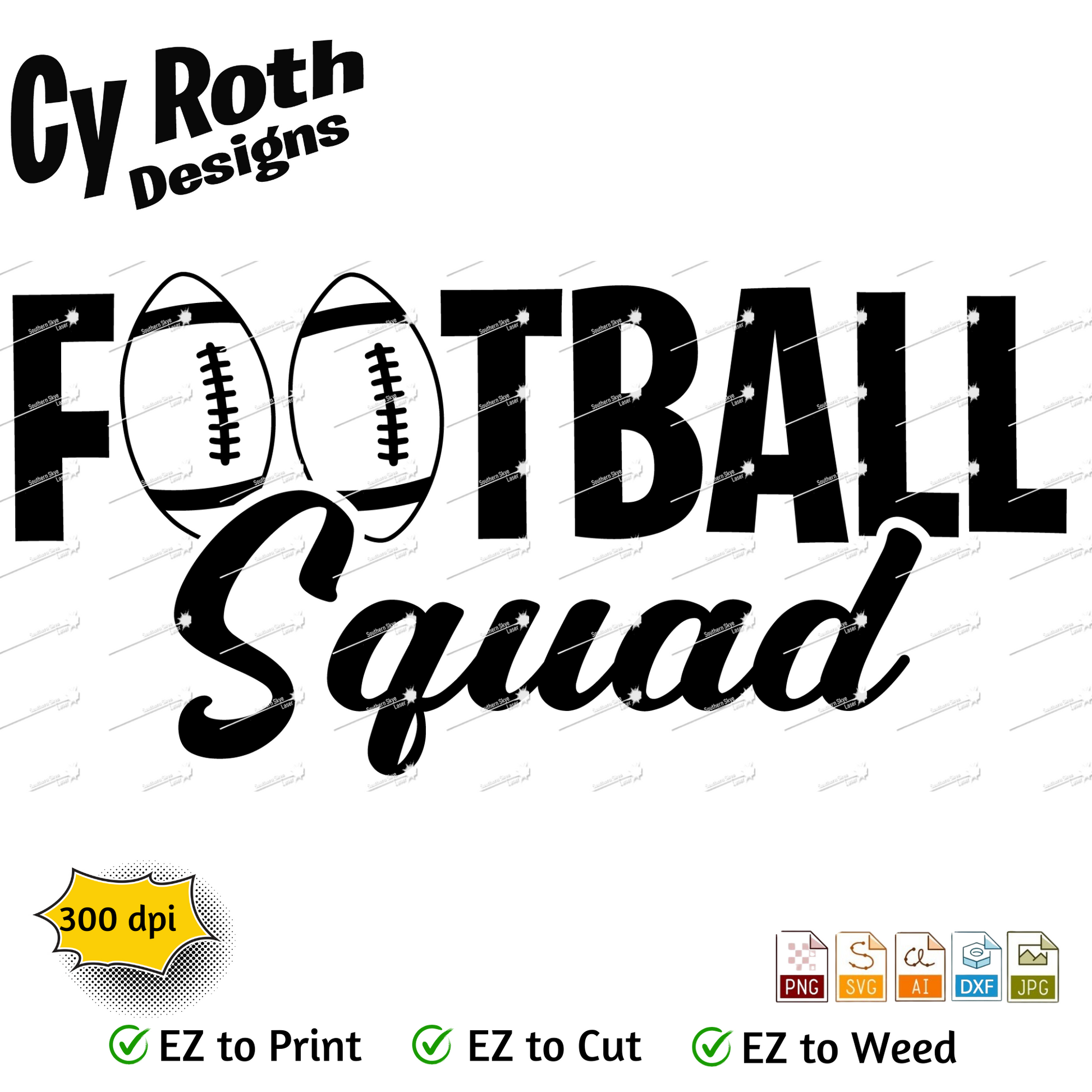 Football svg png jpg ai dxf file, for Silhouette, Cricut, Vinyl Plotters, Laser, CNC and Sublimation. Great for DTF and DTG. Football Squad