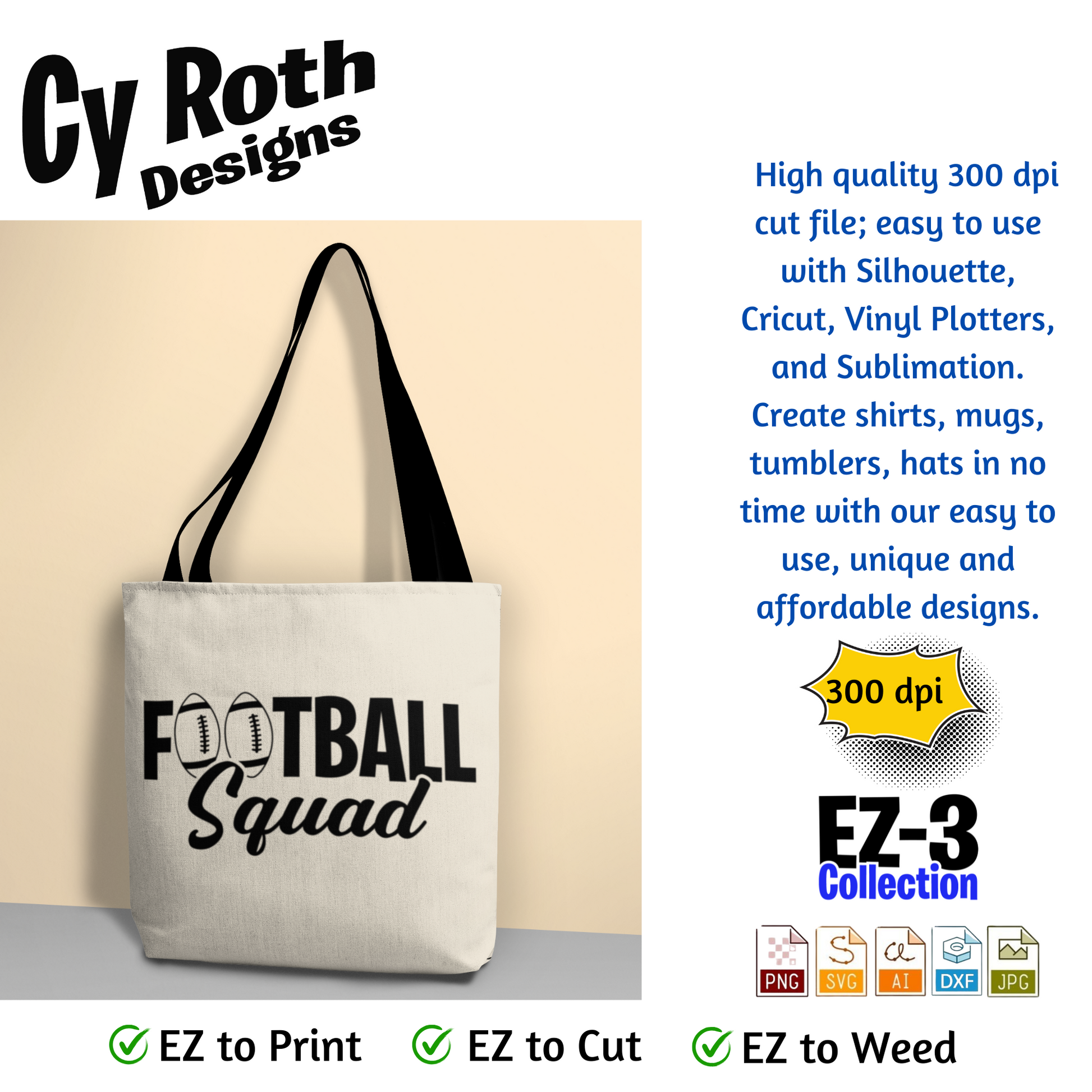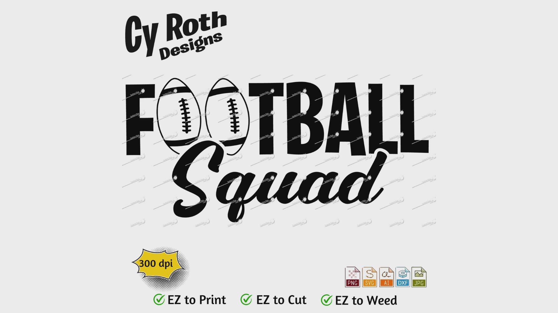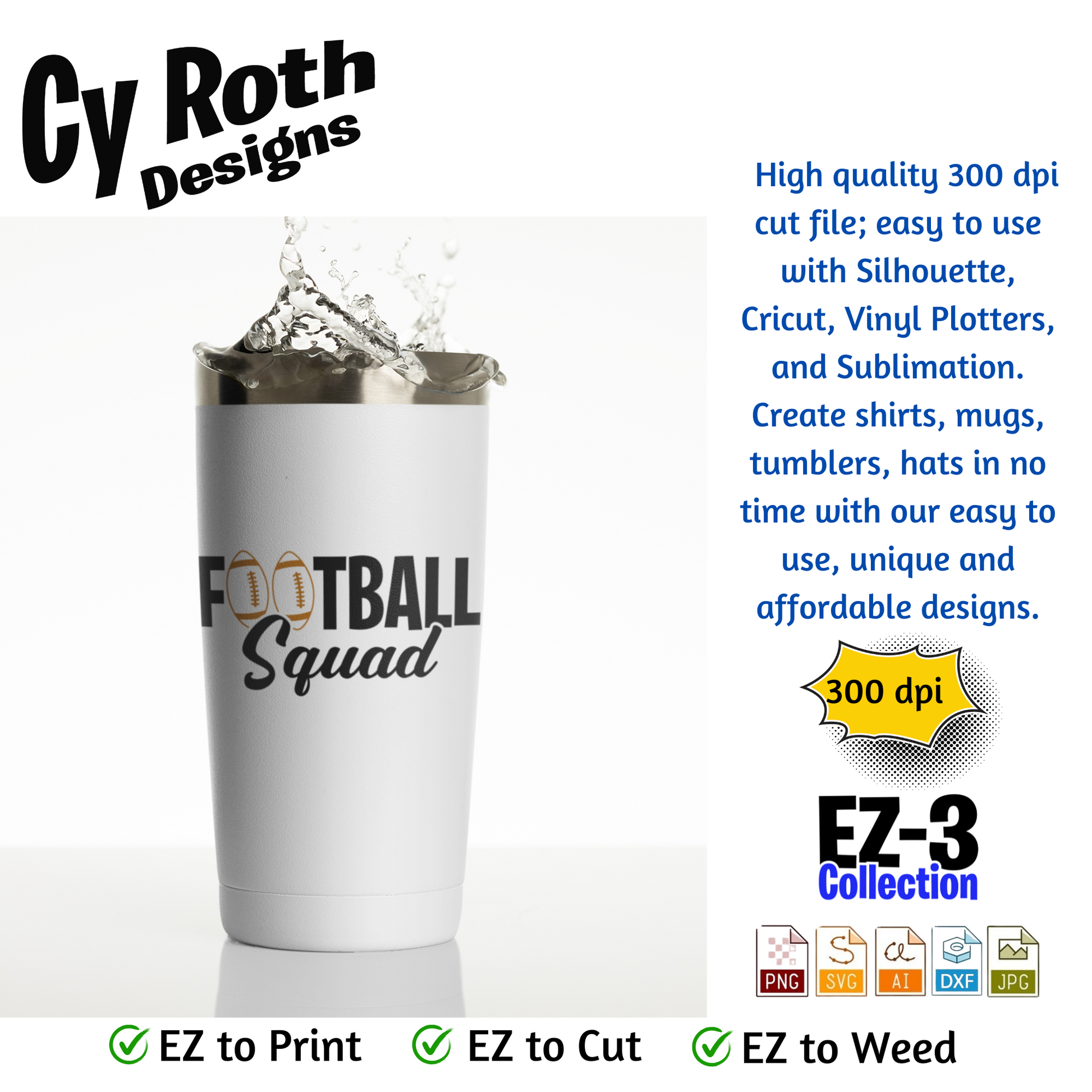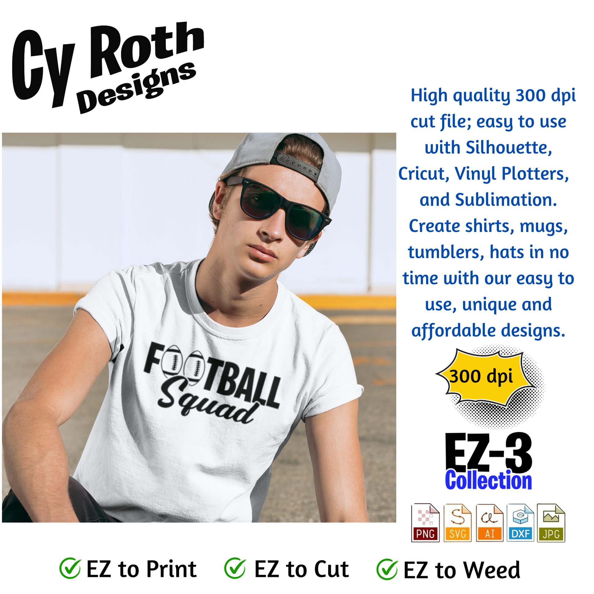 Football svg png jpg ai dxf file, for Silhouette, Cricut, Vinyl Plotters, Laser, CNC and Sublimation. Great for DTF and DTG. Football Squad