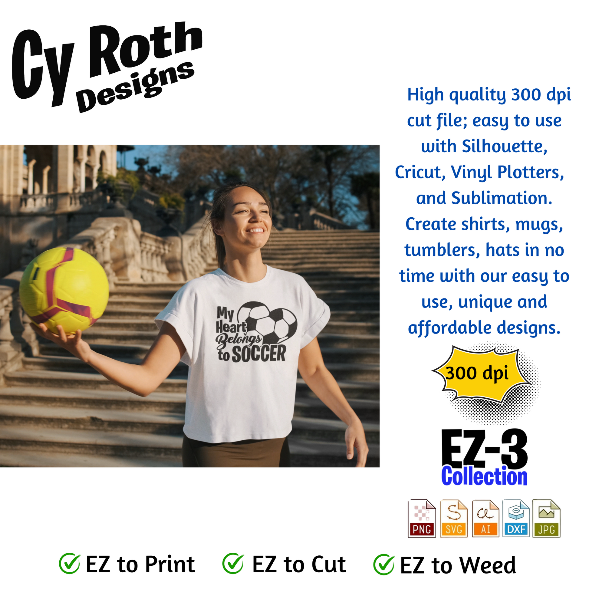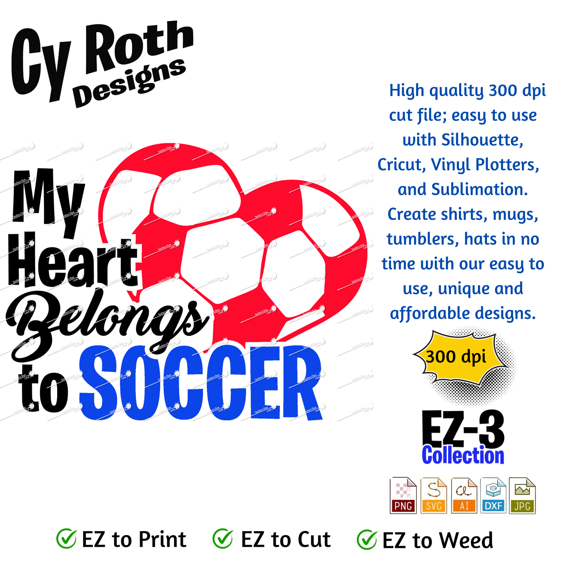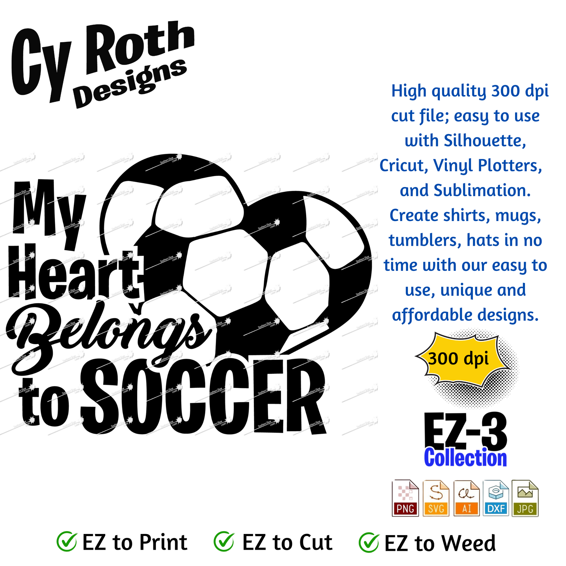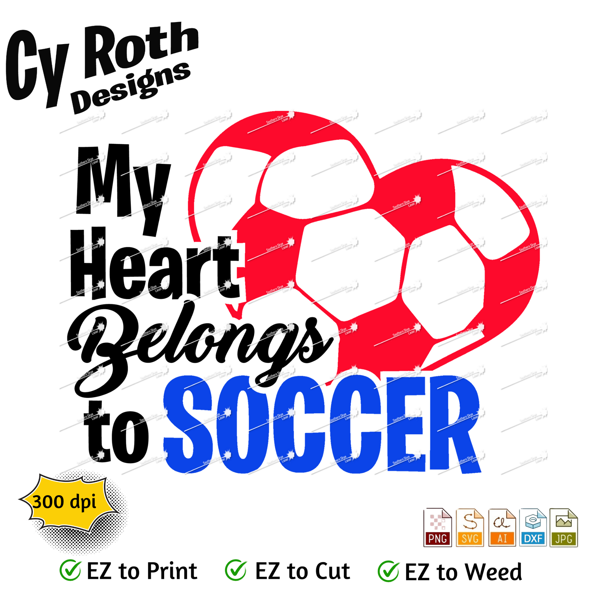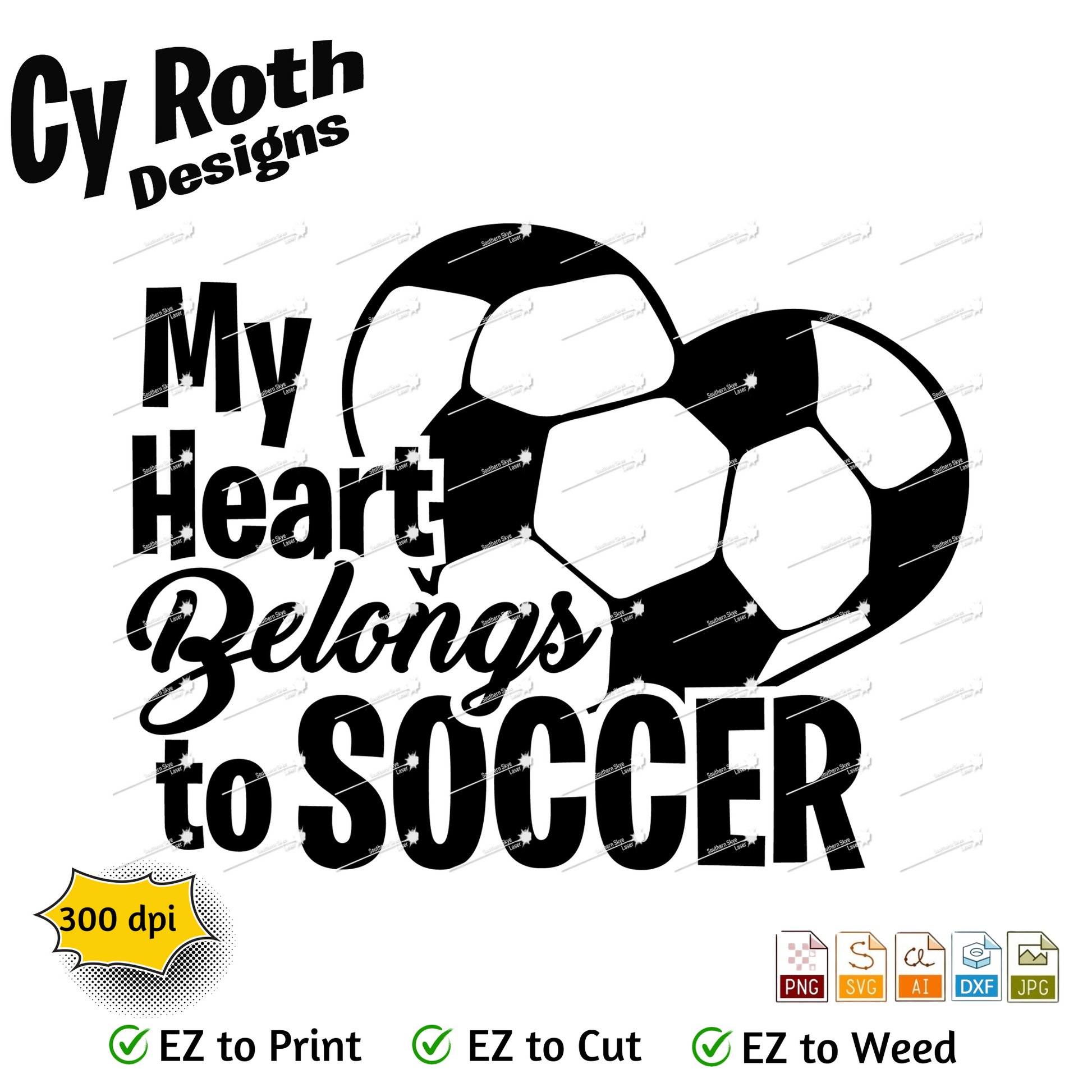 Soccer svg png jpg ai dxf file, for Silhouette, Cricut, Vinyl Plotters, Laser, CNC and Sublimation. Great for DTF and DTG. My heart belongs to soccer.