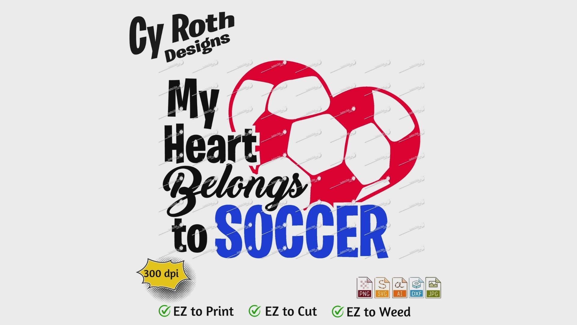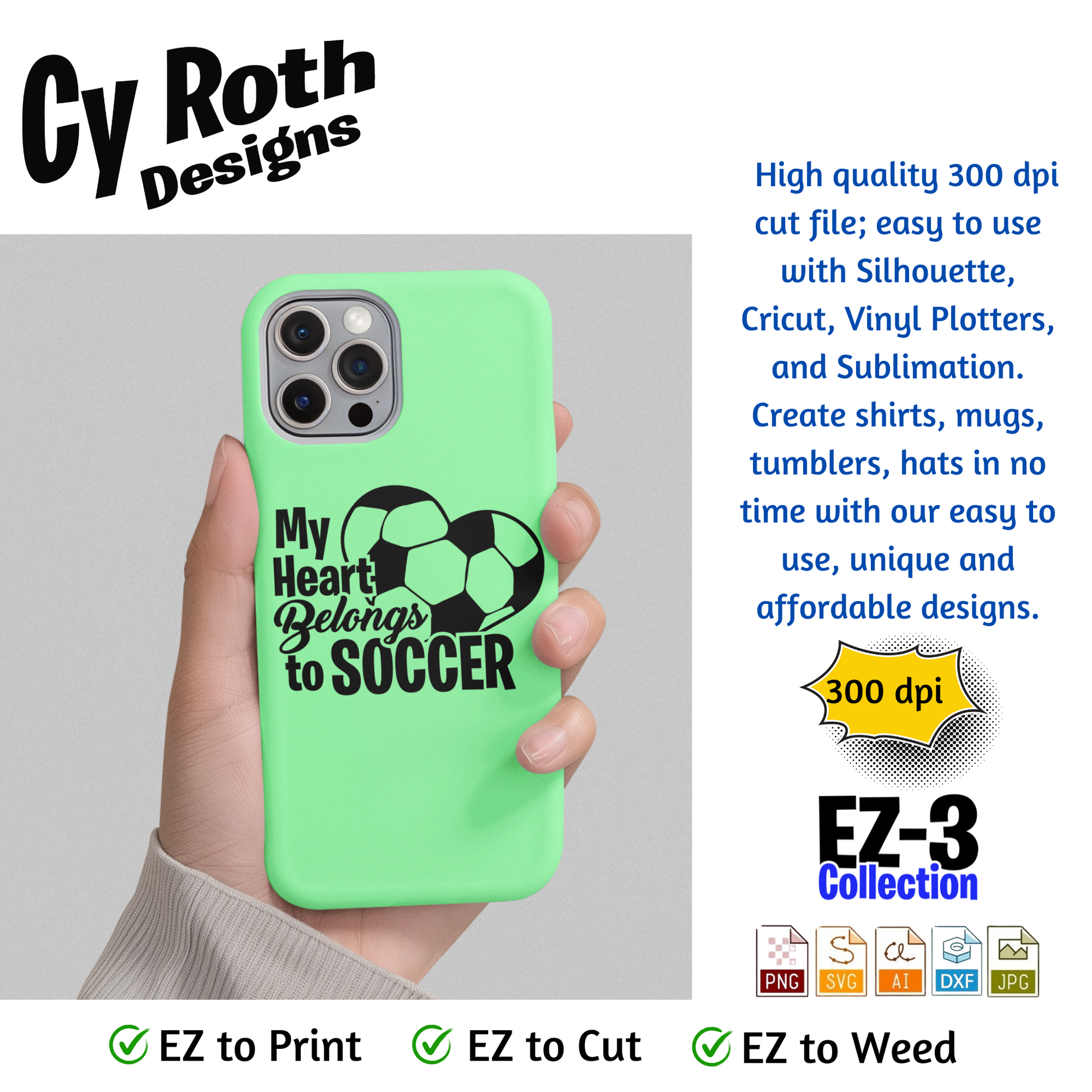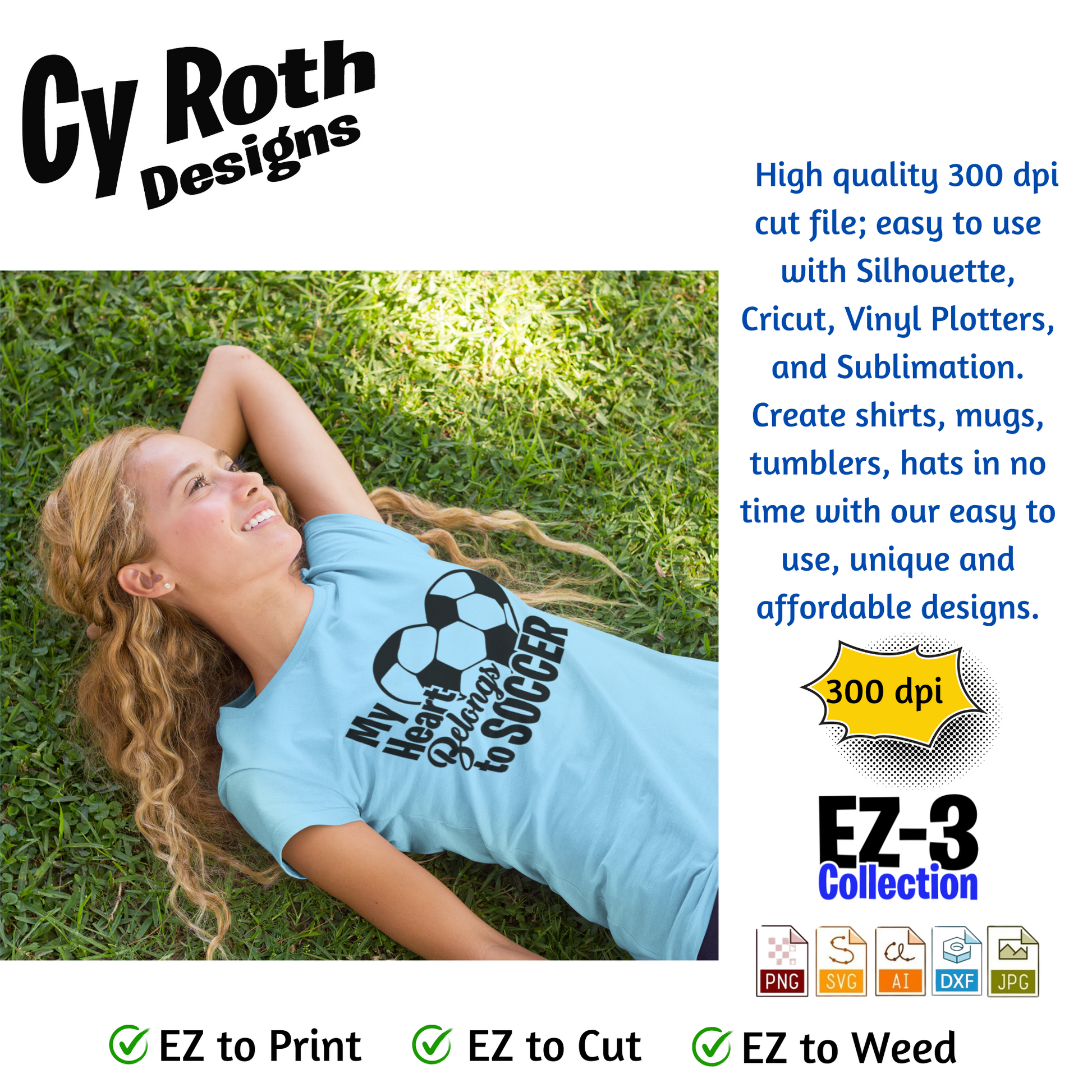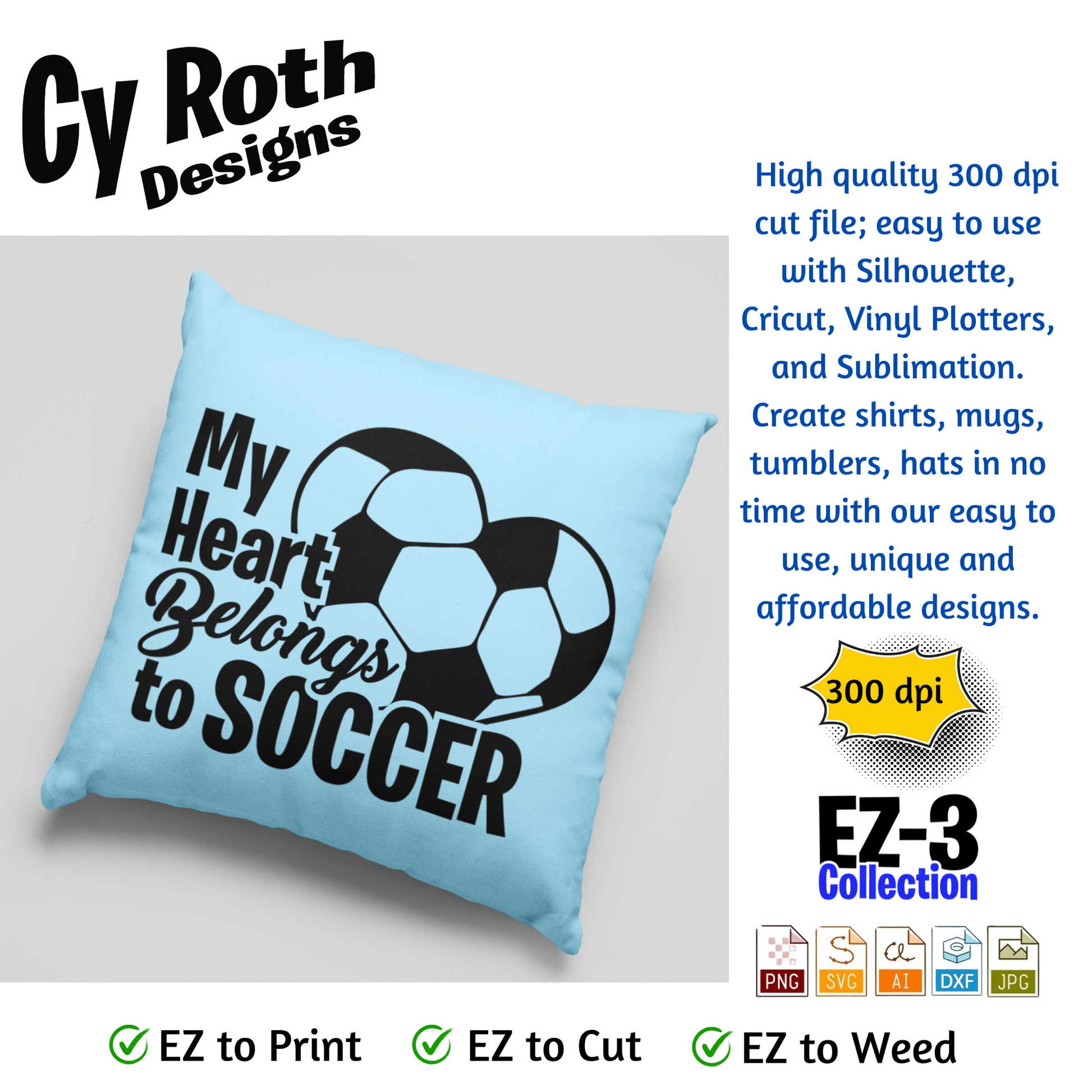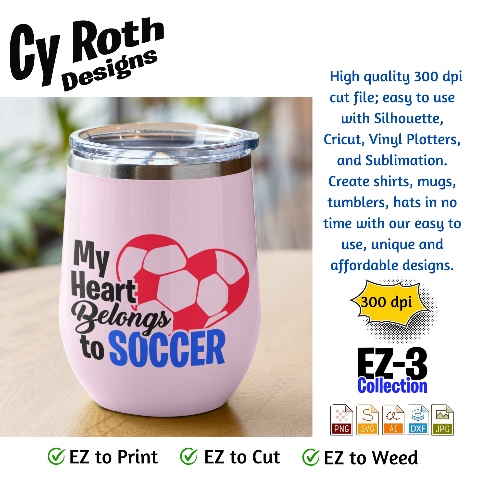Soccer svg png jpg ai dxf file, for Silhouette, Cricut, Vinyl Plotters, Laser, CNC and Sublimation. Great for DTF and DTG. My heart belongs to soccer.