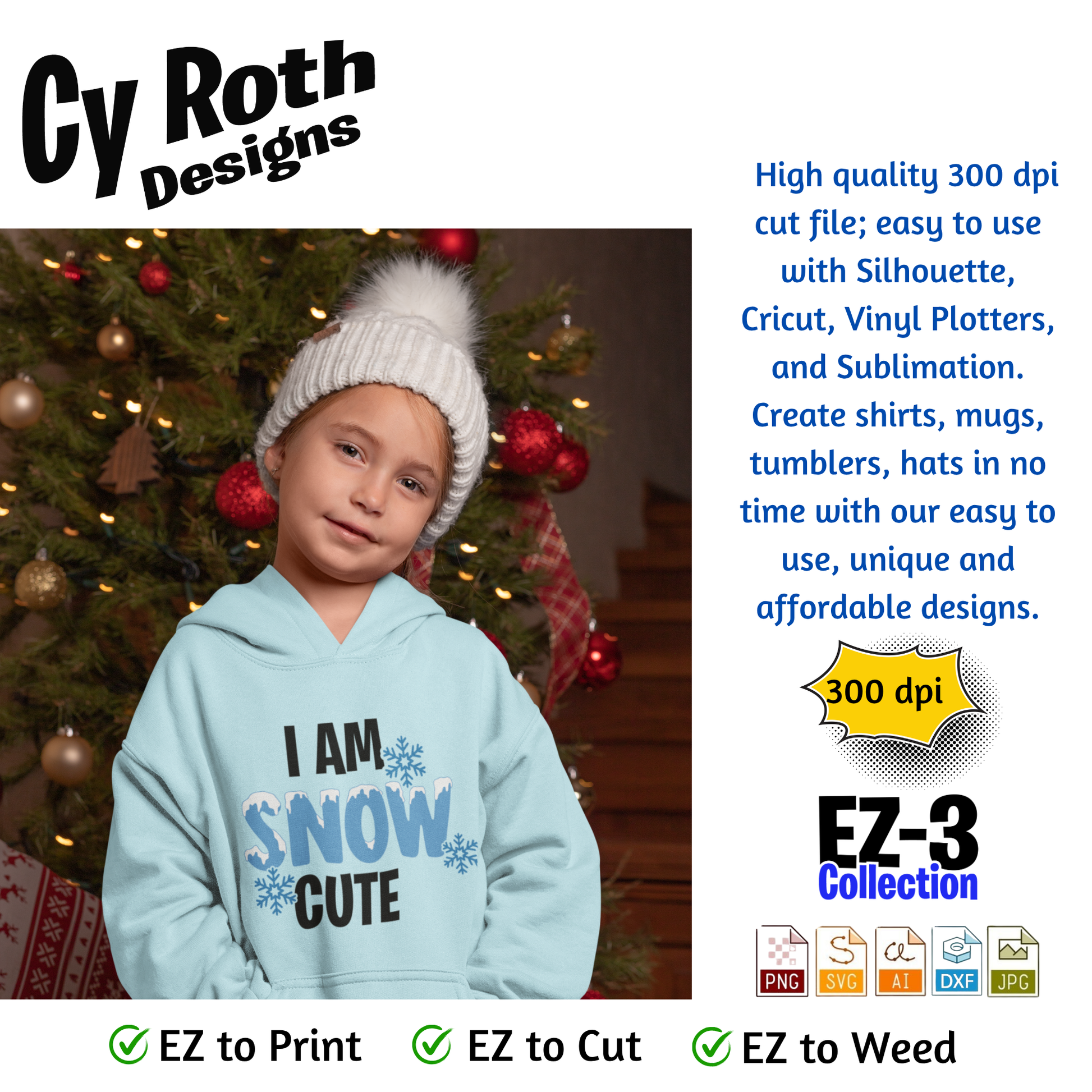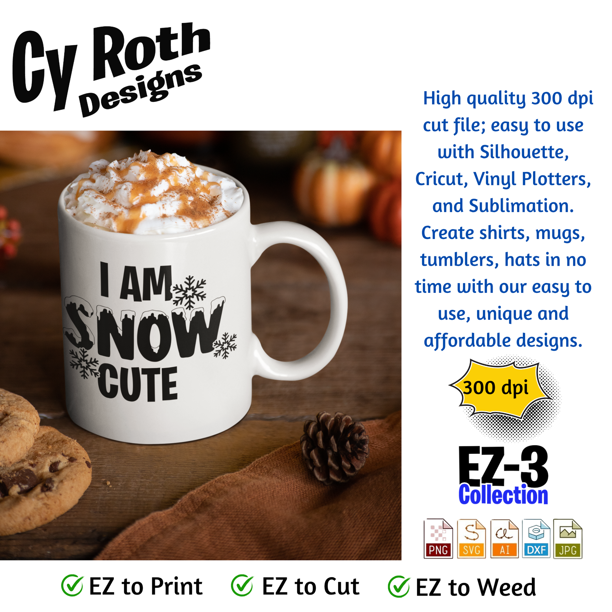 Christmas or winter svg - I'm Snow Cute. Vector and Color Designs for Tumblers, Shirts, Wall Art (PNG, SVG, JPG, DXF, AI Digital Download)