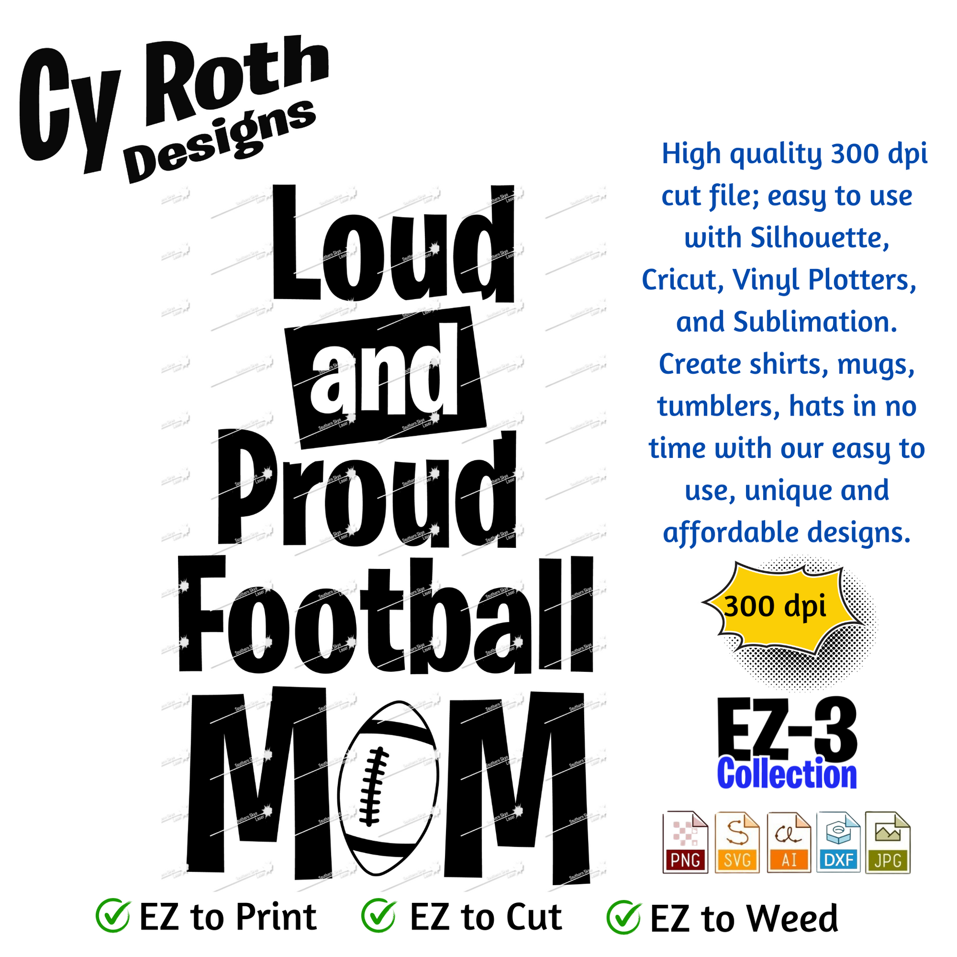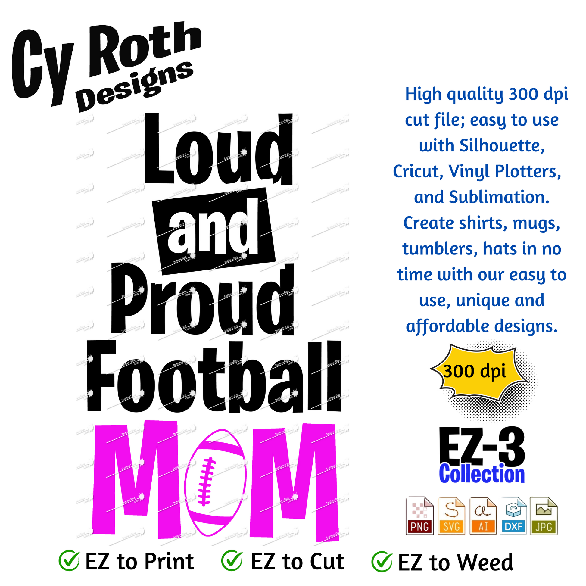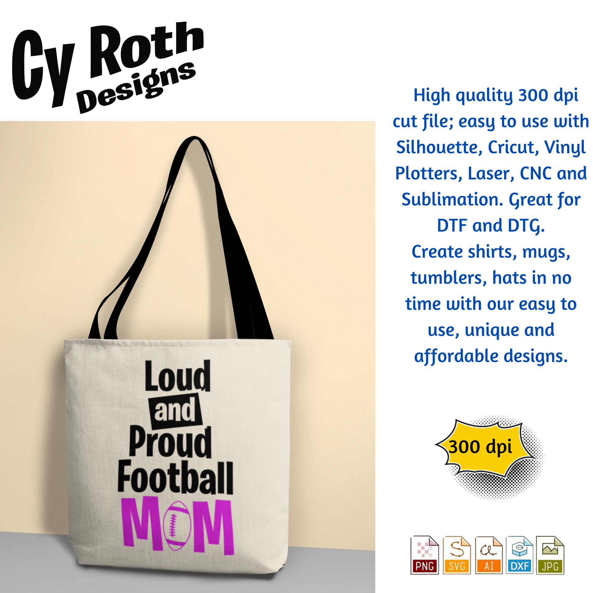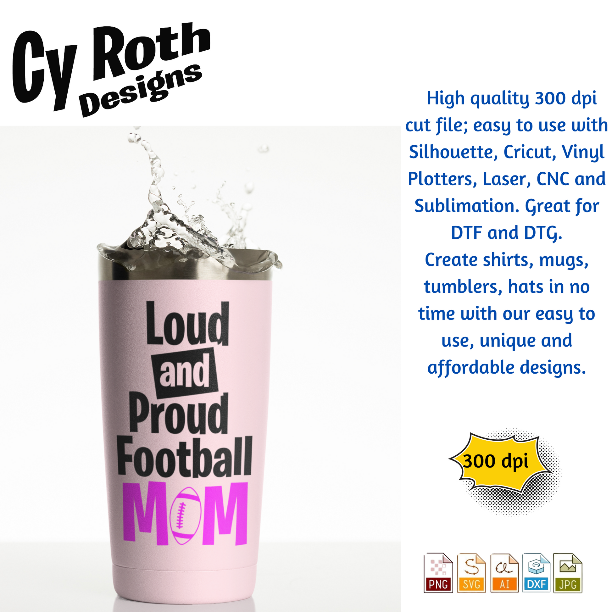 Football svg png jpg ai dxf file, for Silhouette, Cricut, Vinyl Plotters, Laser, CNC and Sublimation. Great for DTF and DTG. Loud Proud Football Mom.