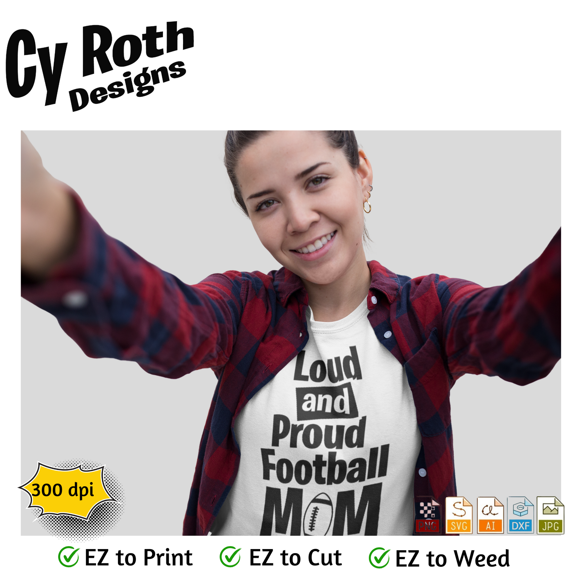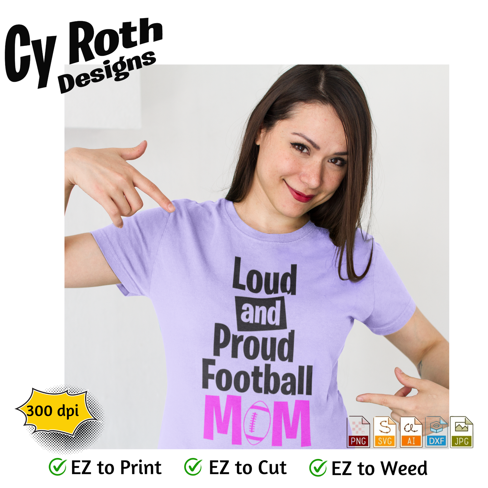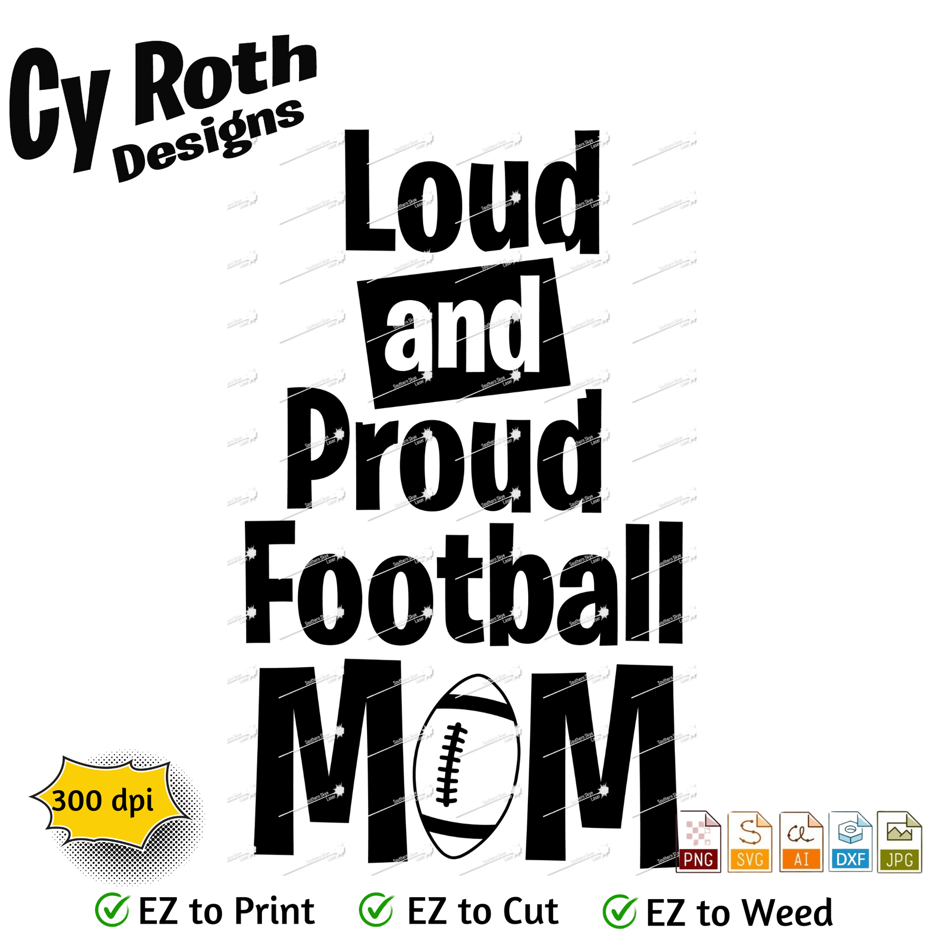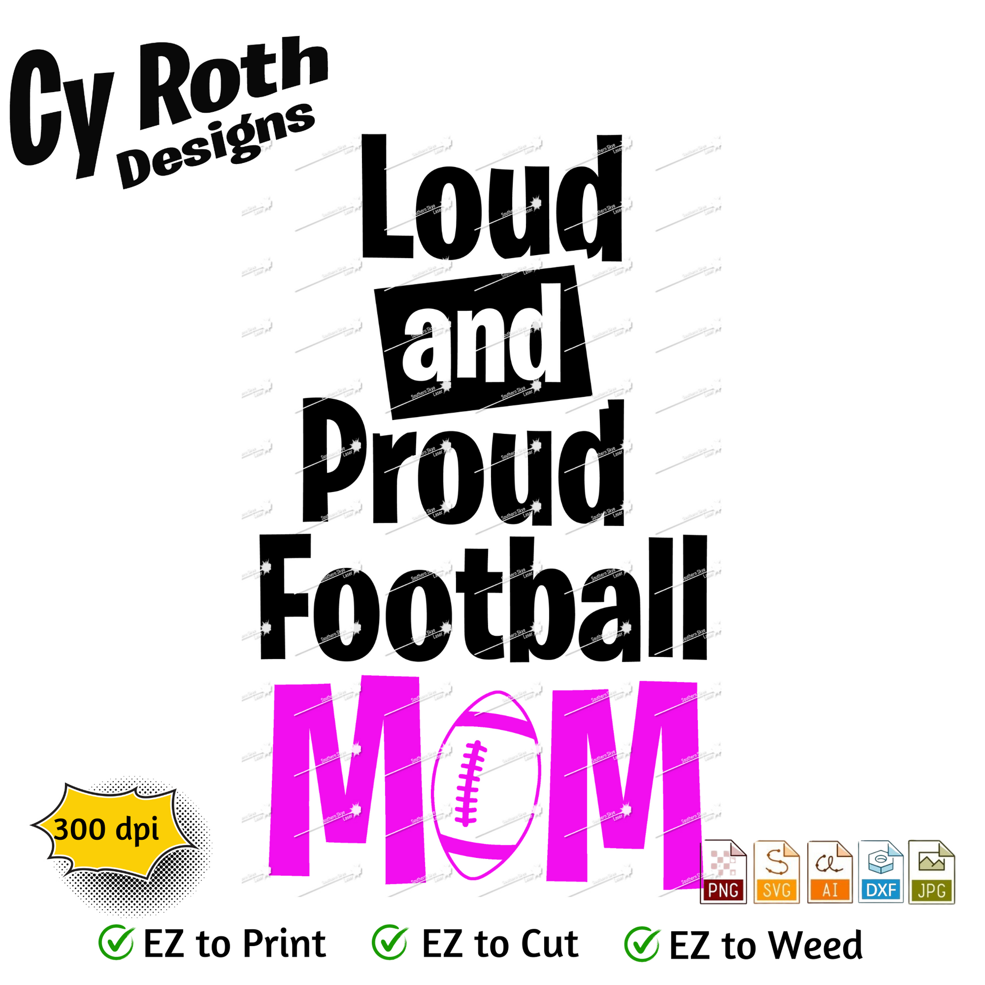 Football svg png jpg ai dxf file, for Silhouette, Cricut, Vinyl Plotters, Laser, CNC and Sublimation. Great for DTF and DTG. Loud Proud Football Mom