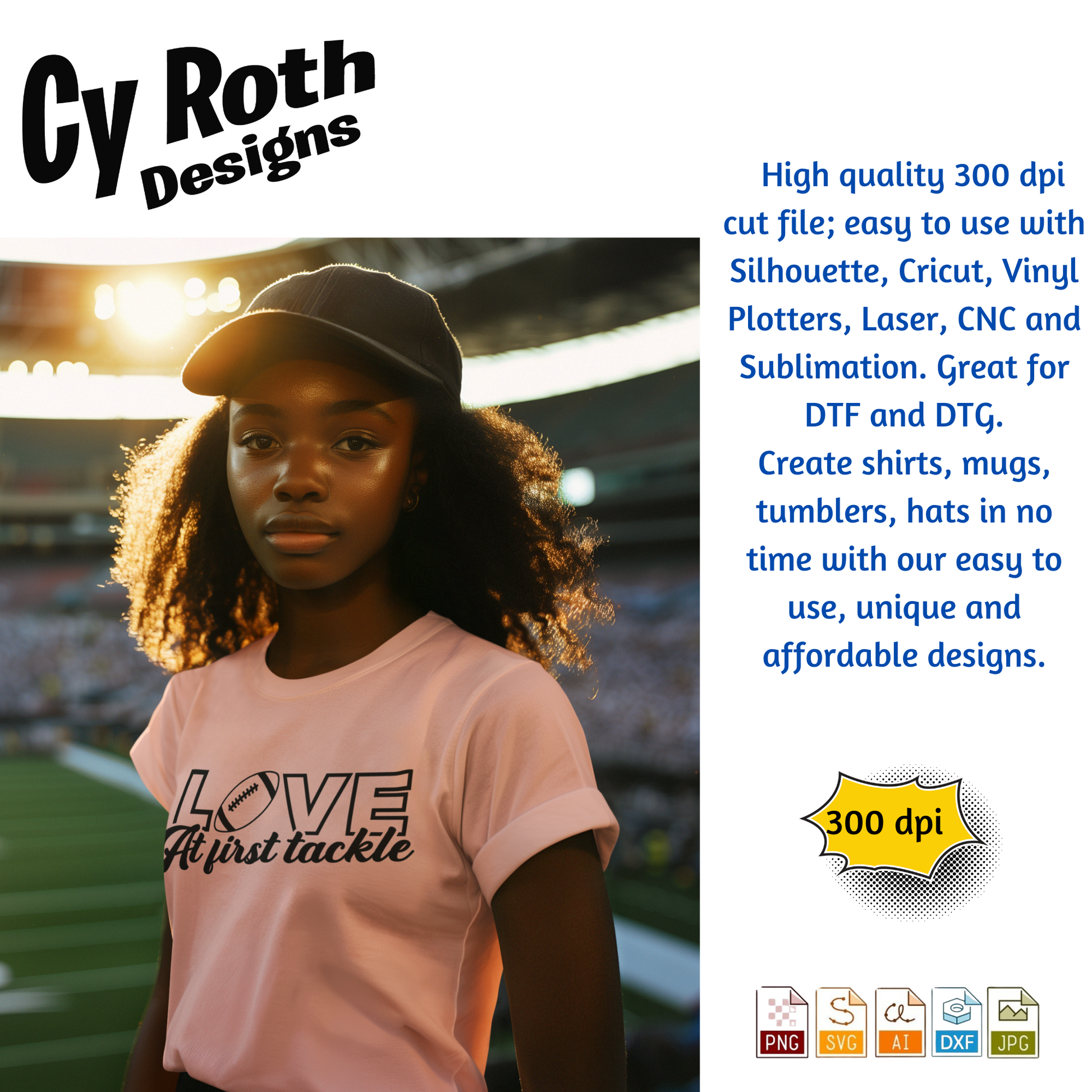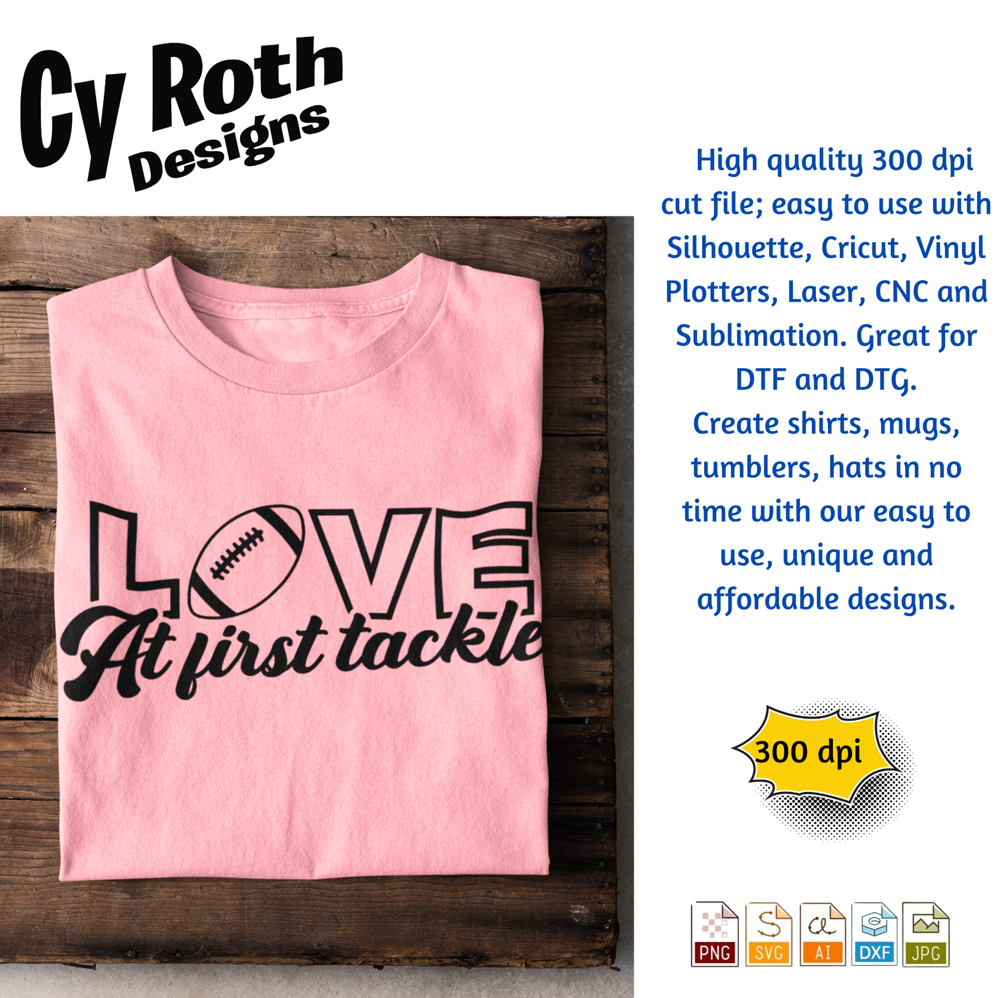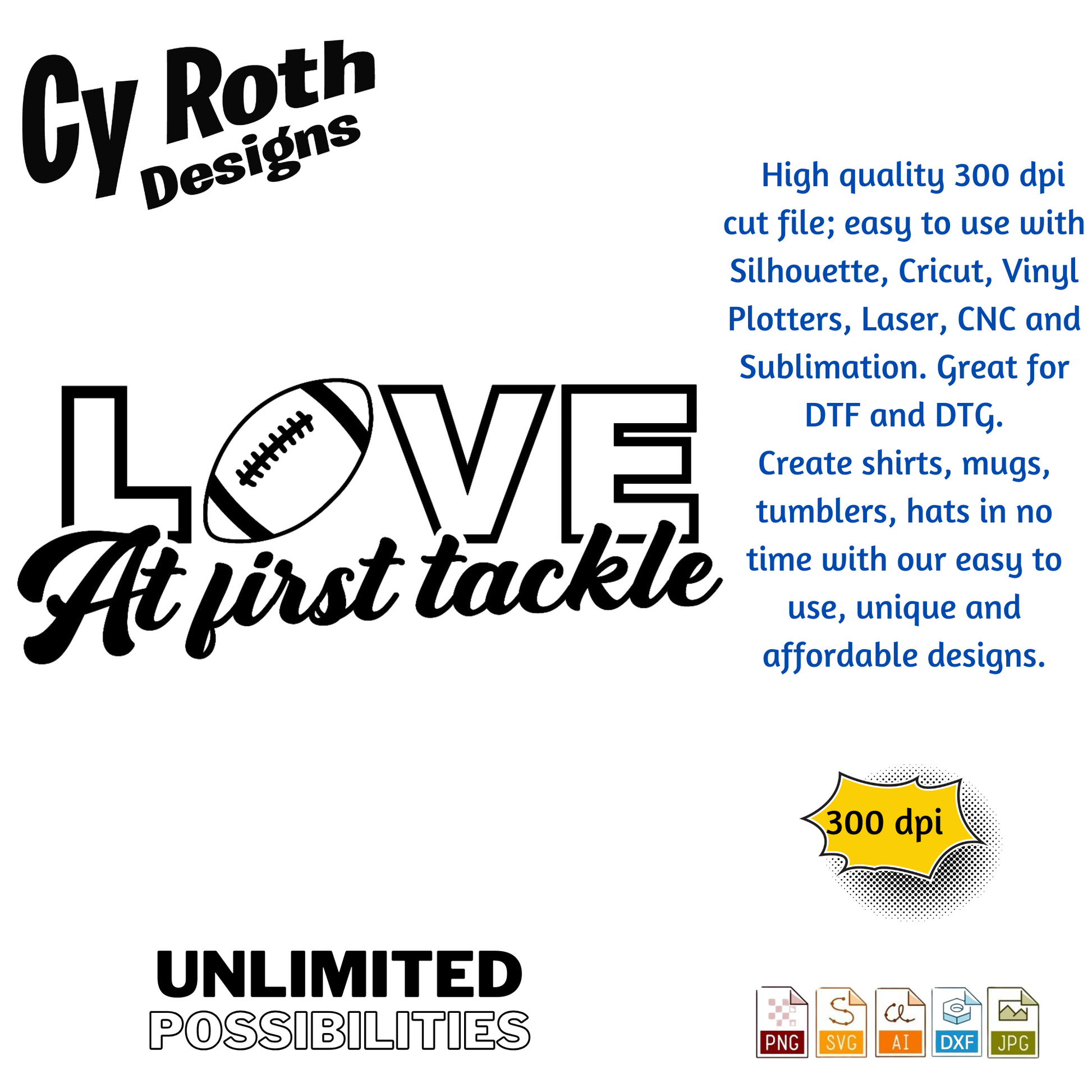 Football svg png jpg ai dxf file, for Silhouette, Cricut, Vinyl Plotters, Laser, CNC and Sublimation. Great for DTF and DTG. Love at first tackle