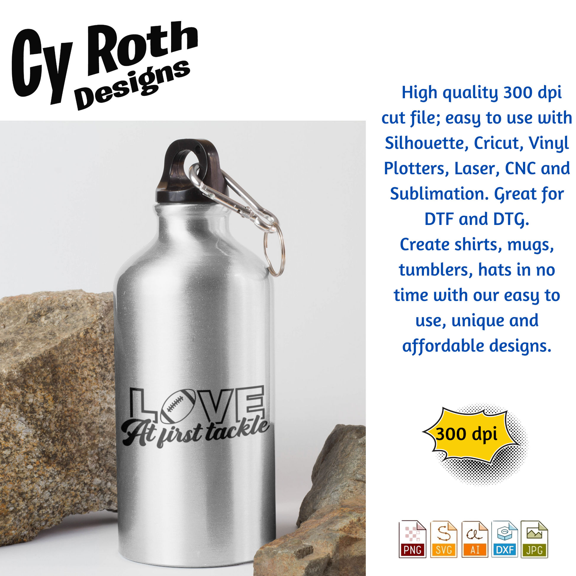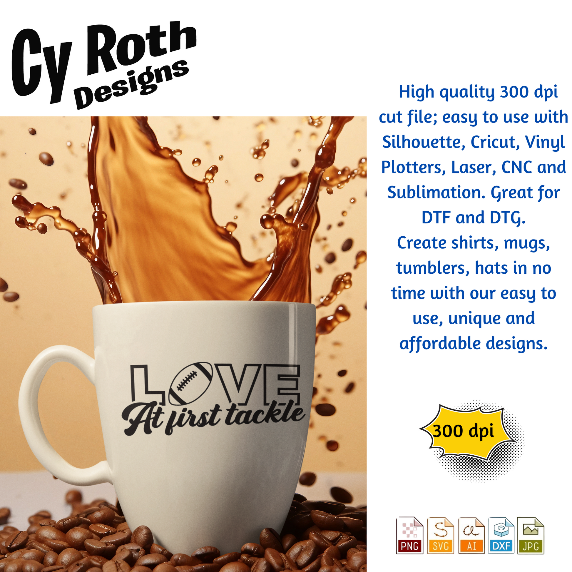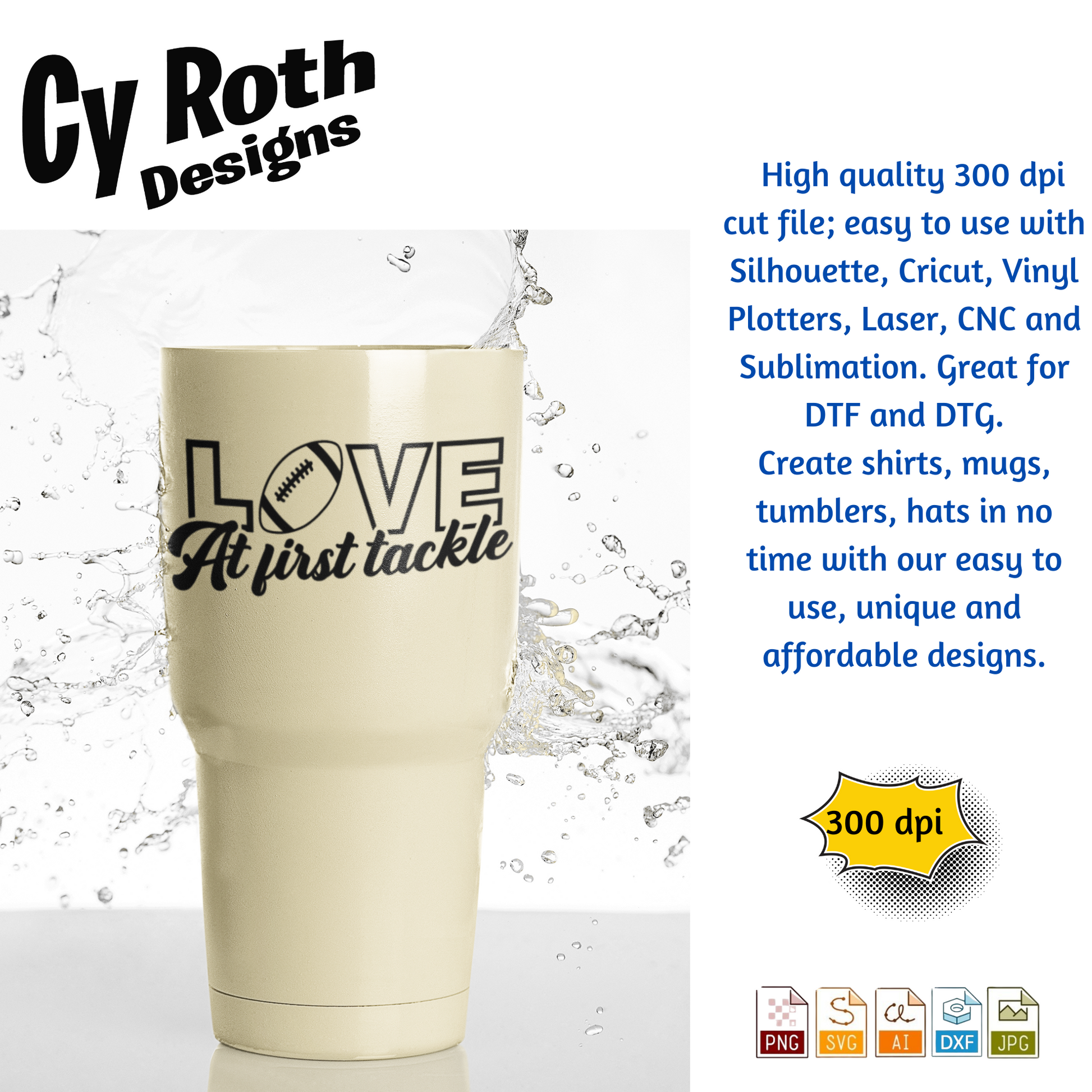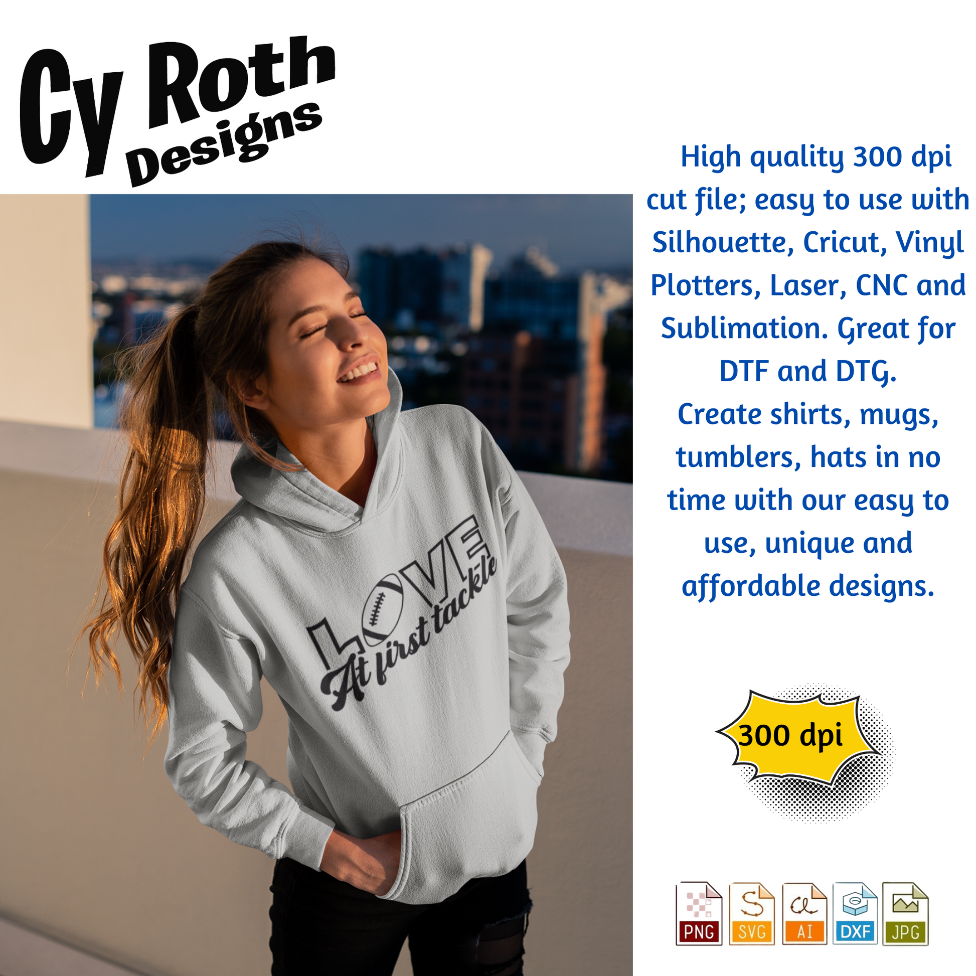 Football svg png jpg ai dxf file, for Silhouette, Cricut, Vinyl Plotters, Laser, CNC and Sublimation. Great for DTF and DTG. Love at first tackle