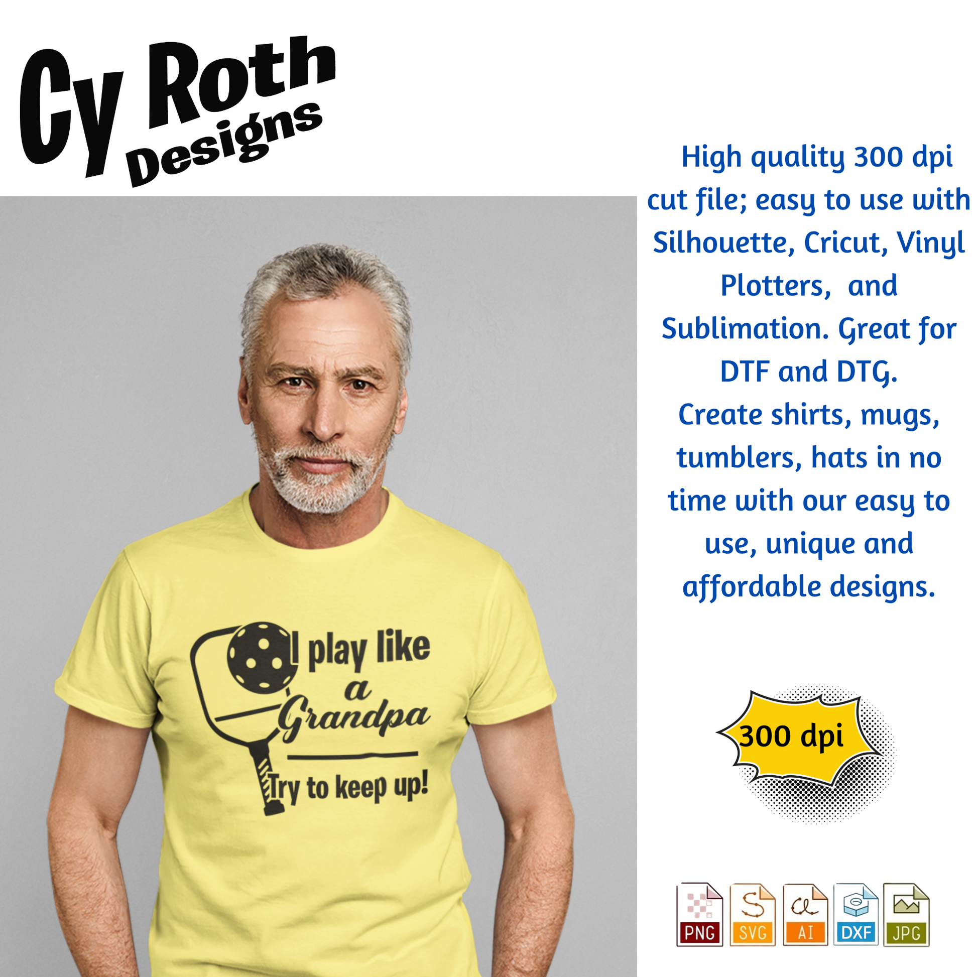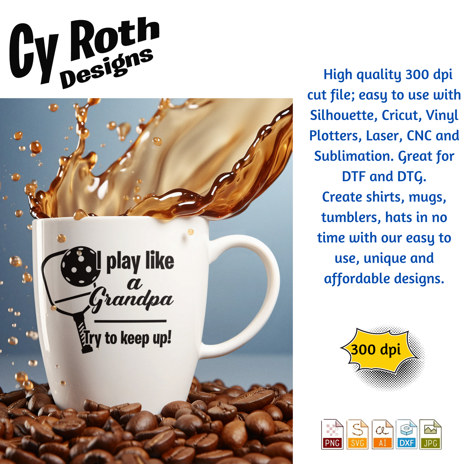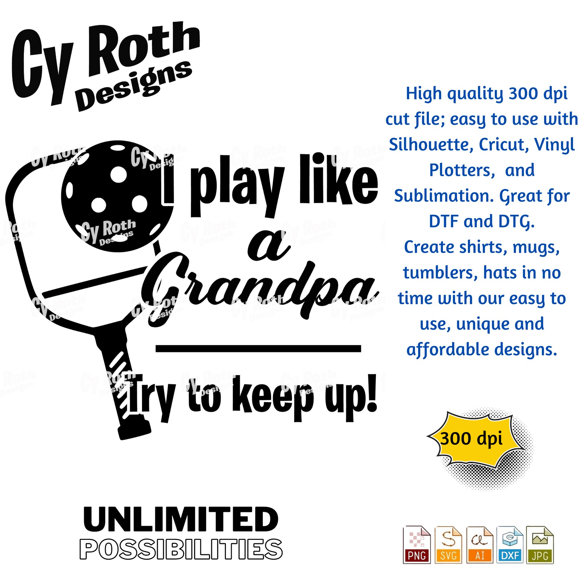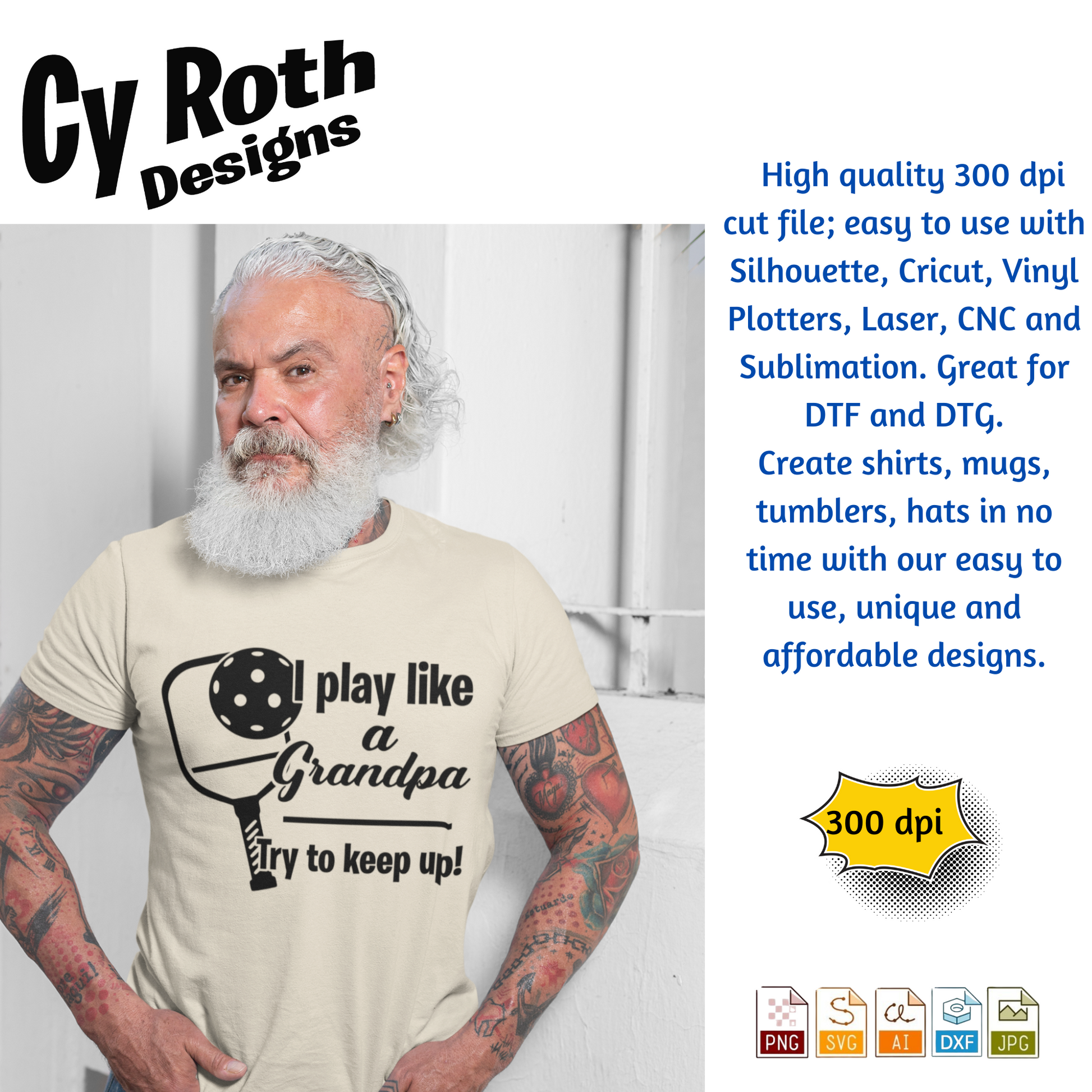 Pickleball Grandpa svg png jpg ai dxf file, for Silhouette, Cricut, Vinyl Plotters, Laser, CNC and Sublimation. Great for DTF and DTG.