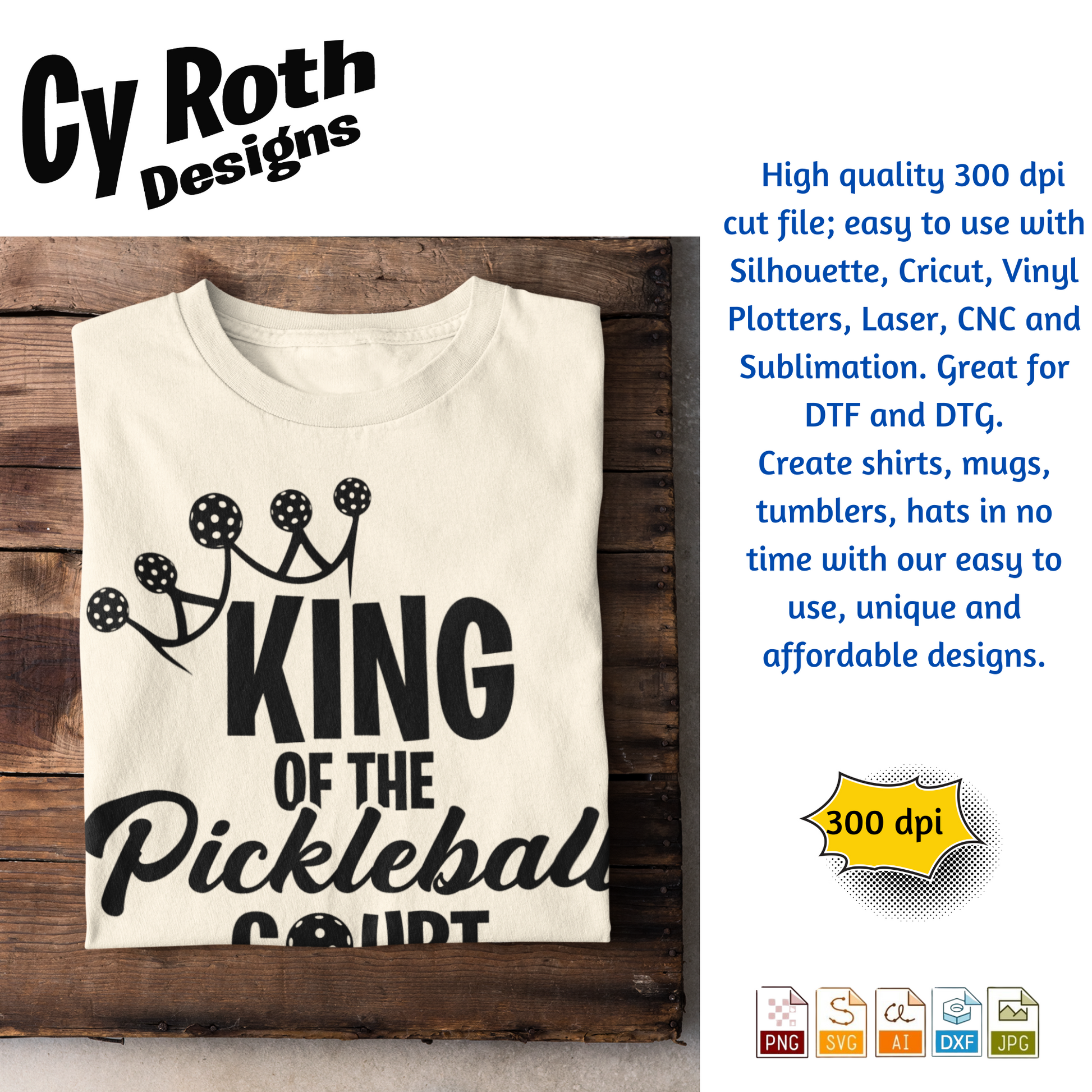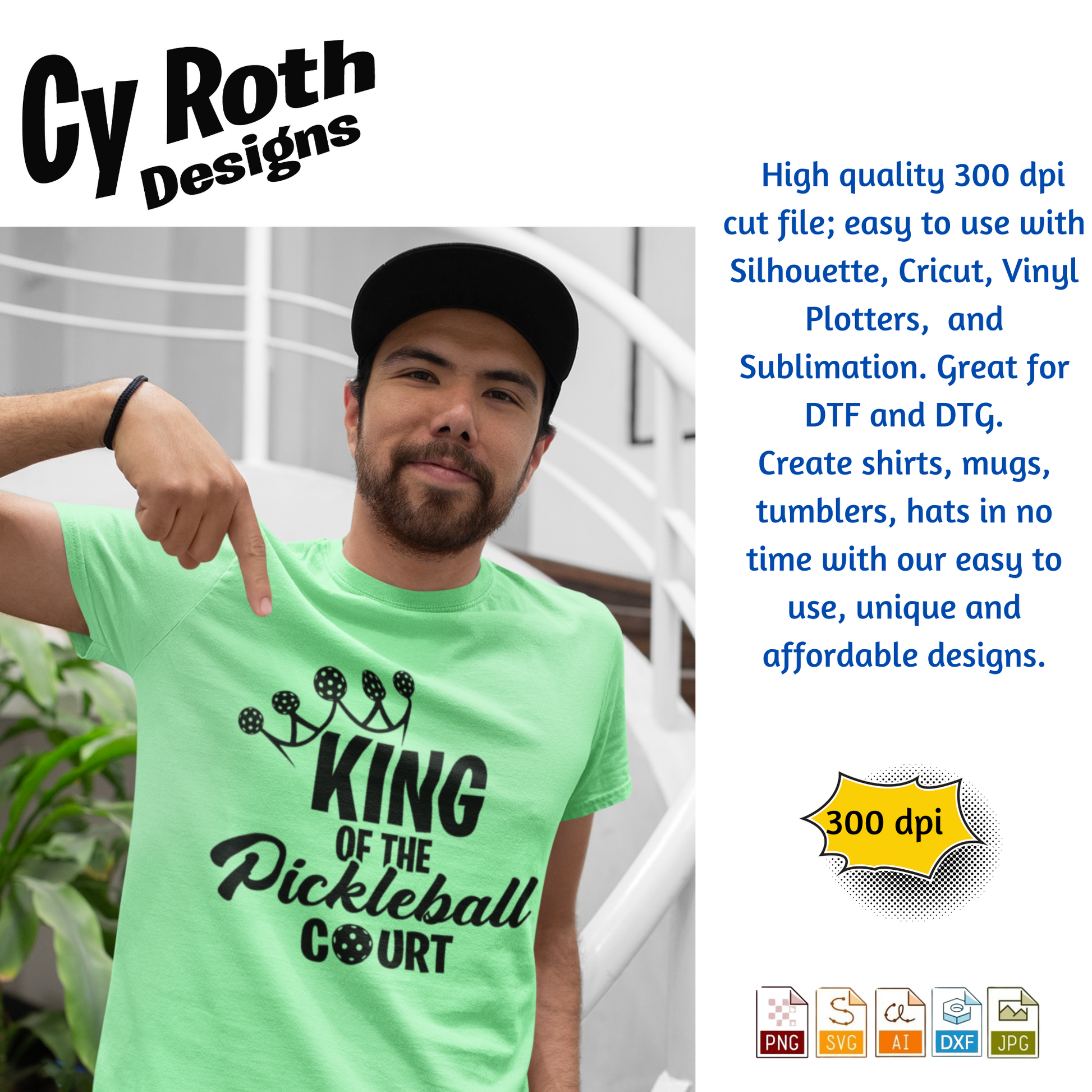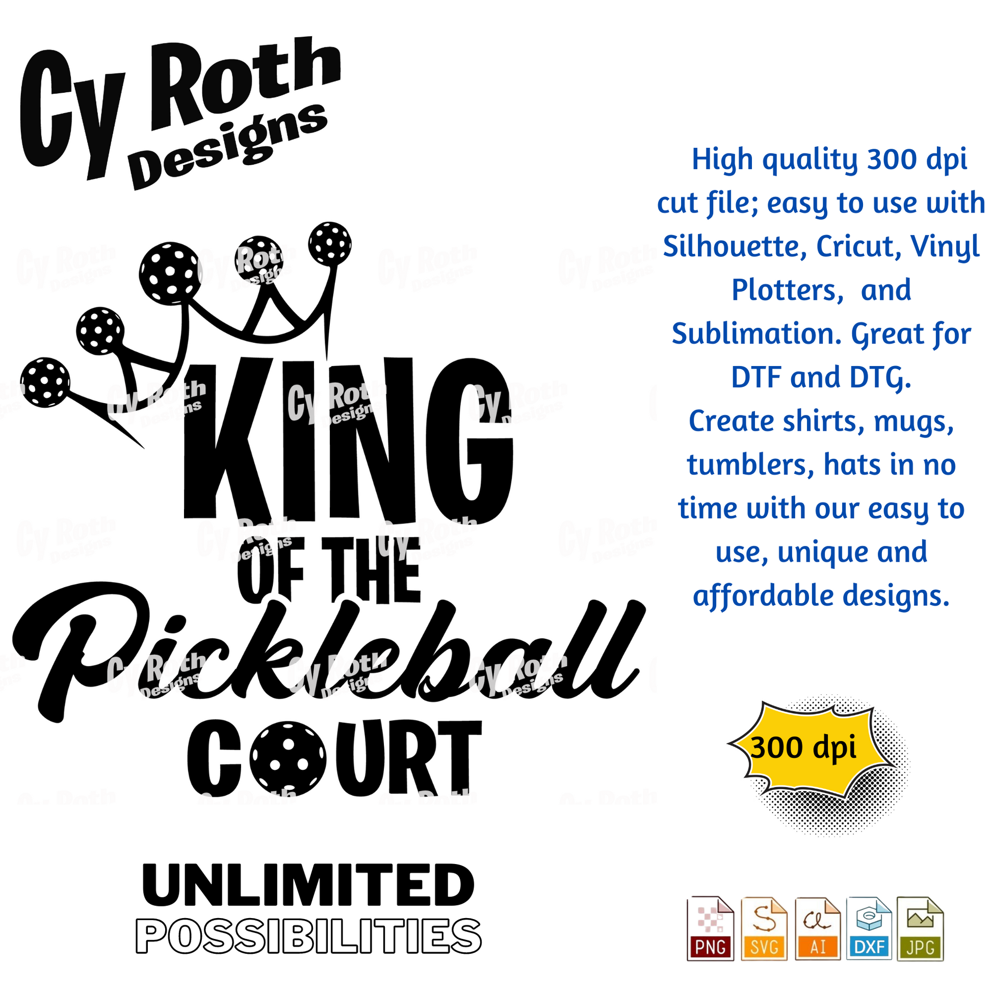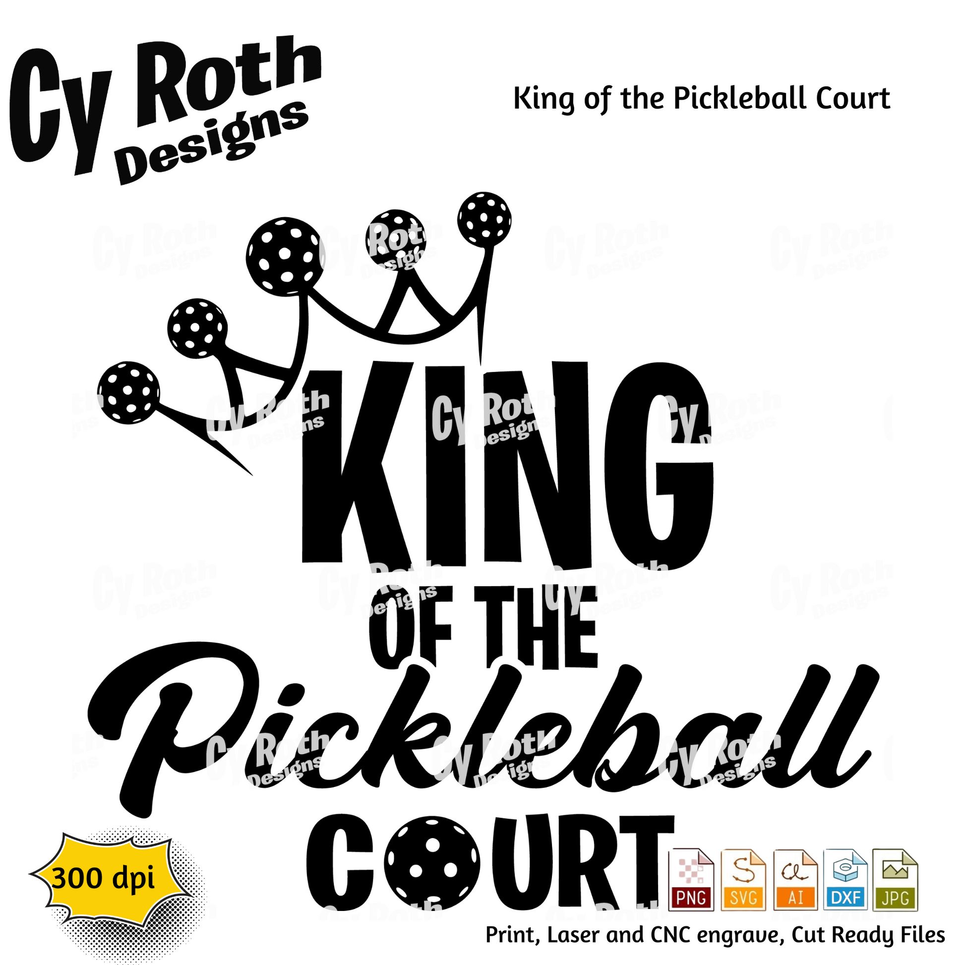 King of the pickleball court svg png jpg ai dxf file, for Silhouette, Cricut, Vinyl Plotters, Laser, CNC and Sublimation. Great for DTF and DTG.