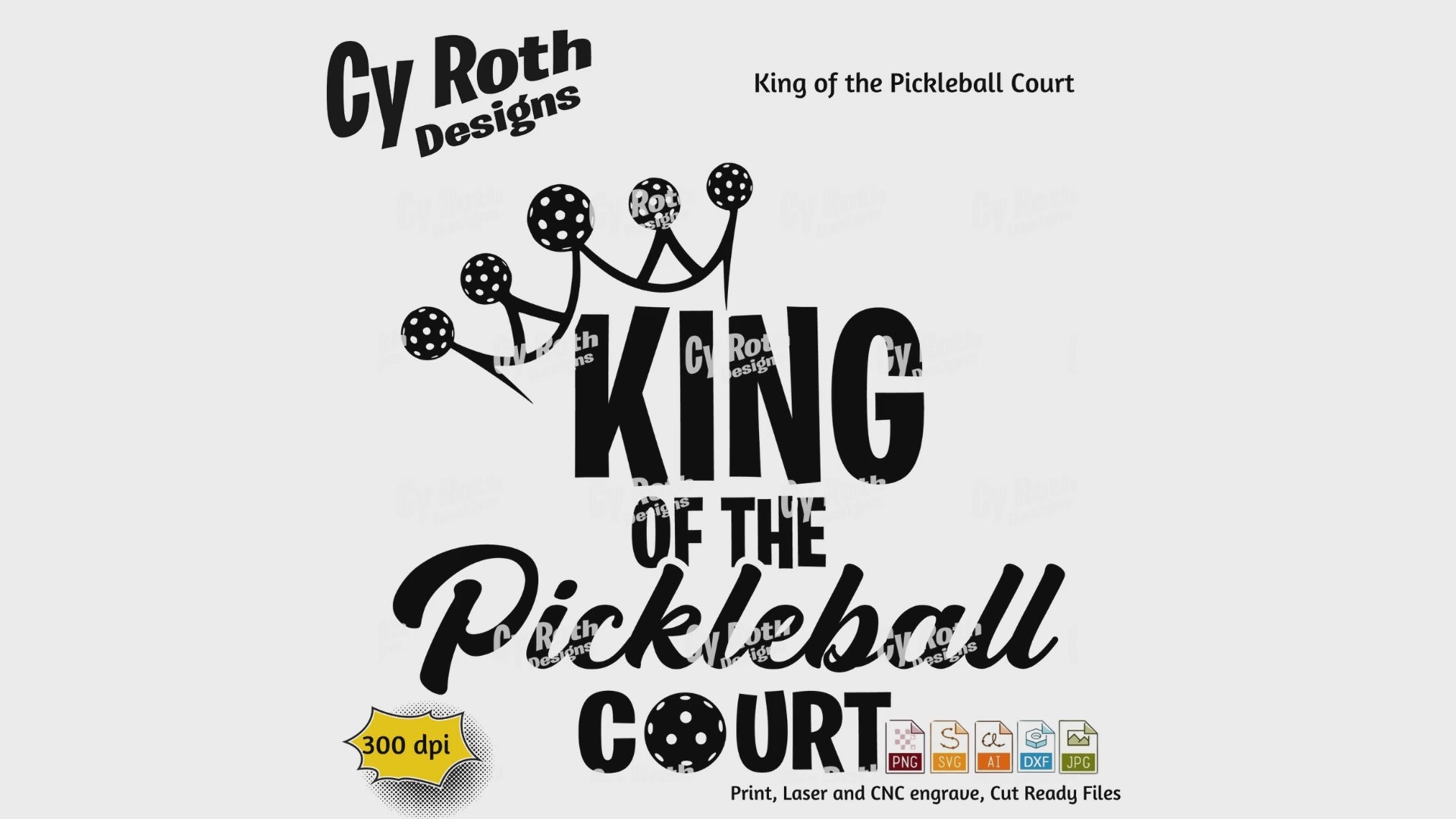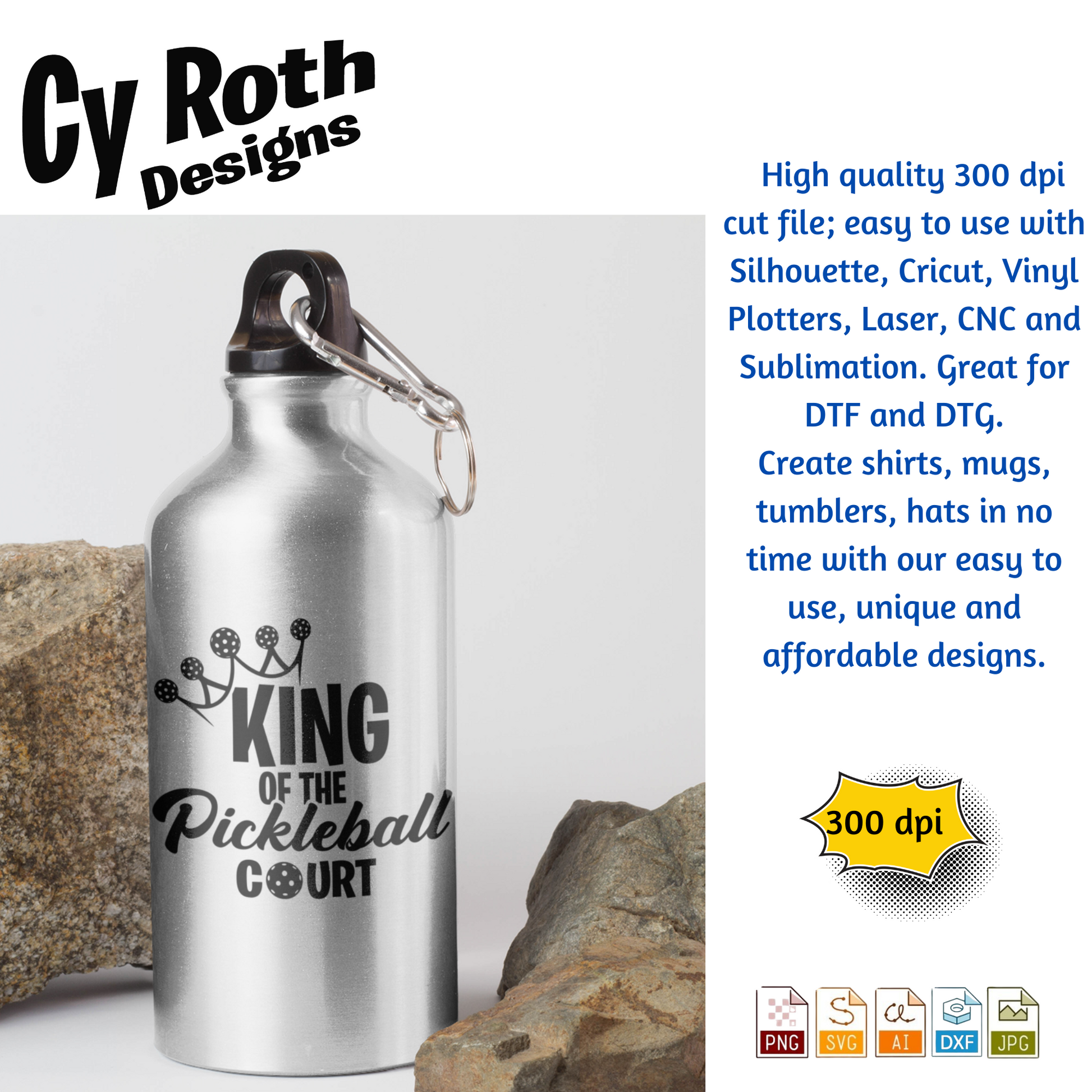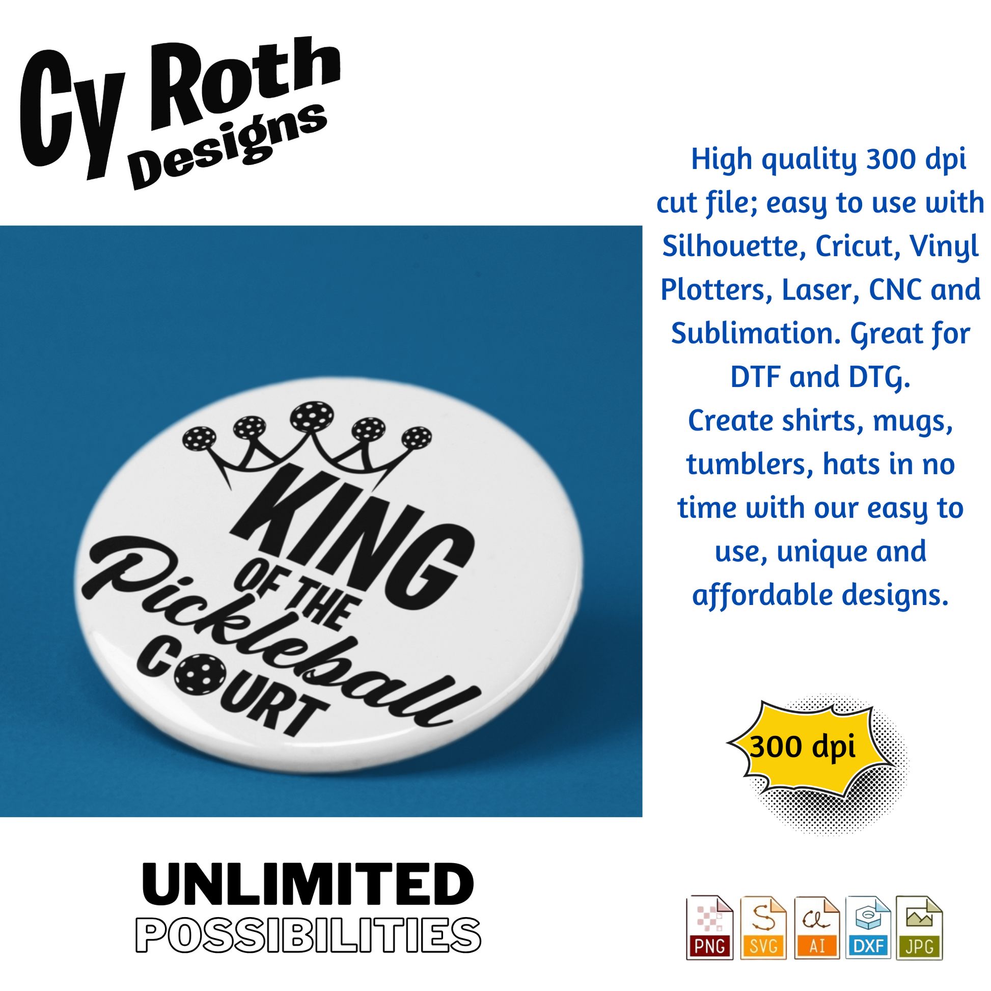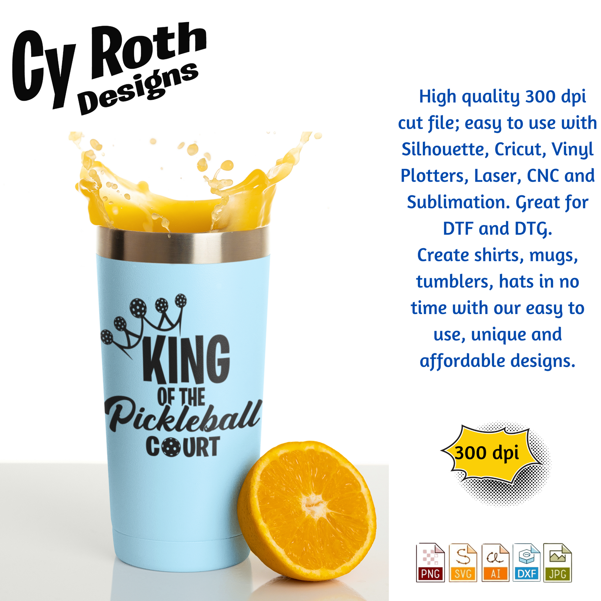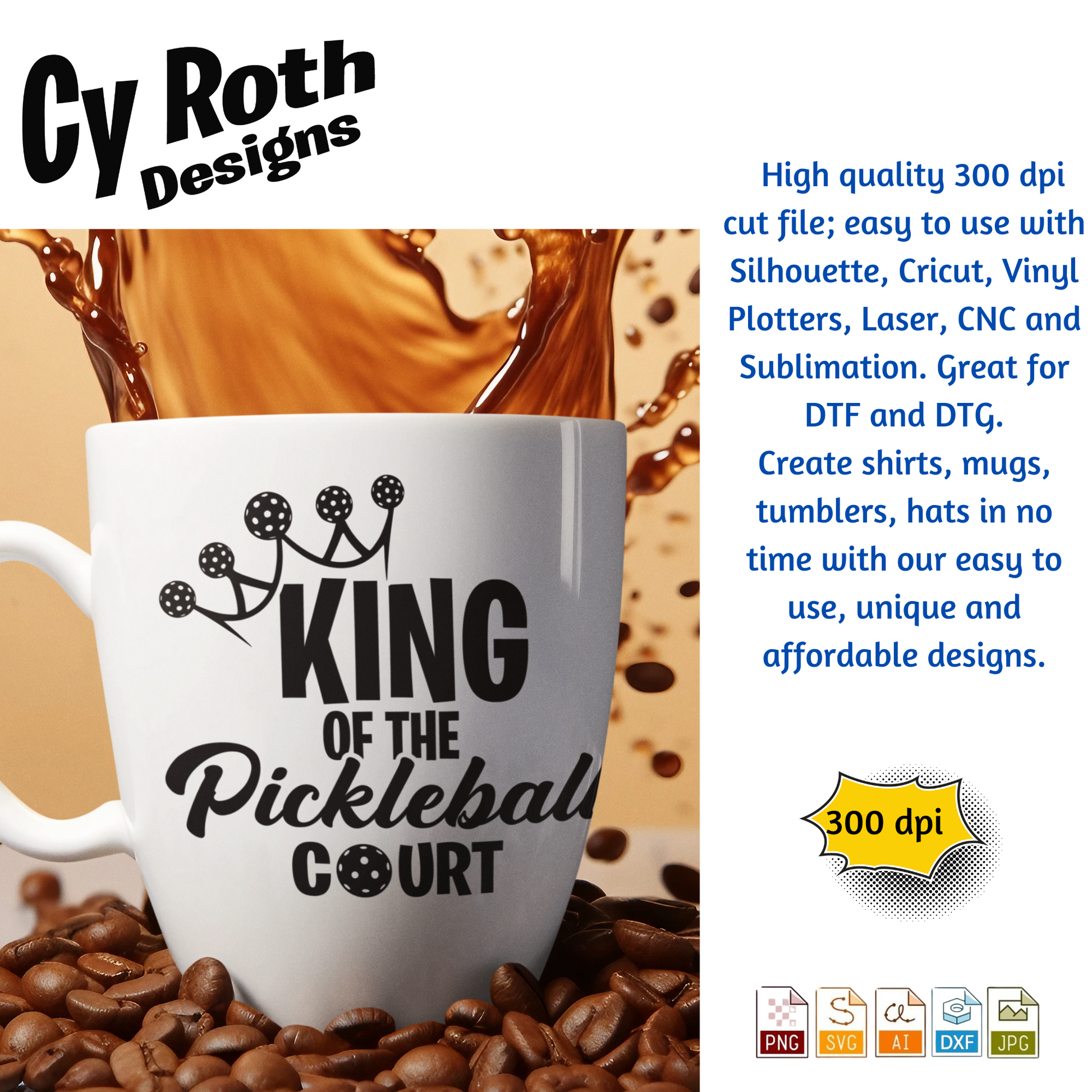 King of the pickleball court svg png jpg ai dxf file, for Silhouette, Cricut, Vinyl Plotters, Laser, CNC and Sublimation. Great for DTF and DTG.