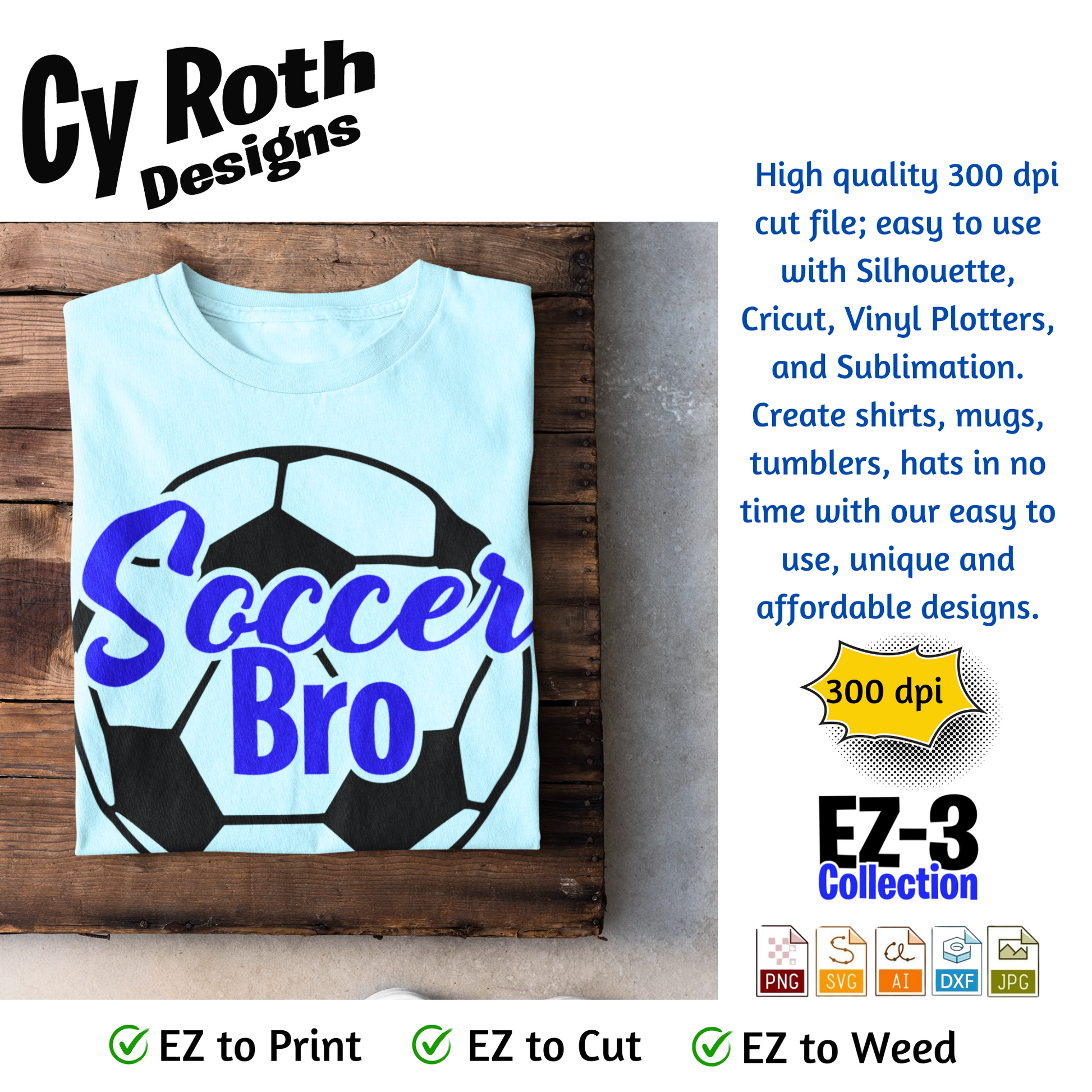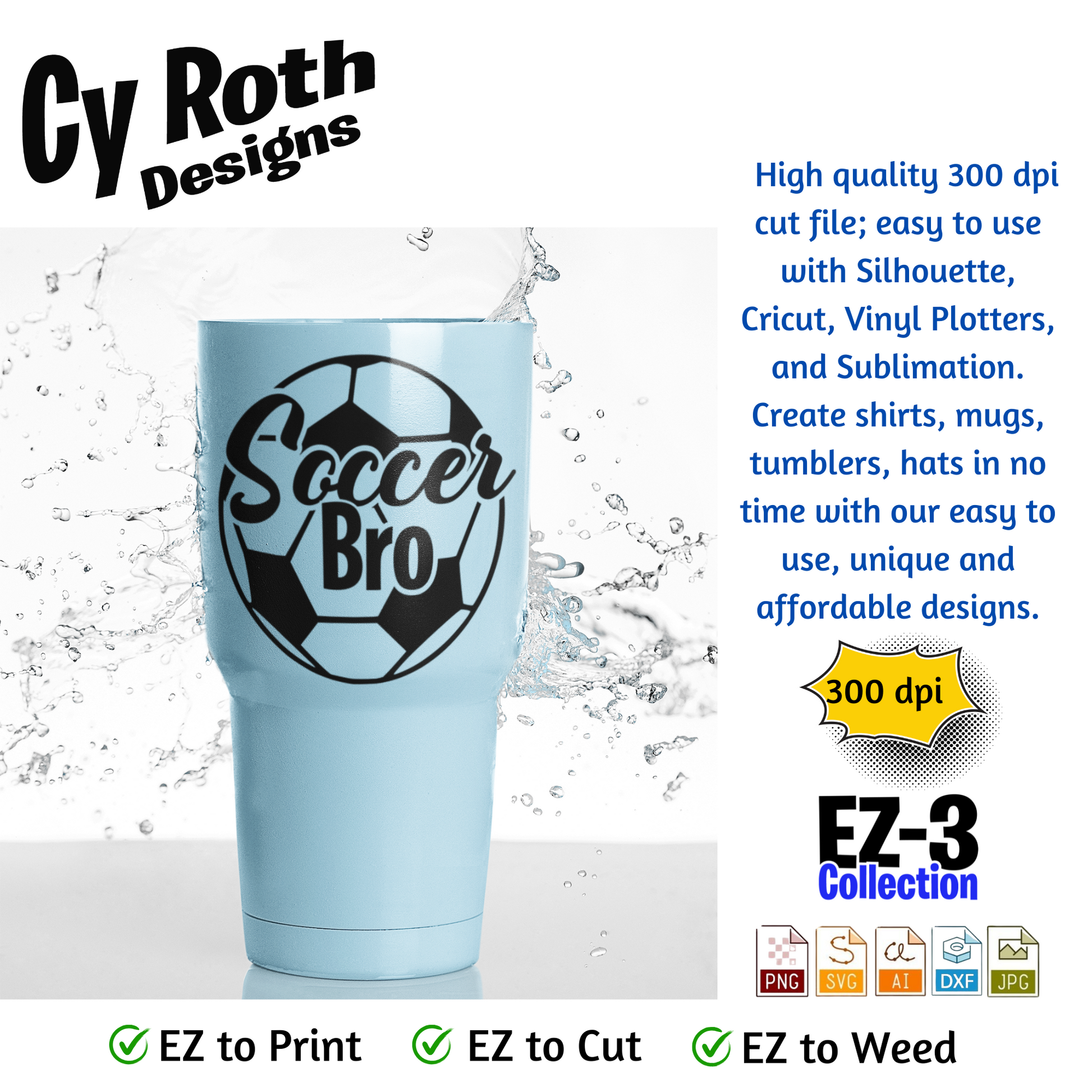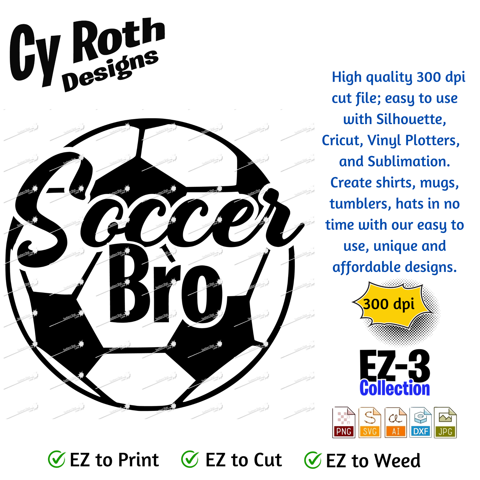 Soccer svg png jpg ai dxf file, for Silhouette, Cricut, Vinyl Plotters, Laser, CNC and Sublimation. Great for DTF and DTG. Soccer Bro