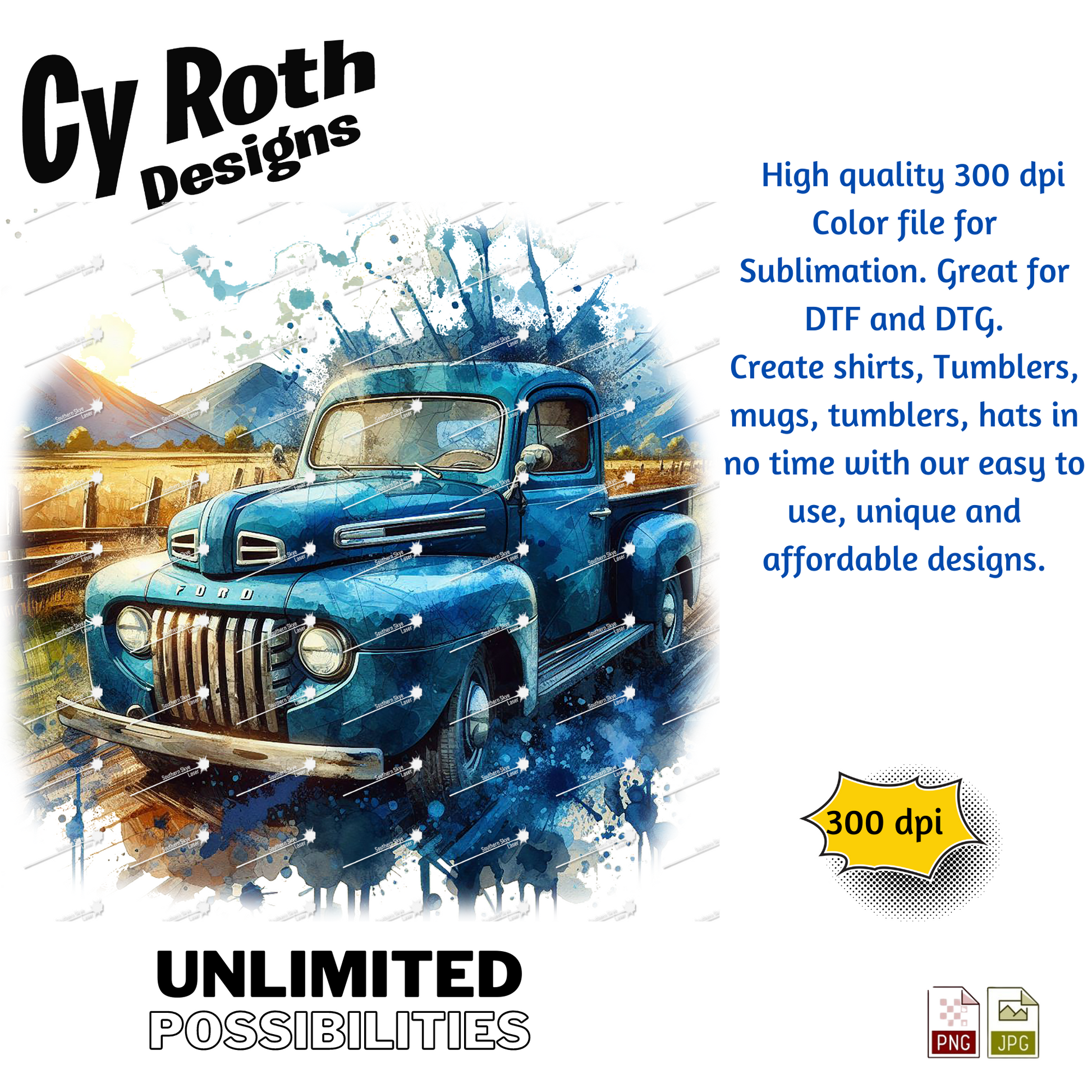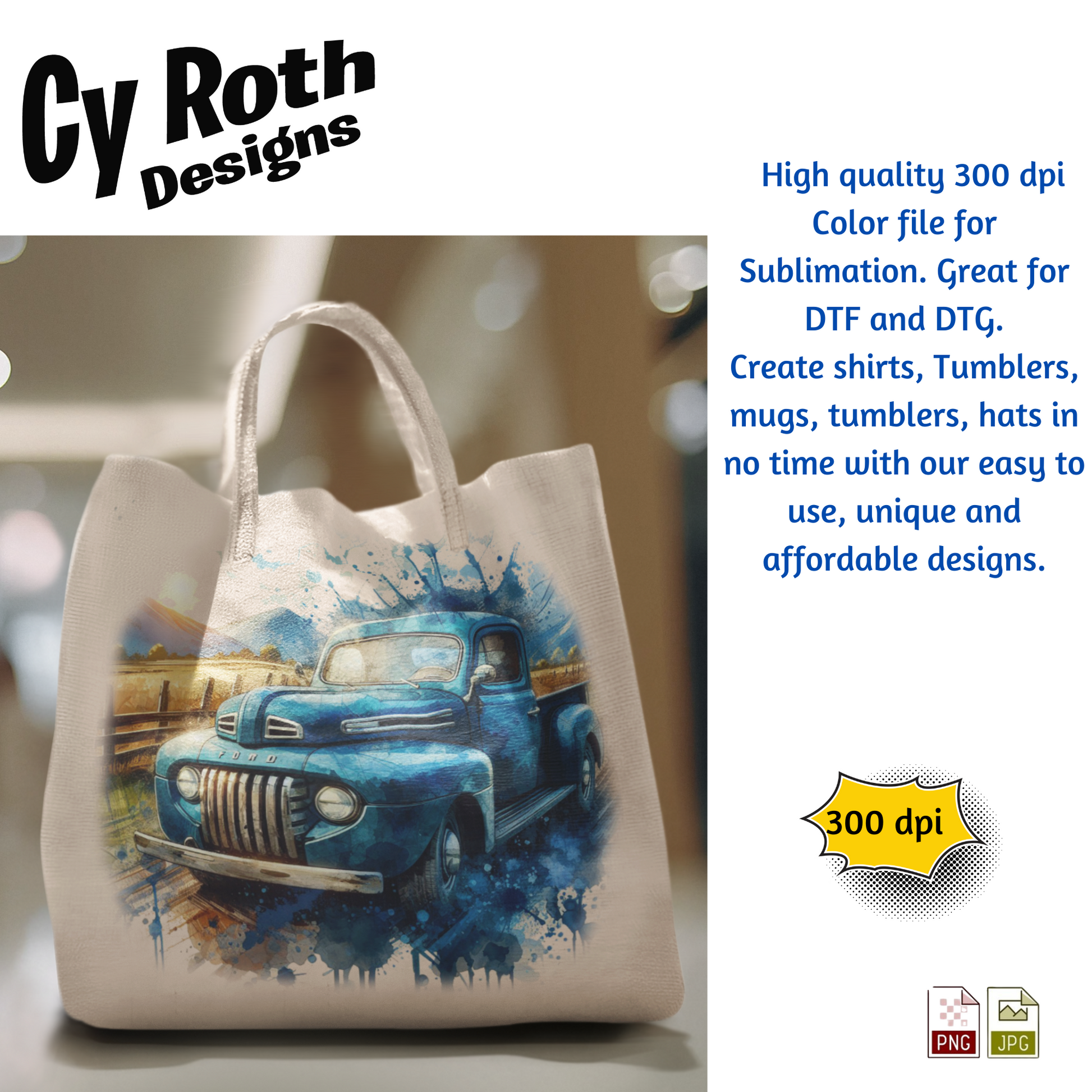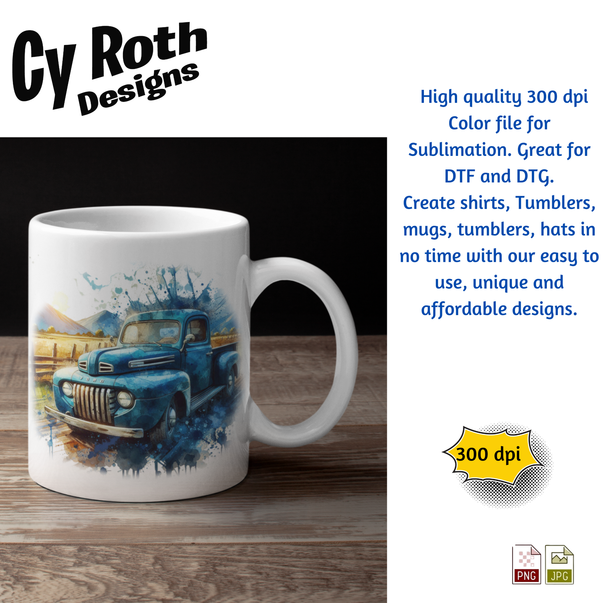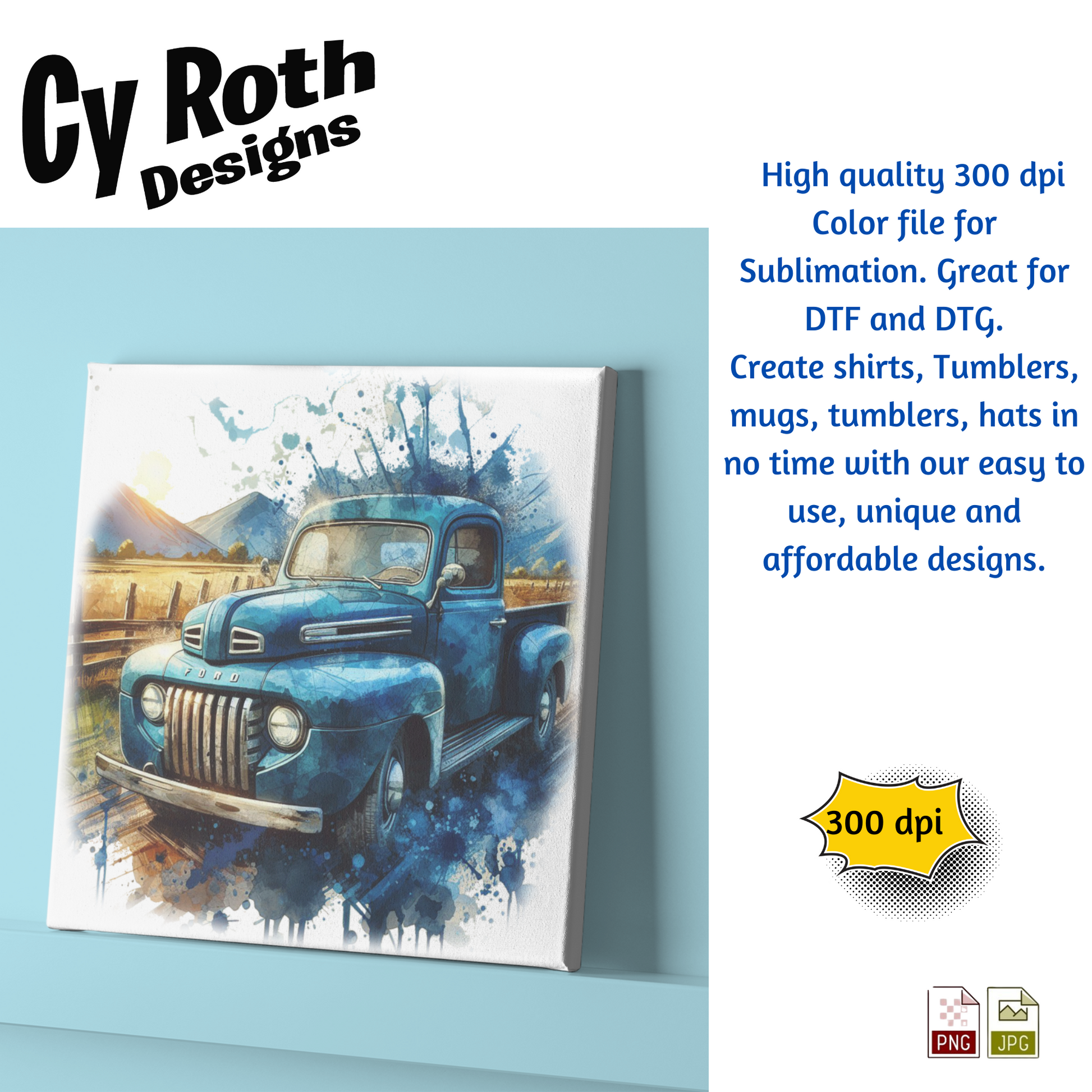 1948 Ford Pick-up Truck sublimation file to make tumblers, t-Shirts, Printable Wall Art, Sweatshirts. Great to make personalized gifts. Popular junk journal image also.