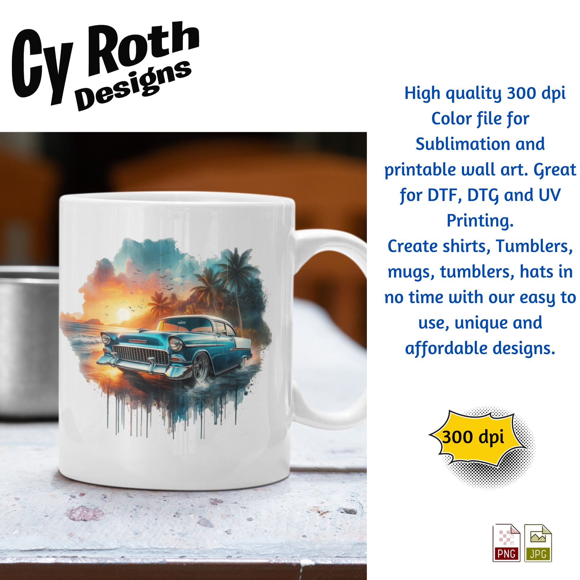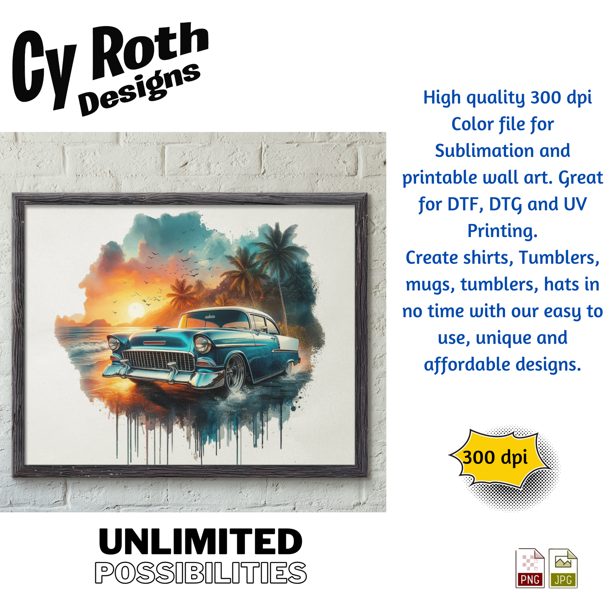 1955 Chevy Bel Air sublimation file to make tumblers, t-Shirts, Printable Wall Art, Sweatshirts. Great to make personalized gifts. Popular junk journal image also.