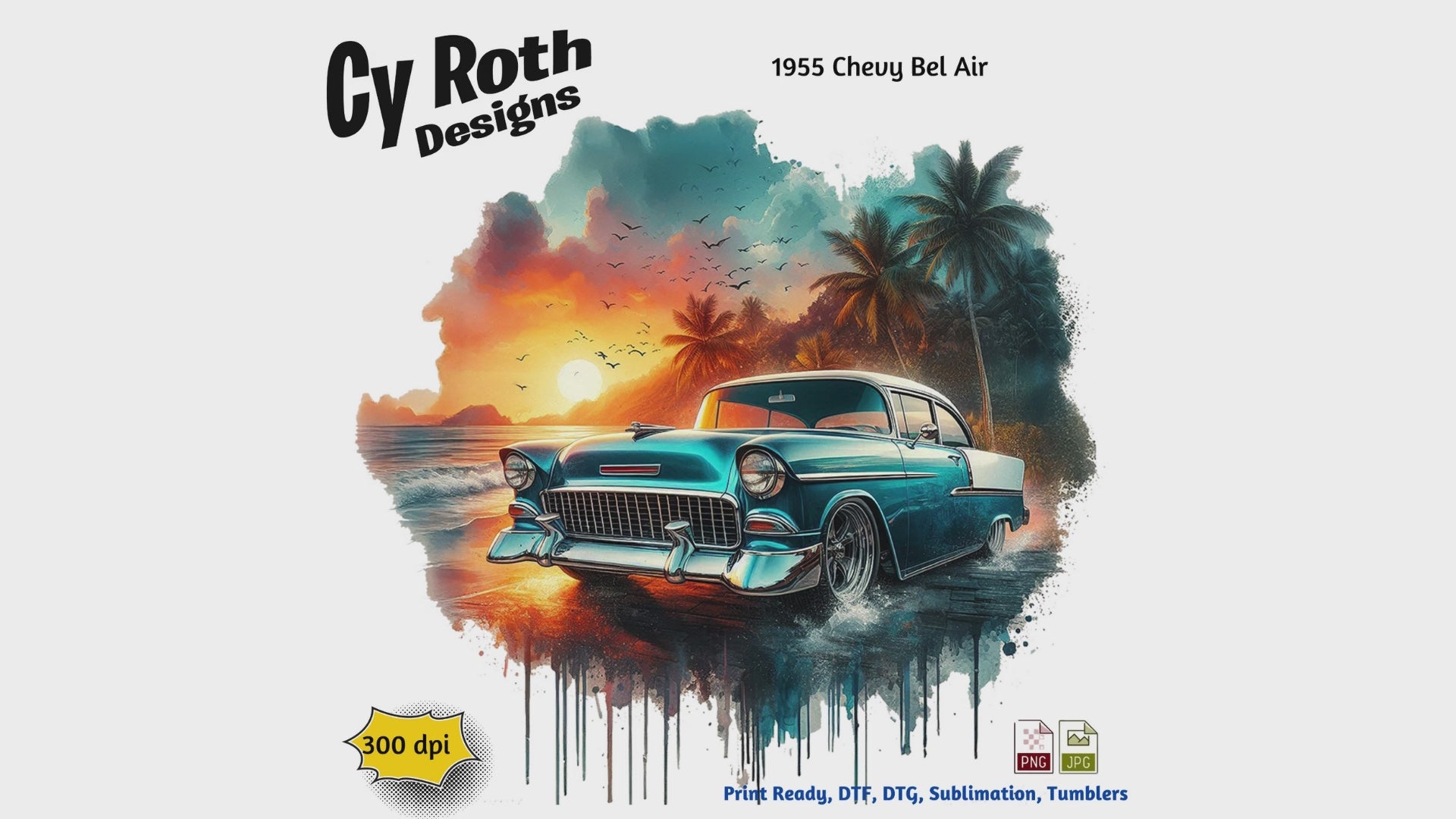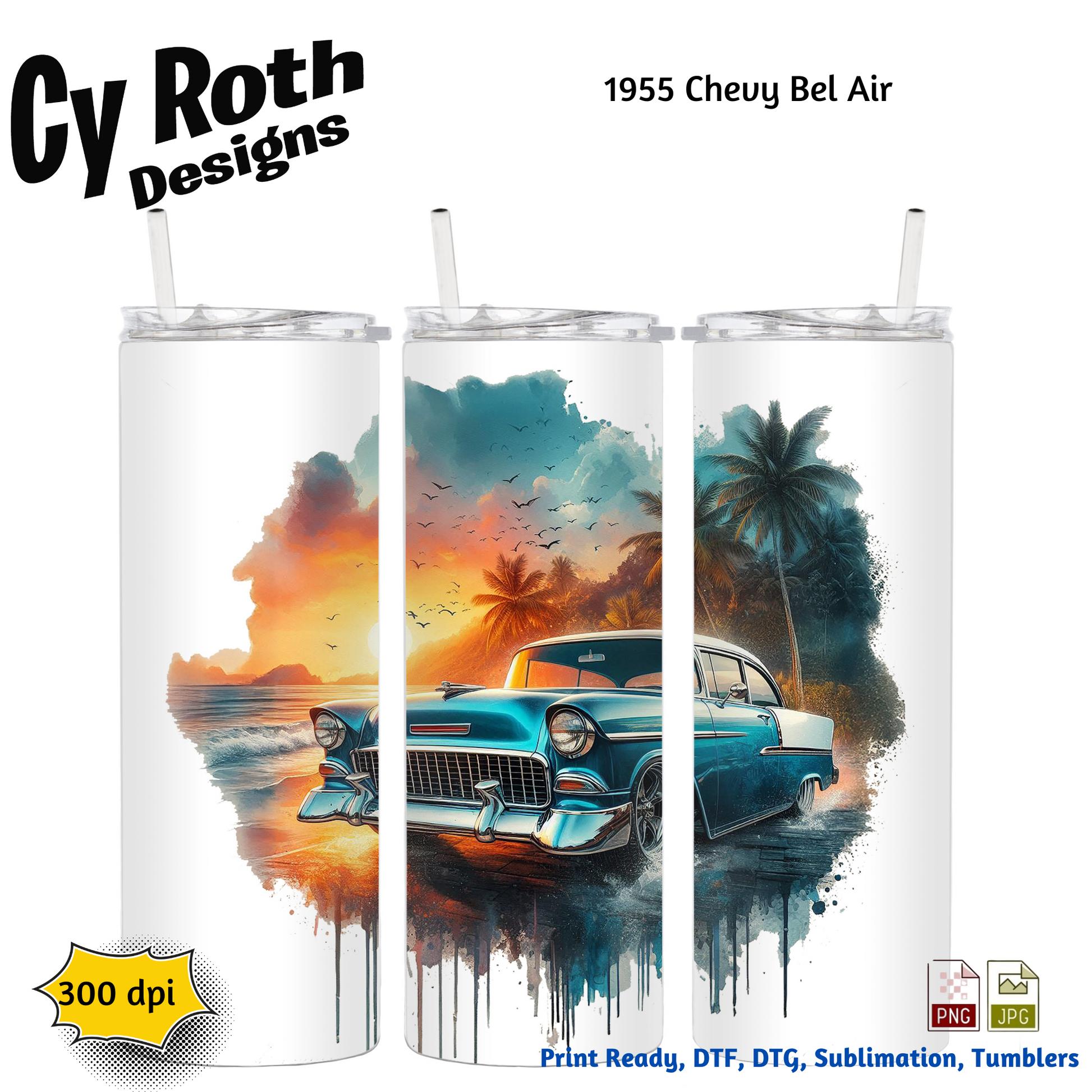 1955 Chevy Bel Air Sublimation Wall Art 20oz skinny Tumbler PNG JPG file, shirt PNG, Junk Journal image