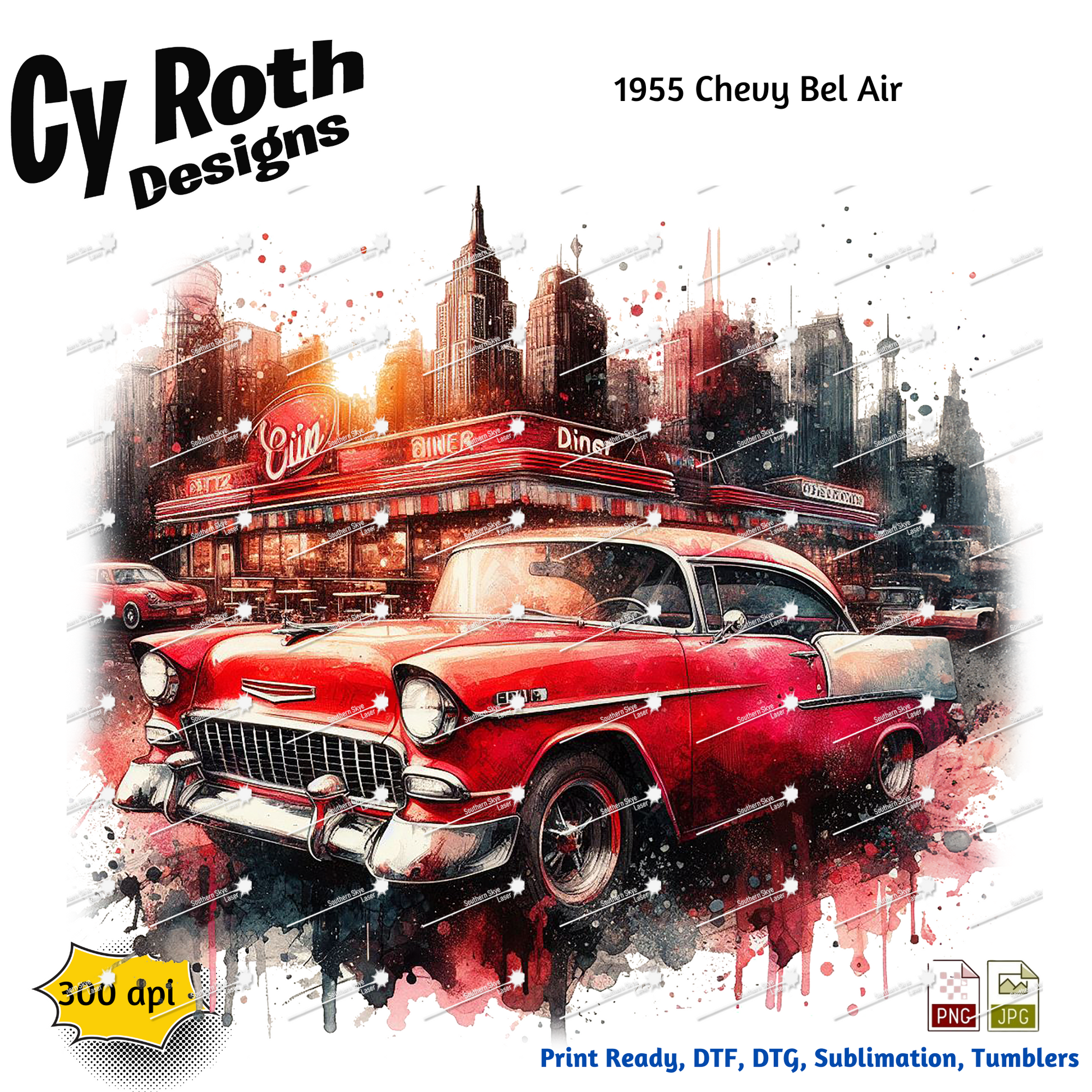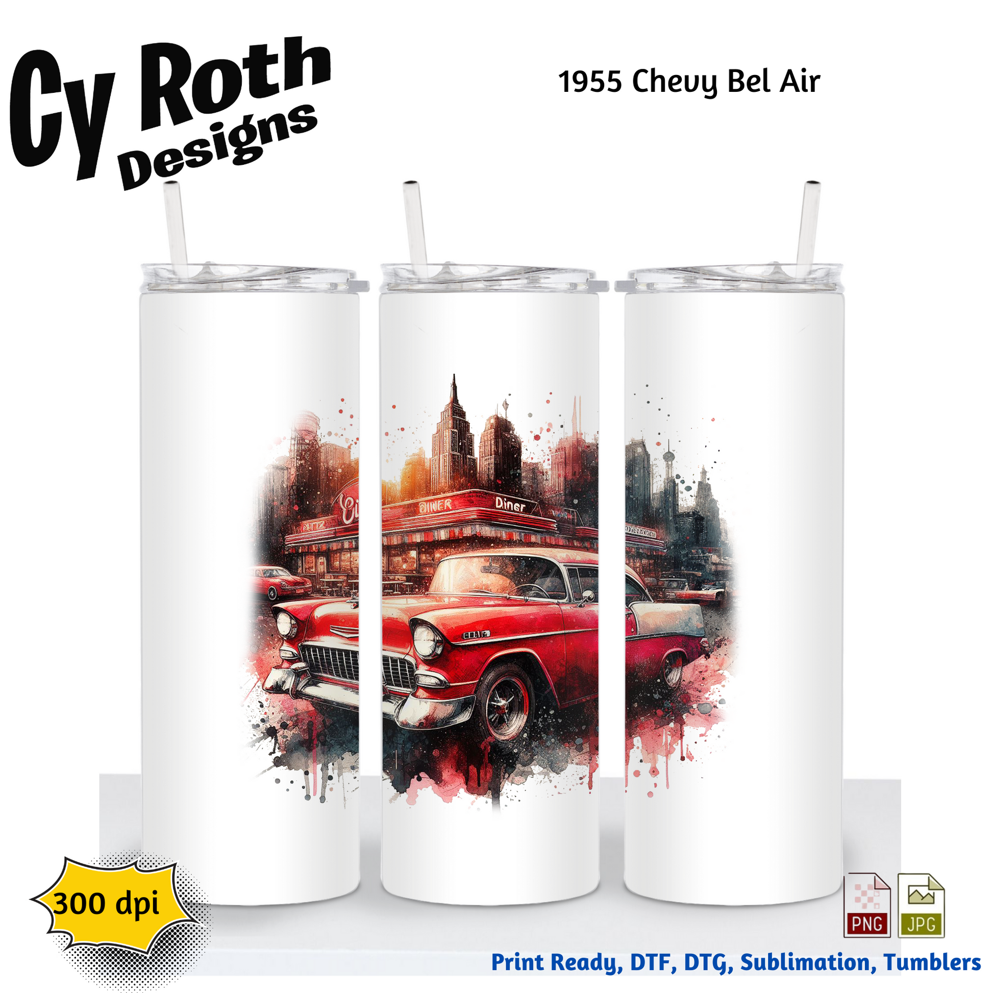 1955 Chevy Bel Air Sublimation PNG JPG file, Wall Art 20oz skinny Tumbler, shirt PNG, Junk Journal image