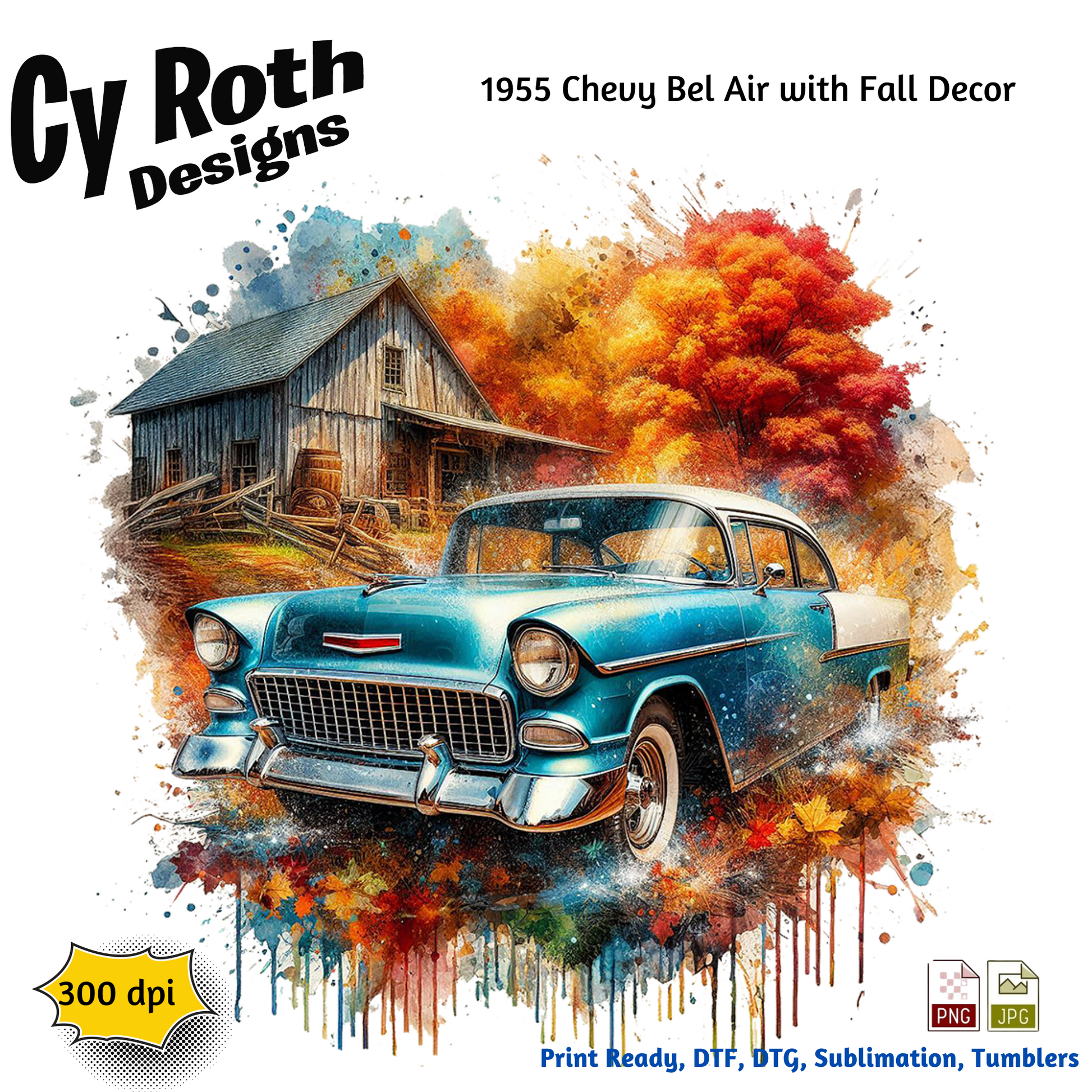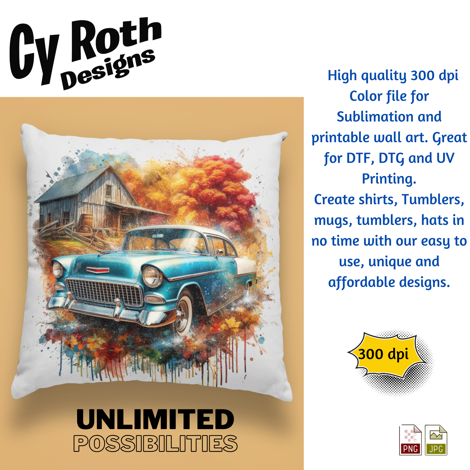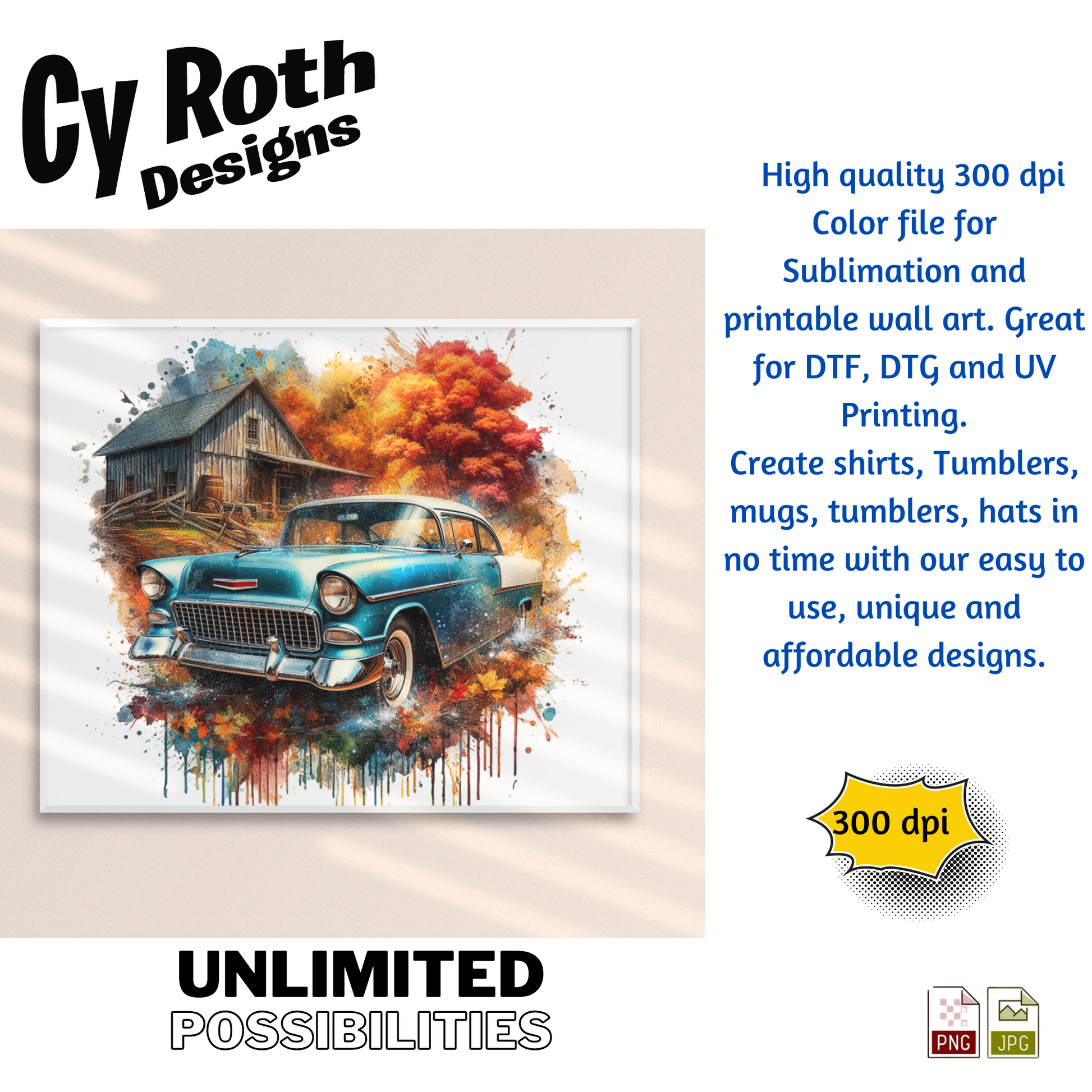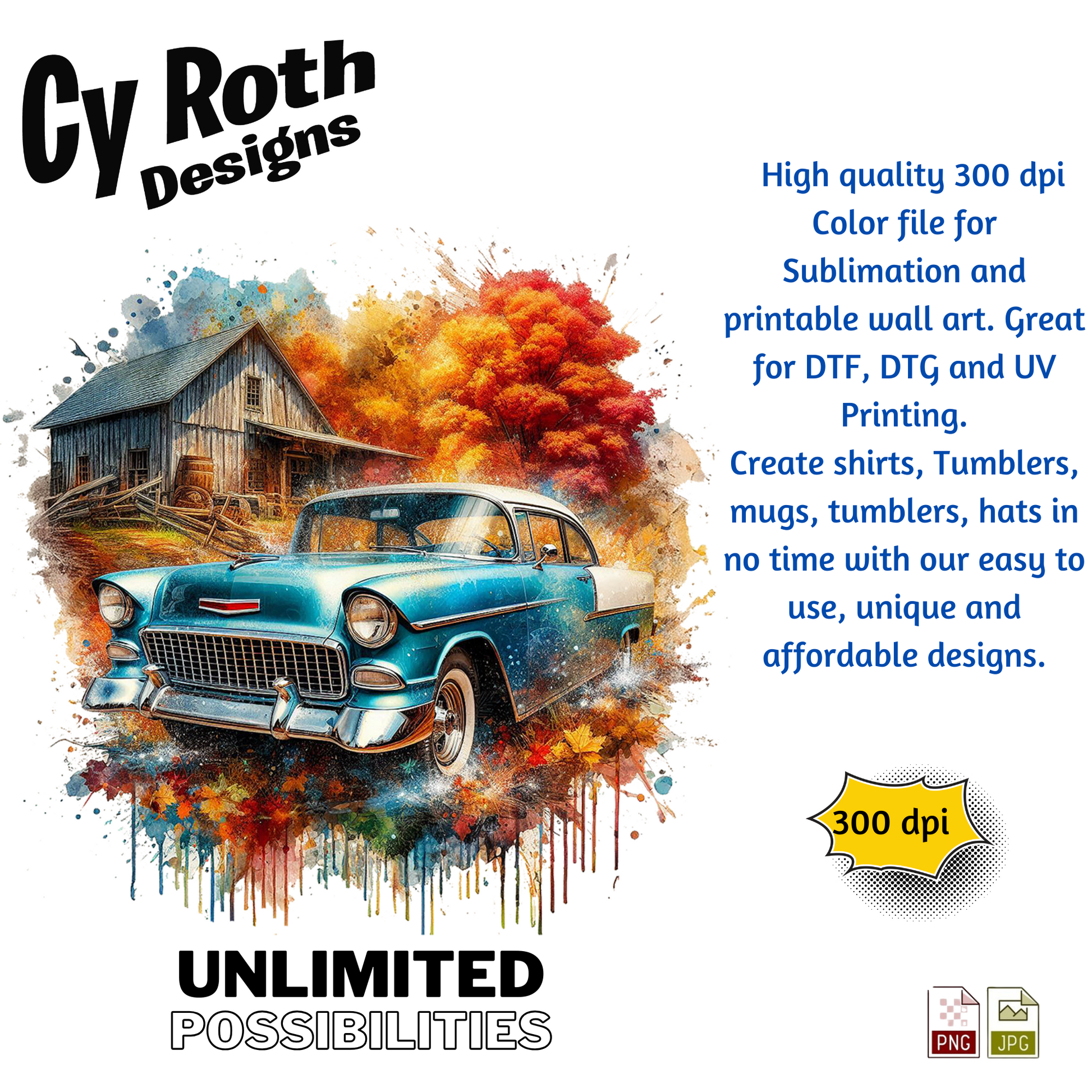 1955 Chevy Bel Air sublimation file to make tumblers, t-Shirts, Printable Wall Art, Sweatshirts. Great to make personalized gifts. Popular junk journal image also.