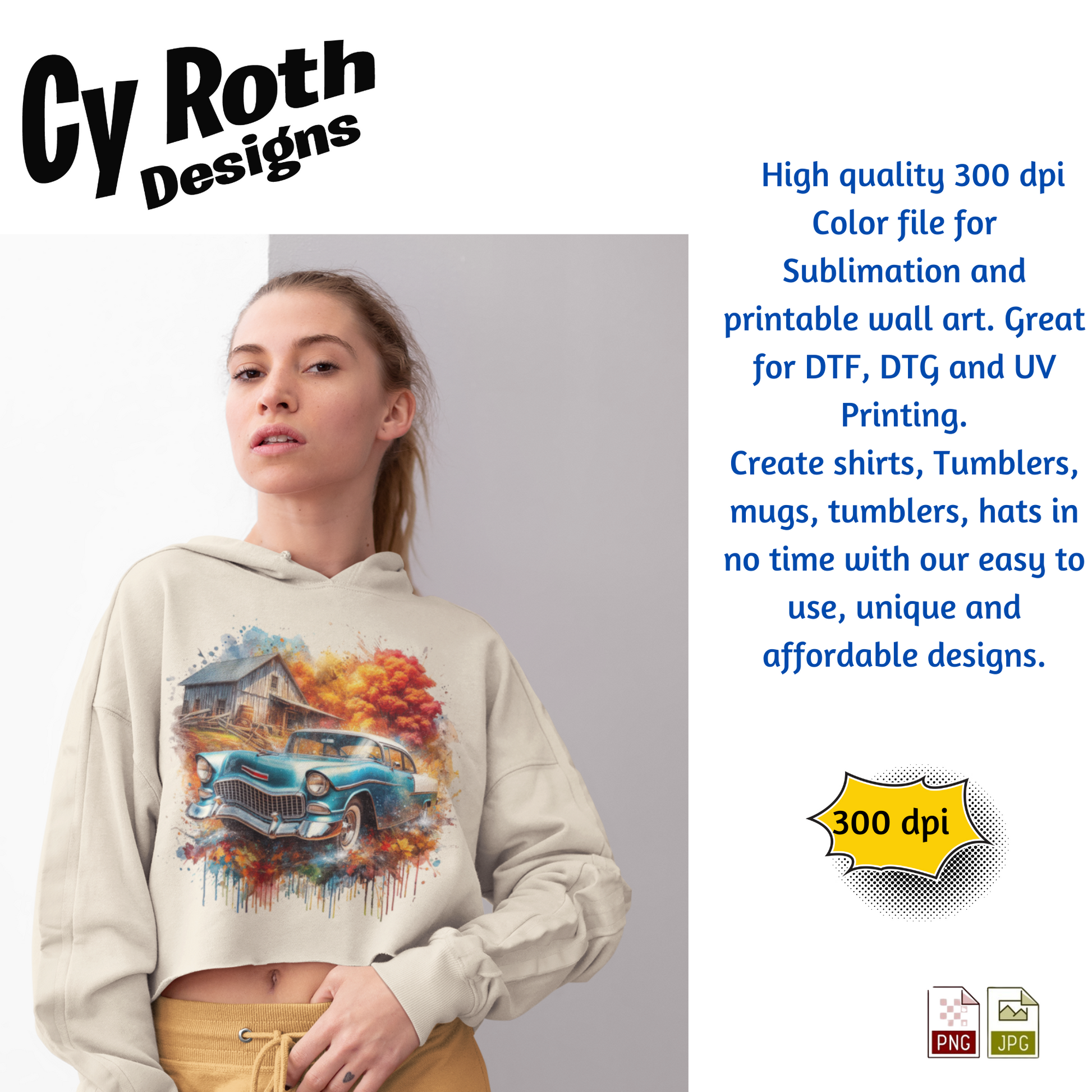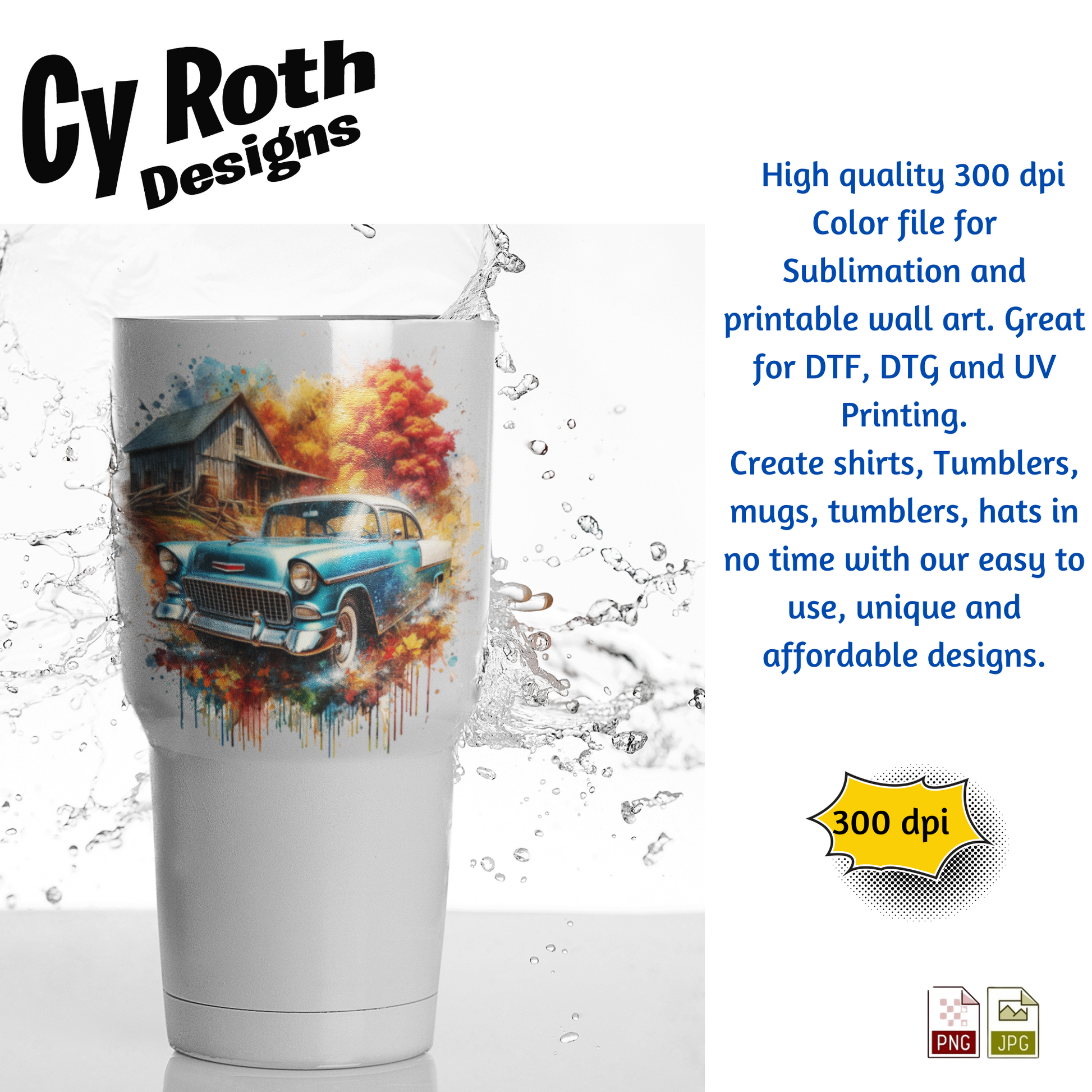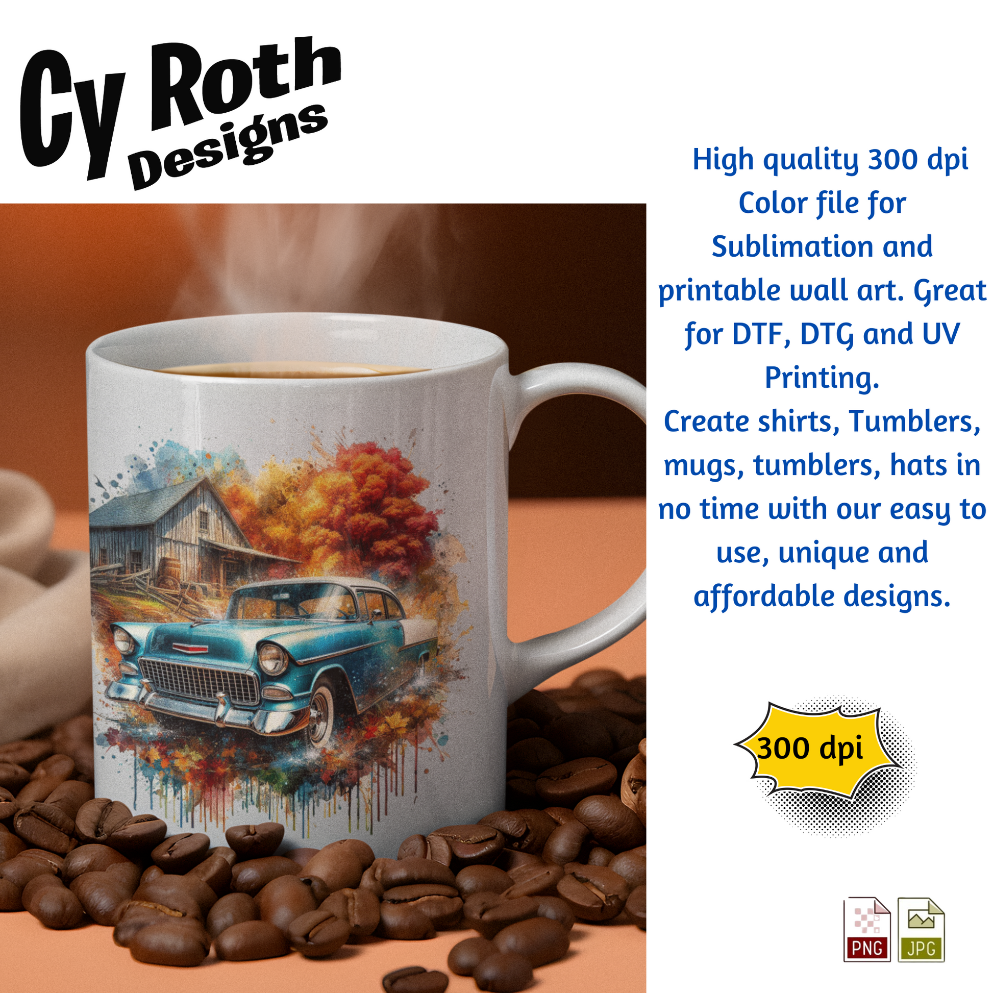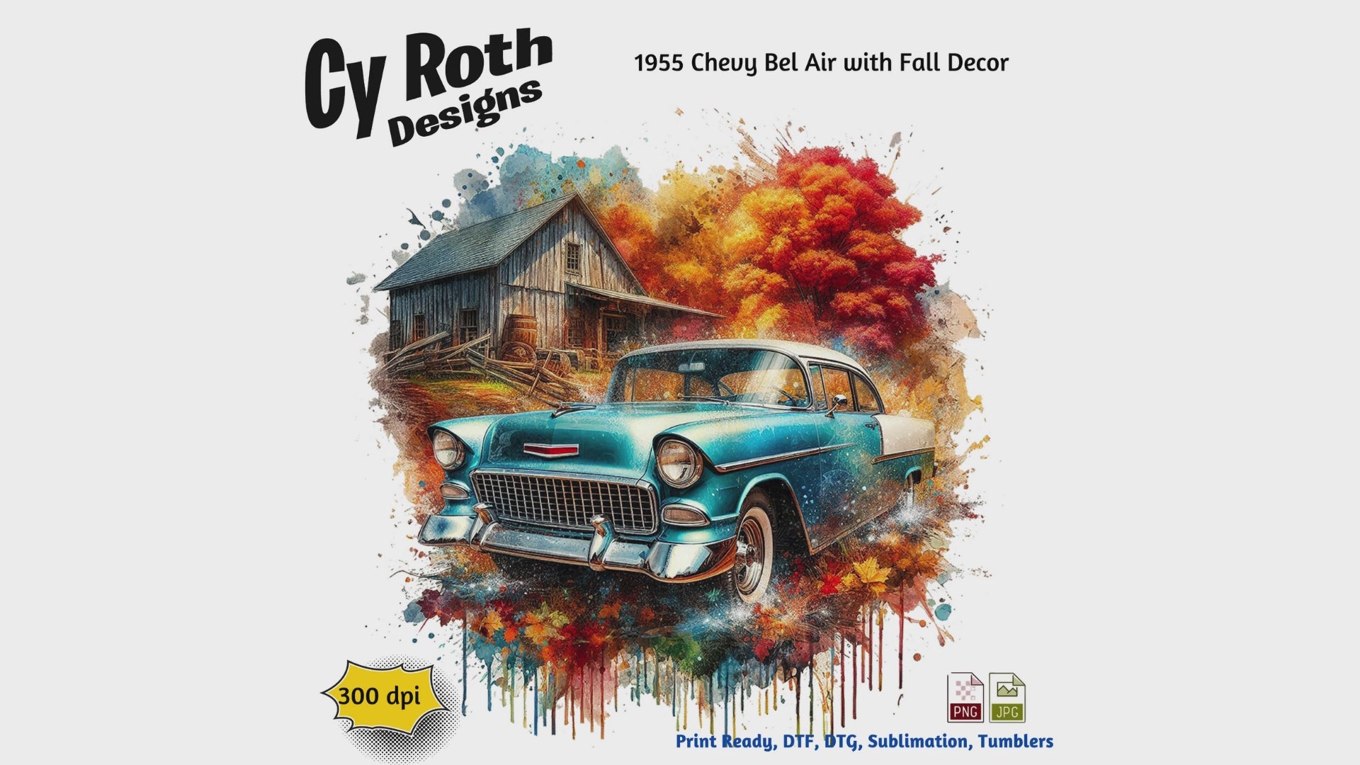 1955 Chevy Bel Air sublimation file to make tumblers, t-Shirts, Printable Wall Art, Sweatshirts. Great to make personalized gifts. Popular junk journal image also.