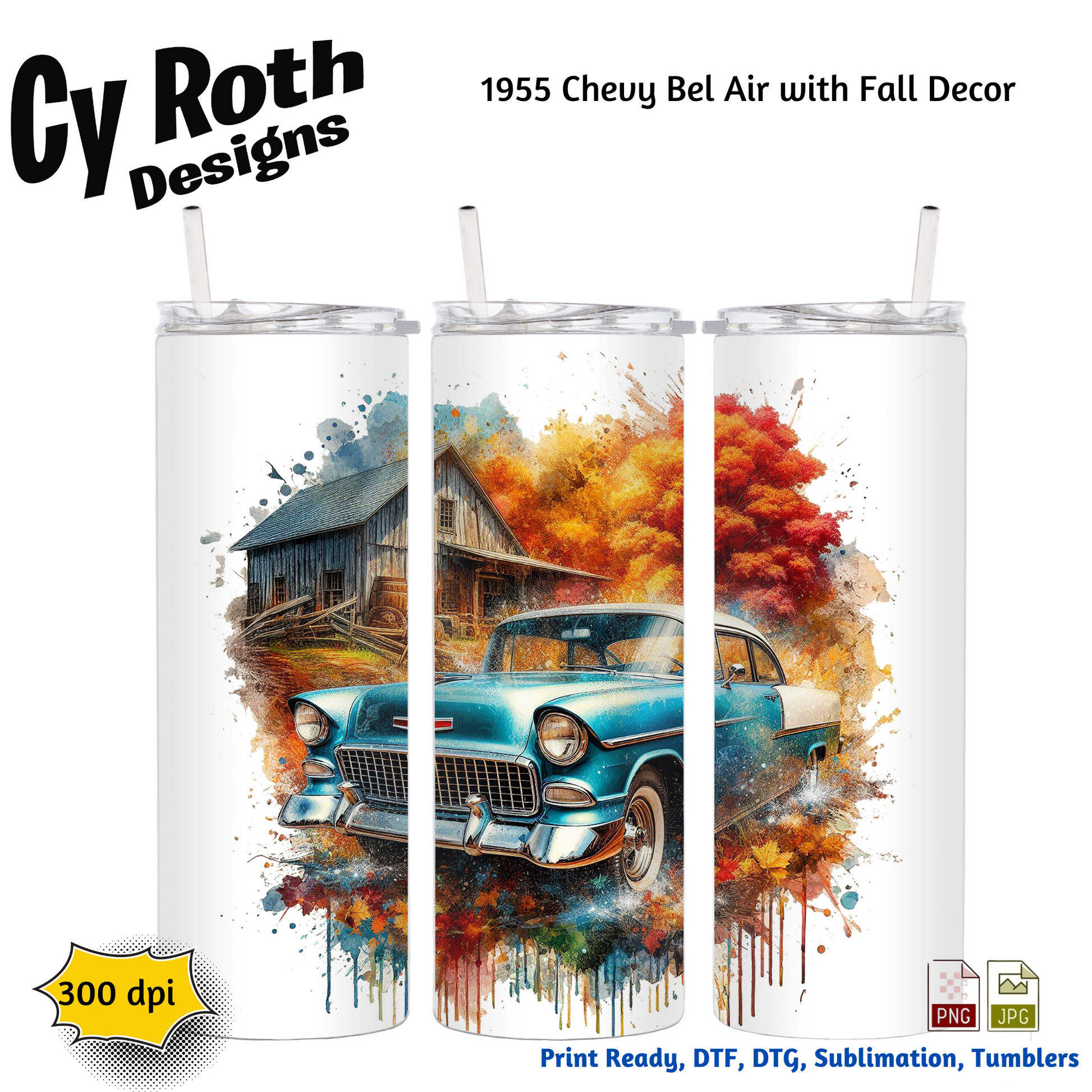 1955 Chevy Bel Air Sublimation Wall Art 20oz skinny Tumbler PNG JPG file, shirt PNG, Junk Journal image