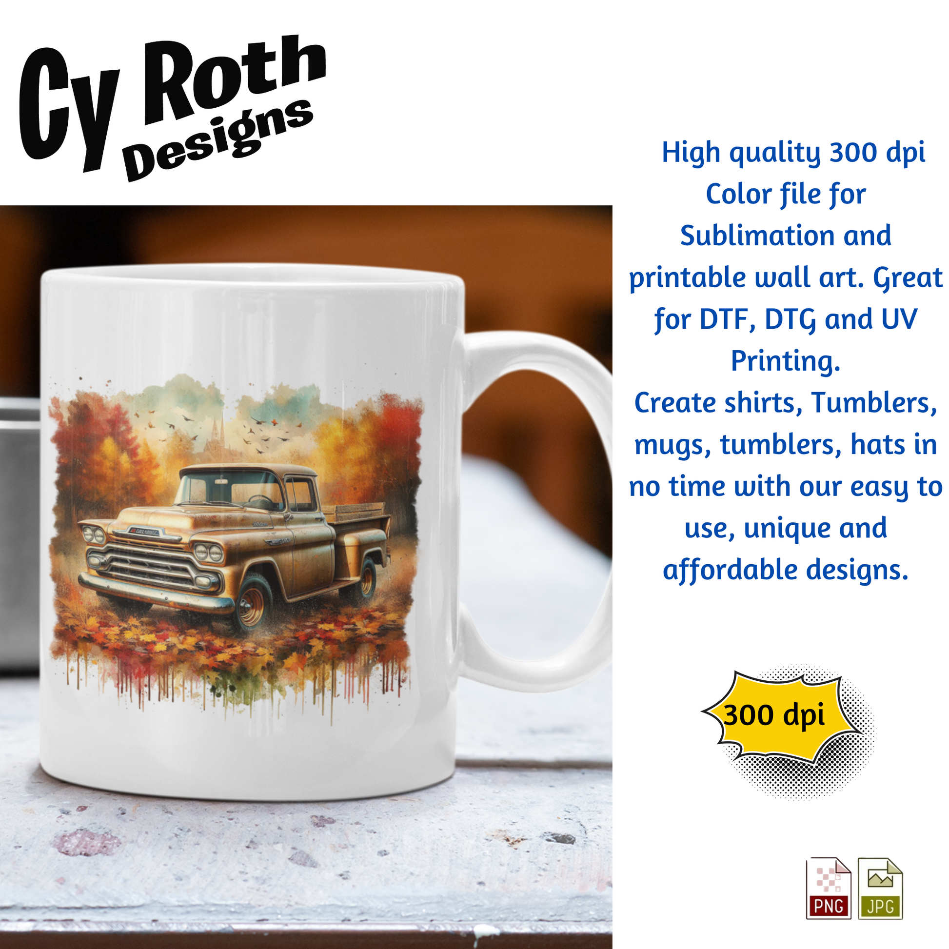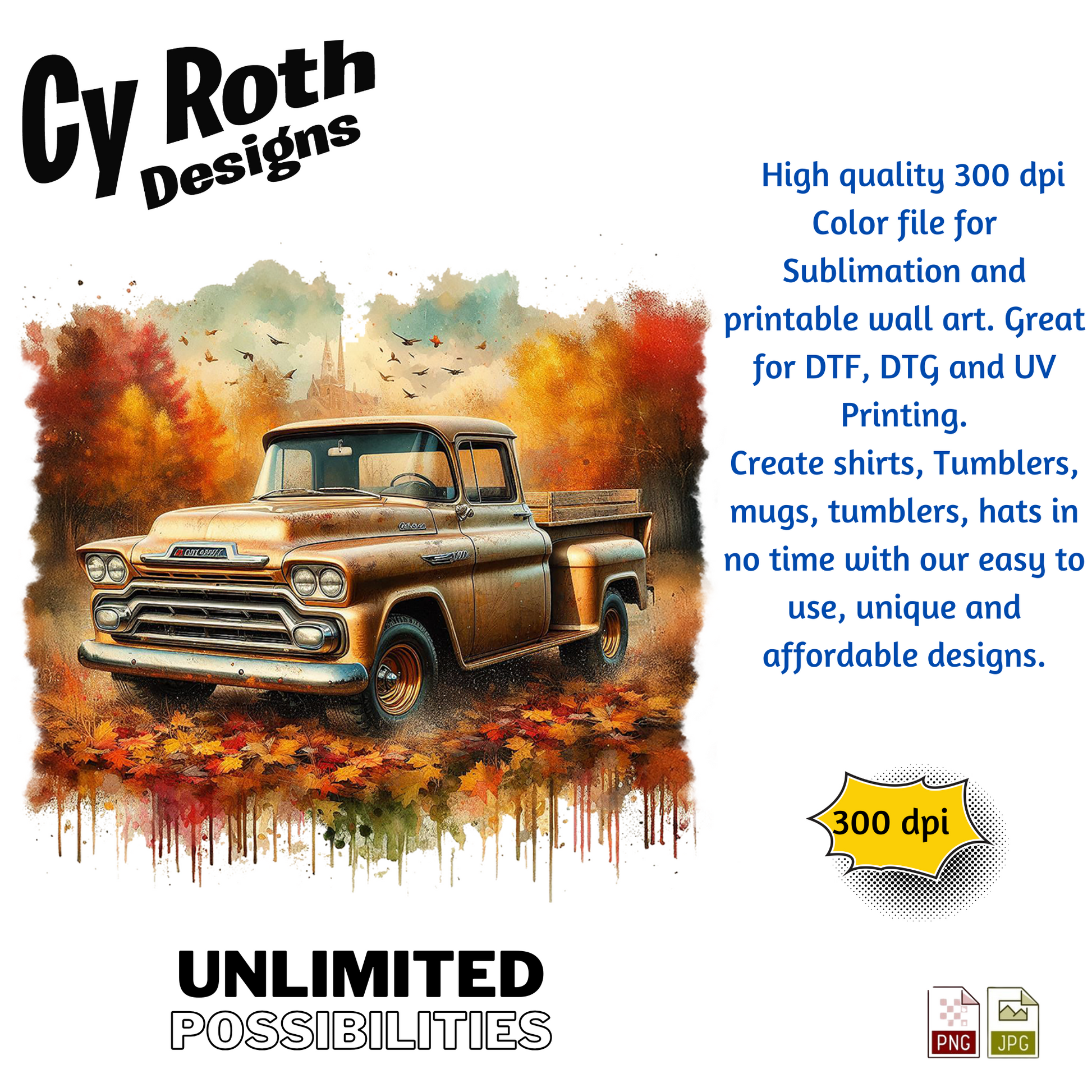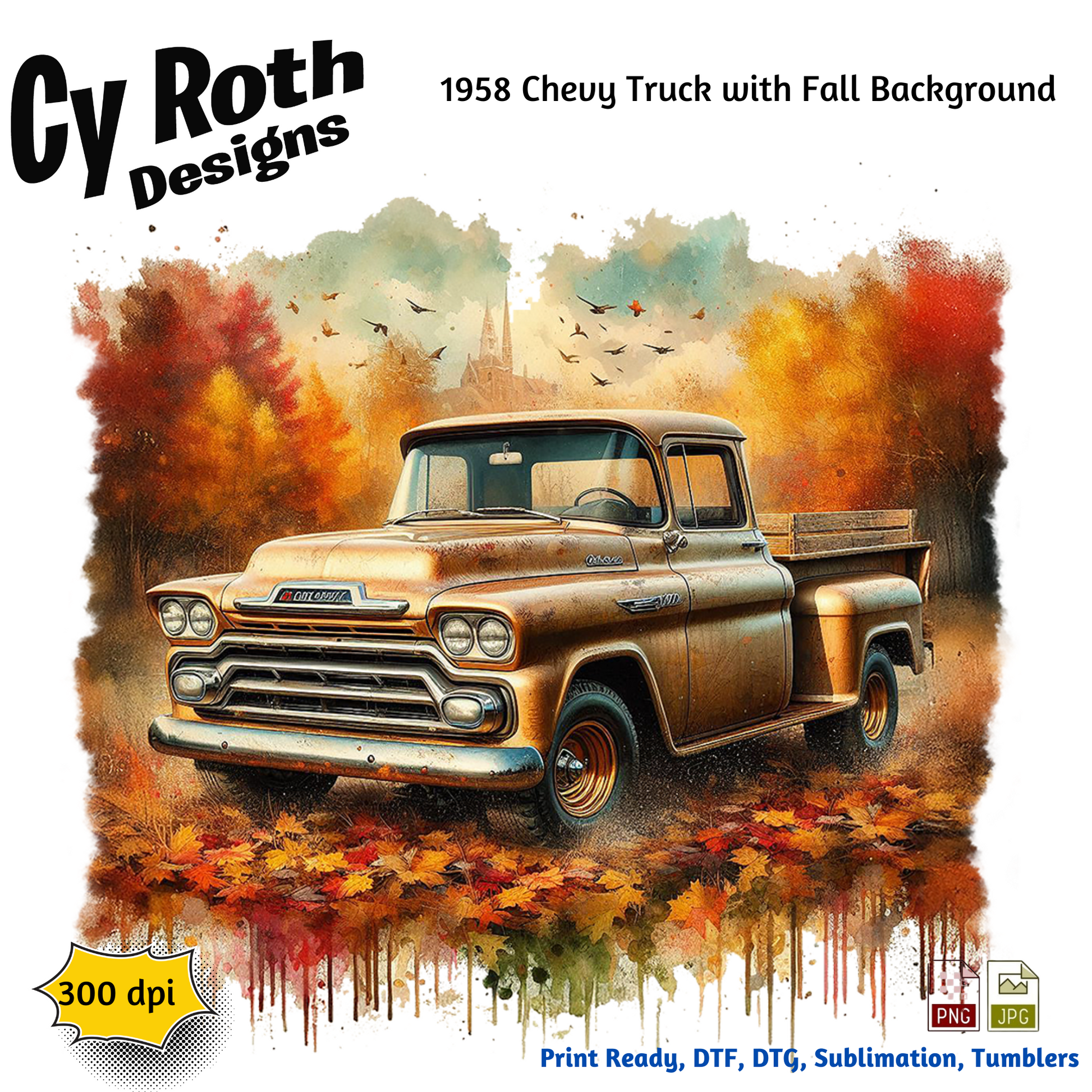 1958 Chevy Truck sublimation file to make tumblers, t-Shirts, Printable Wall Art, Sweatshirts. Great to make personalized gifts. Popular junk journal image also.