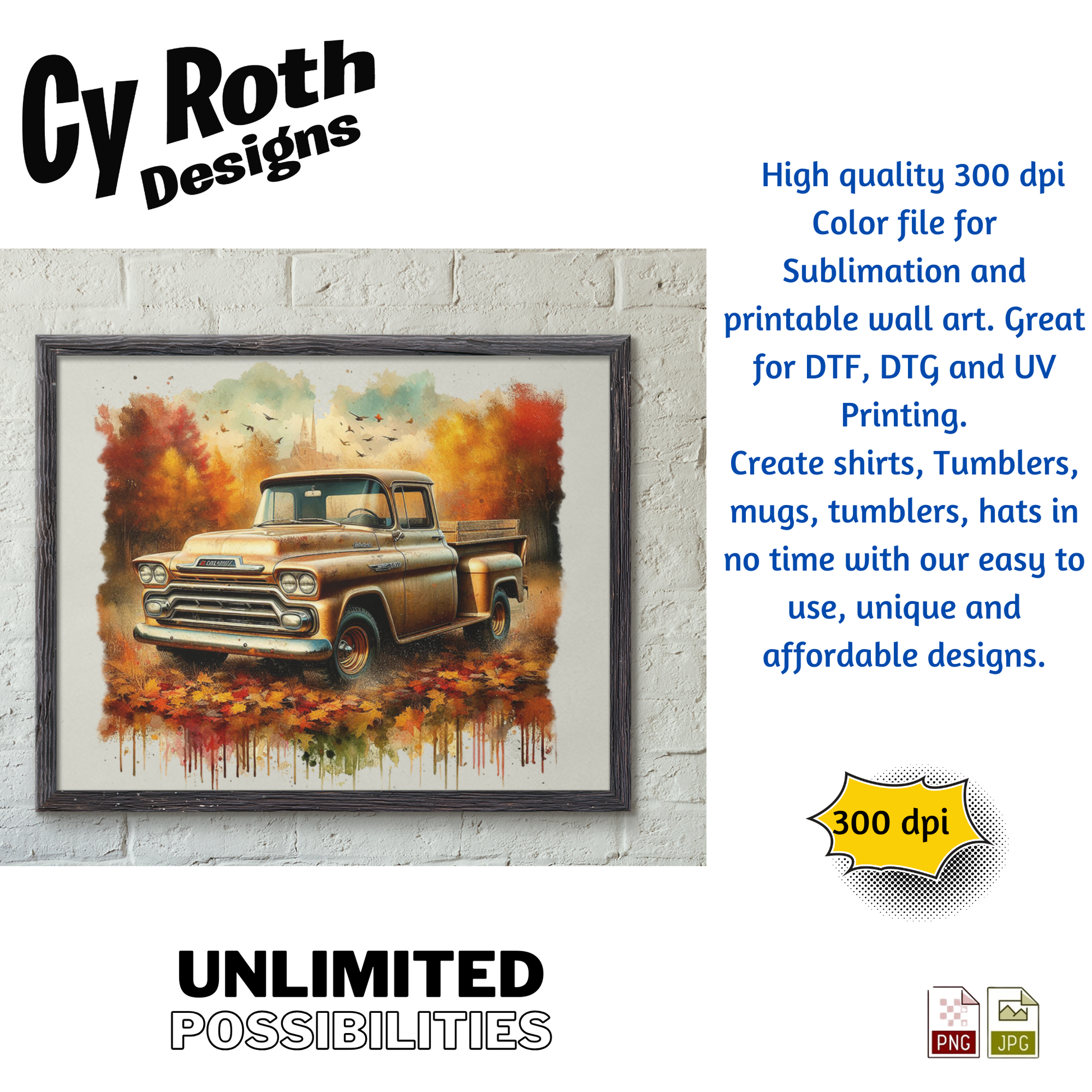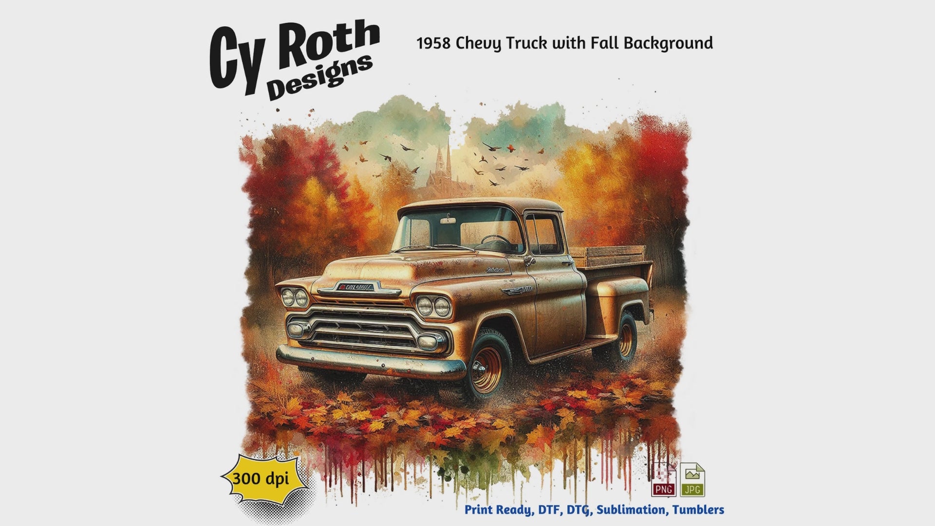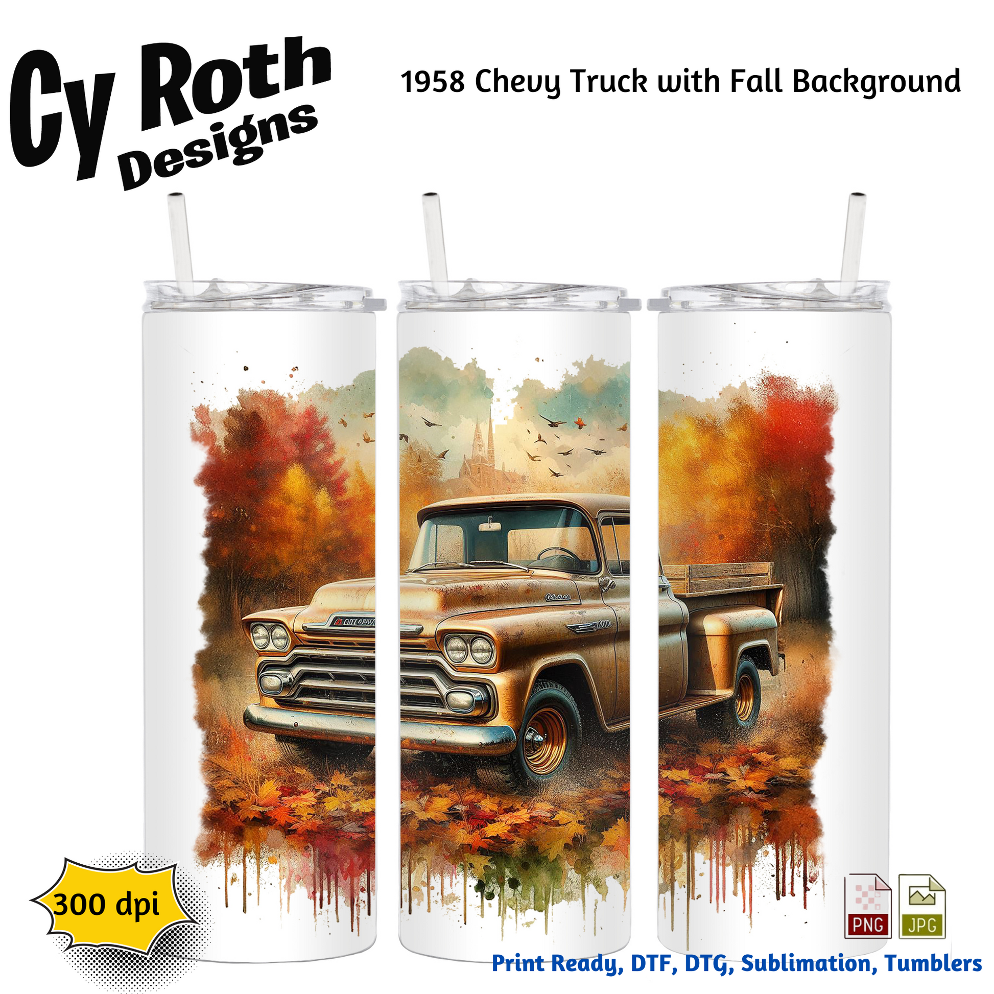 1958 Chevy Truck Sublimation Wall Art 20oz skinny Tumbler PNG JPG file, shirt PNG, Junk Journal image