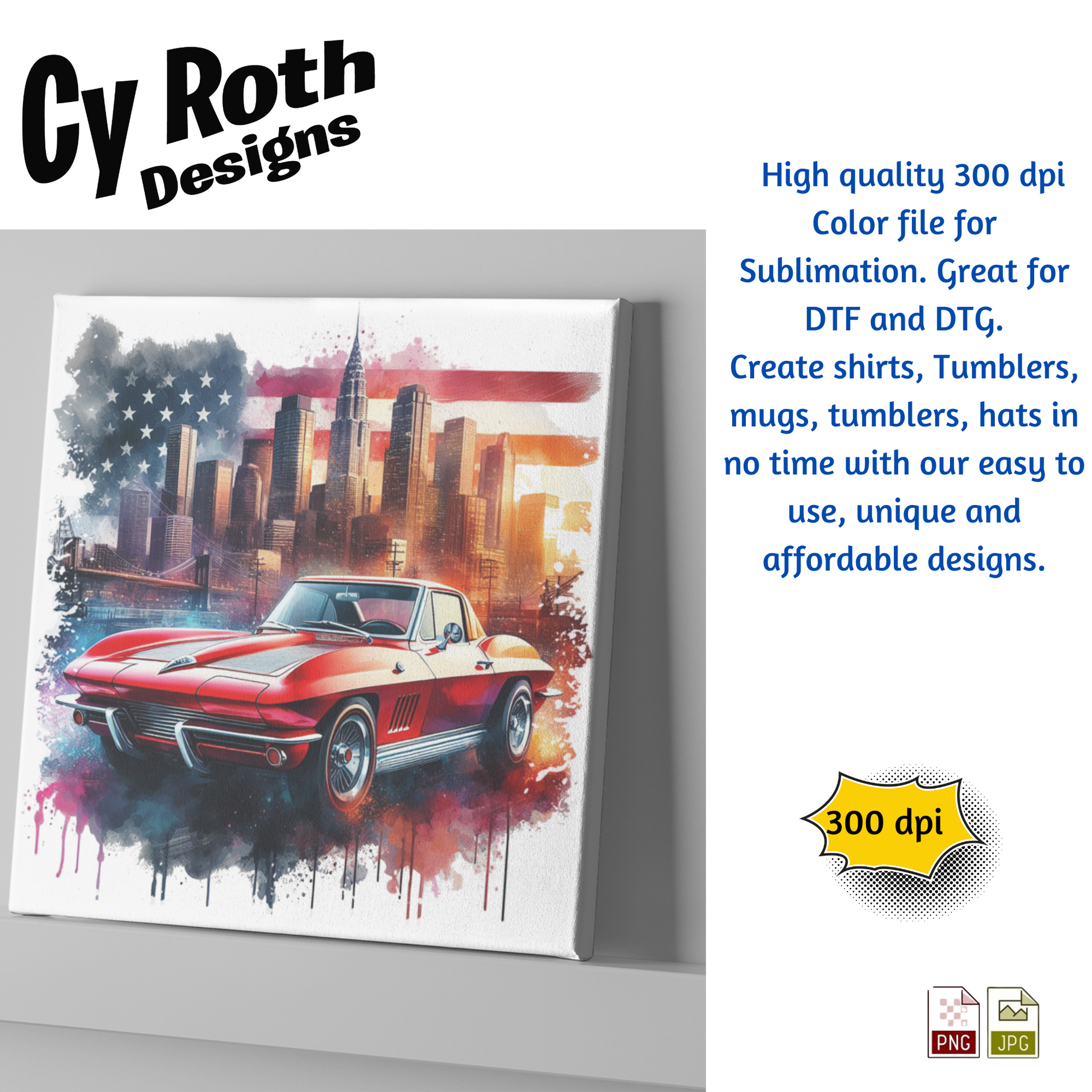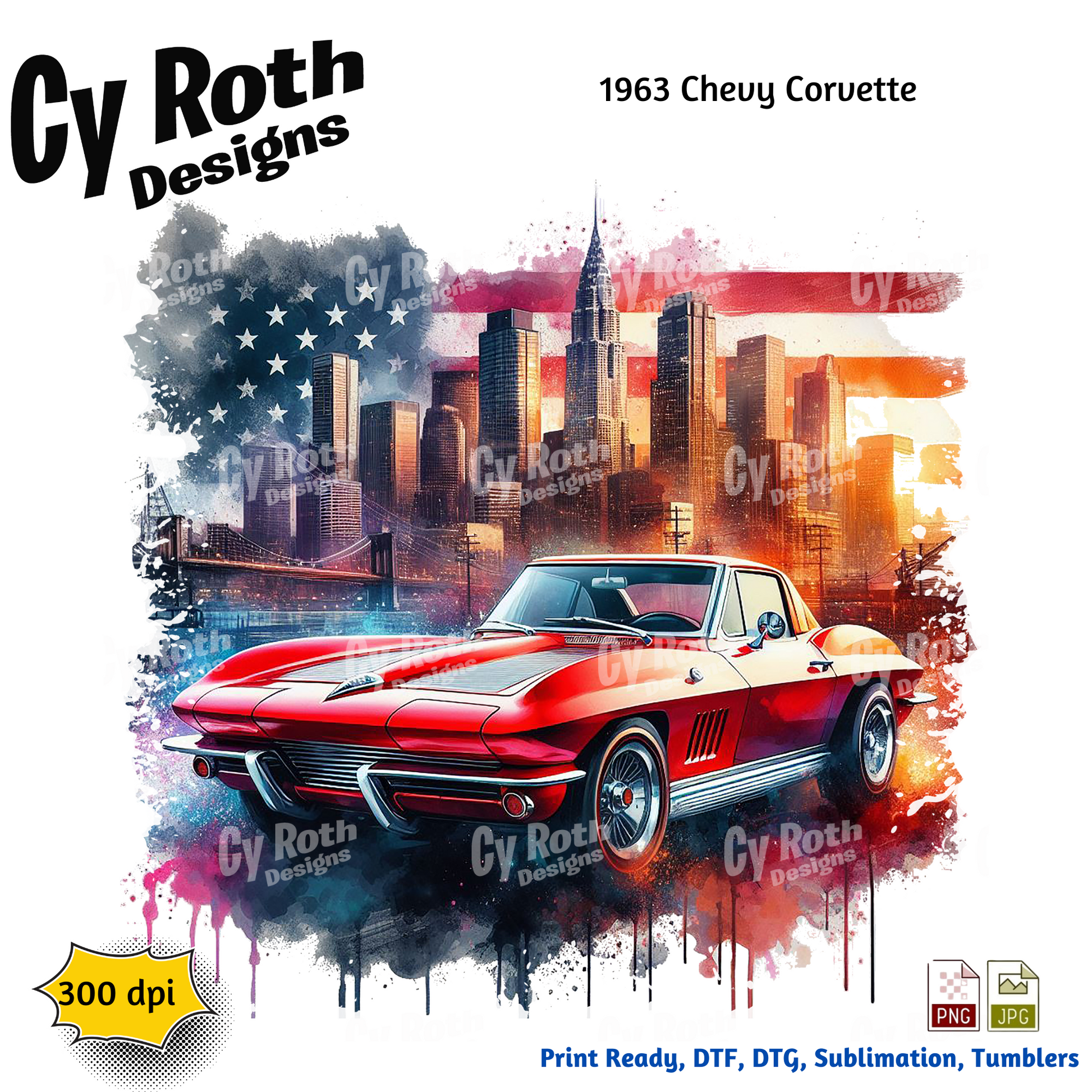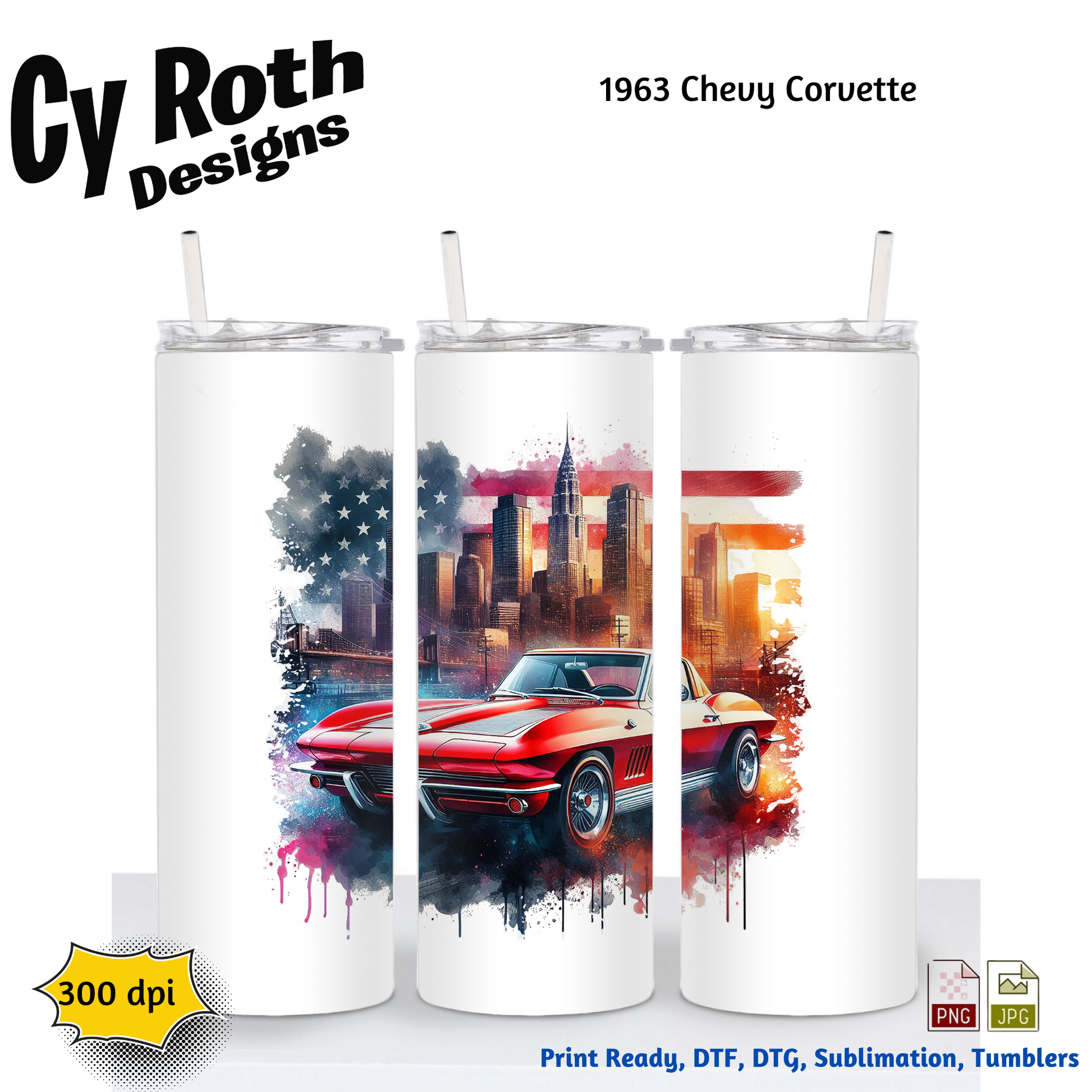1963 Corvette Sublimation PNG JPG file, Wall Art 20oz skinny Tumbler, shirt PNG, Junk Journal image