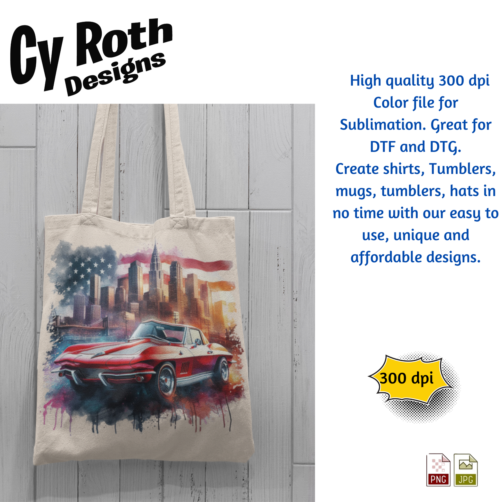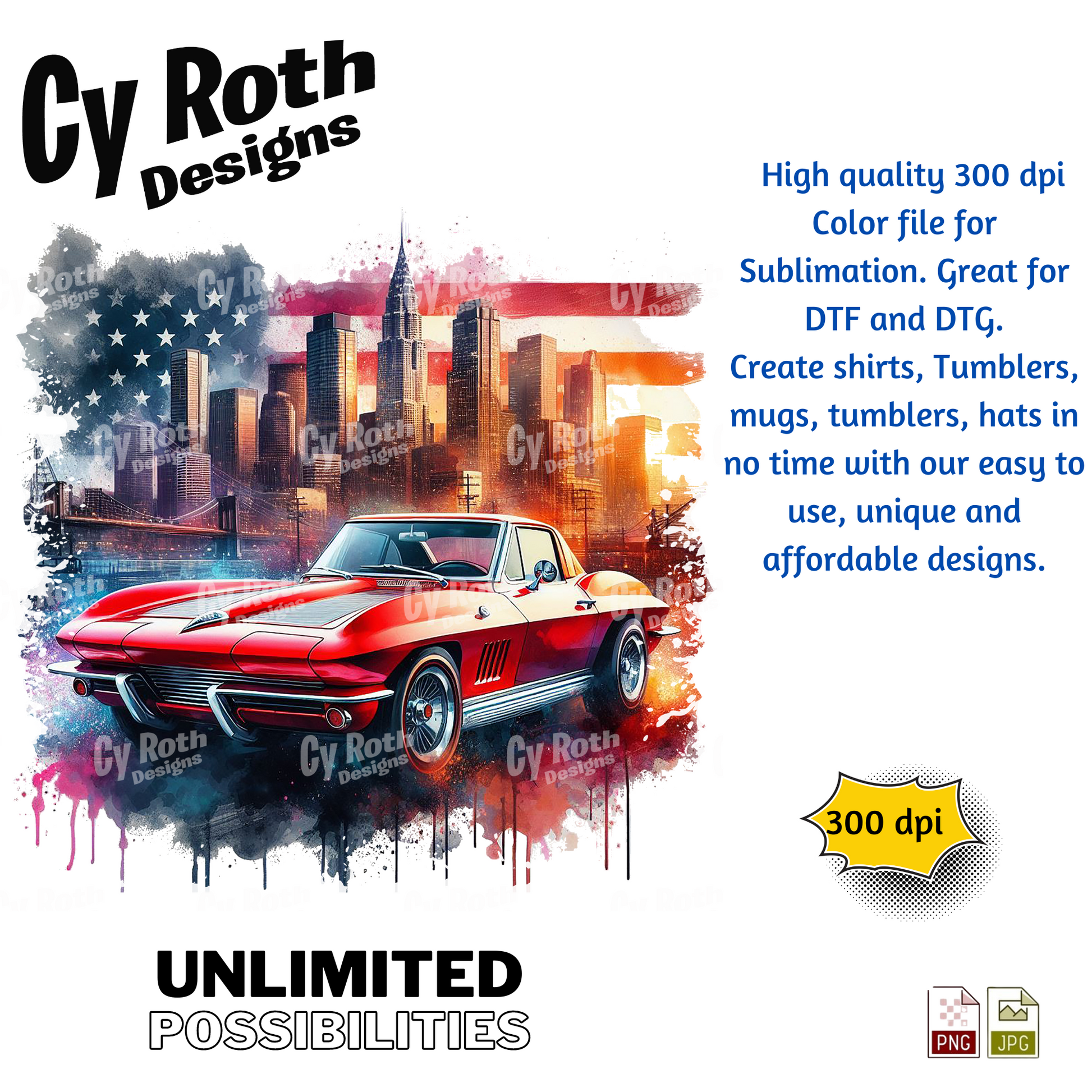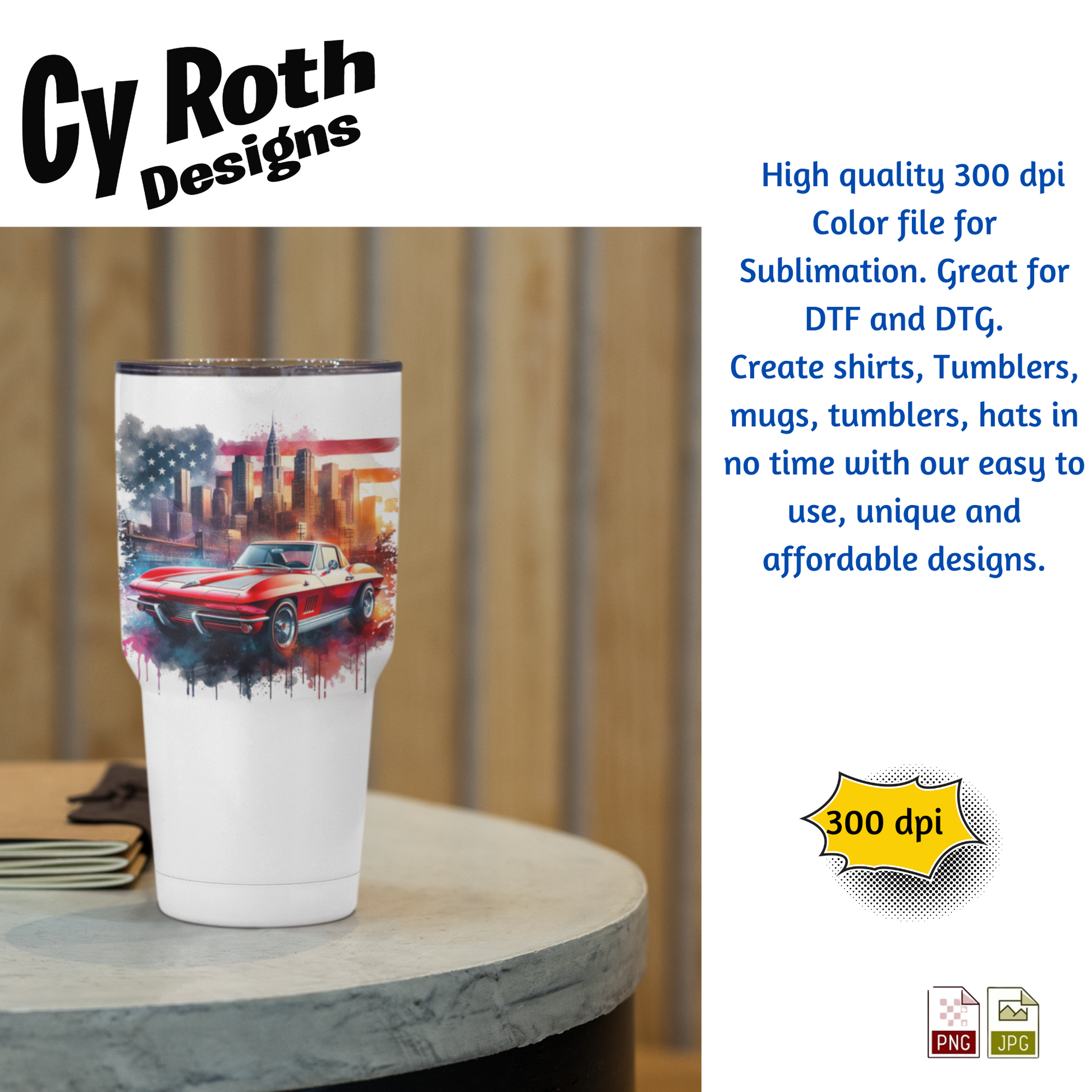 1963 Corvette Sublimation PNG JPG file, Wall Art 20oz skinny Tumbler, shirt PNG, Junk Journal image