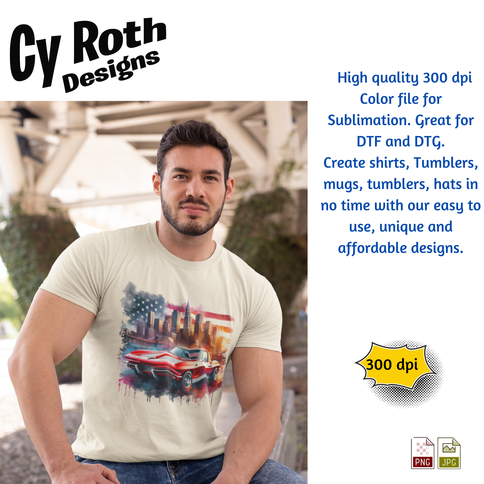 1963 Chevy Corvette sublimation file to make tumblers, t-Shirts, Printable Wall Art, Sweatshirts. Great to make personalized gifts. Popular junk journal image also.
