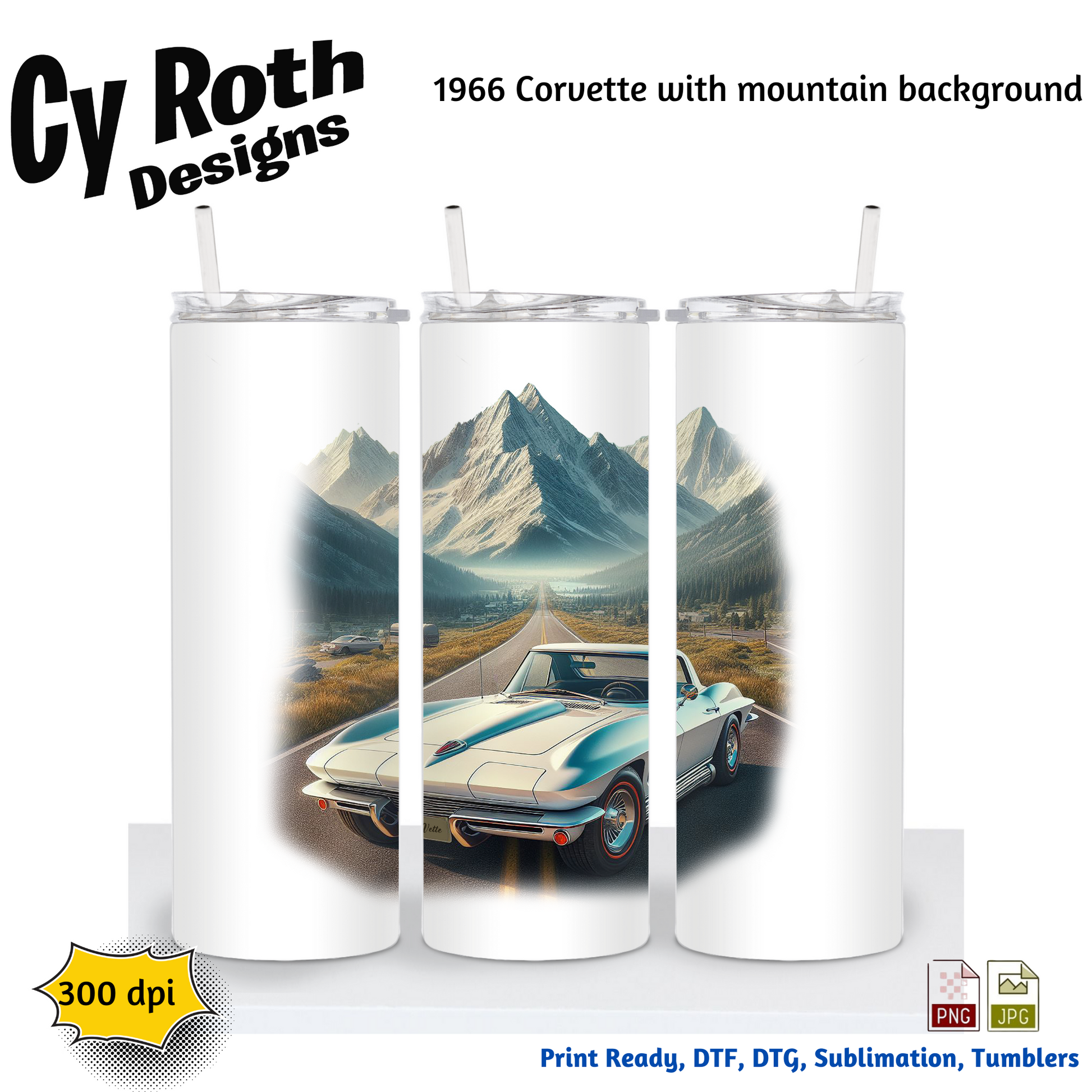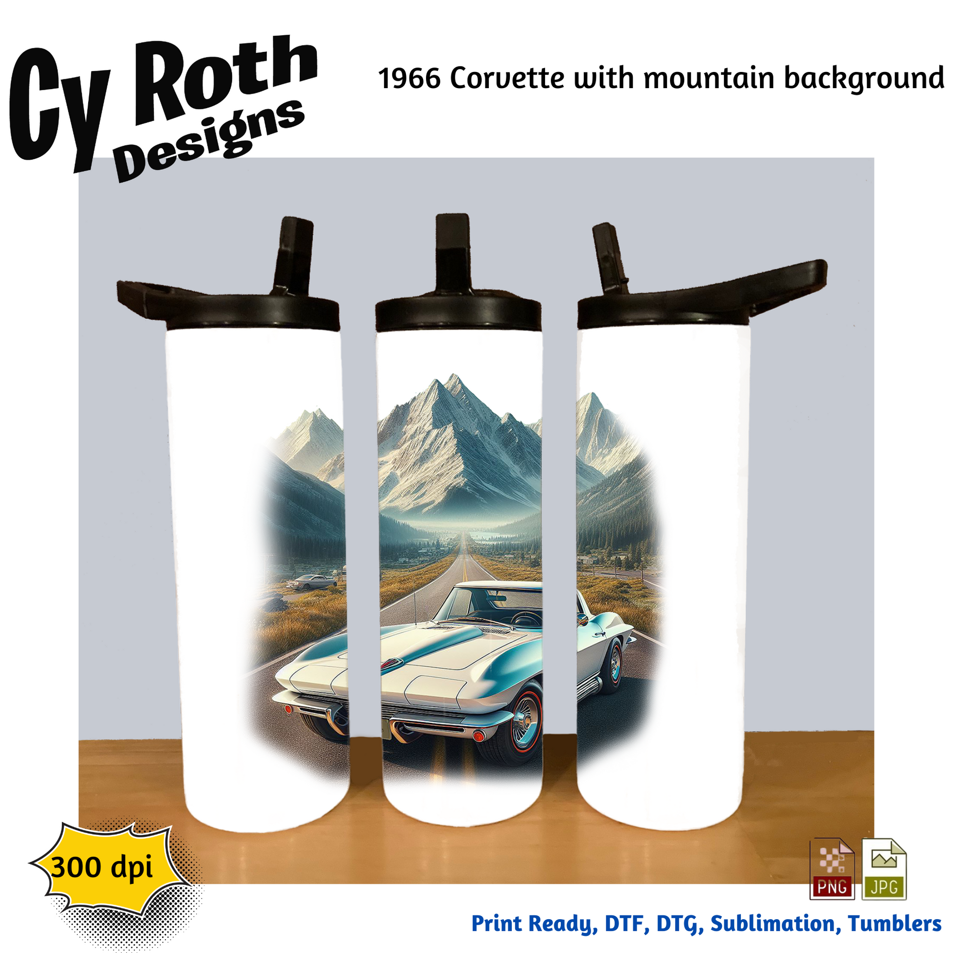 1966 Corvette Sublimation PNG JPG file, Wall Art 20oz skinny Tumbler, shirt PNG, Junk Journal image