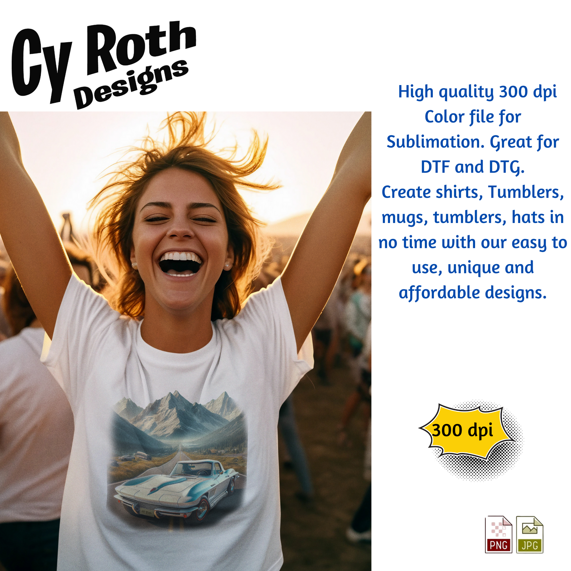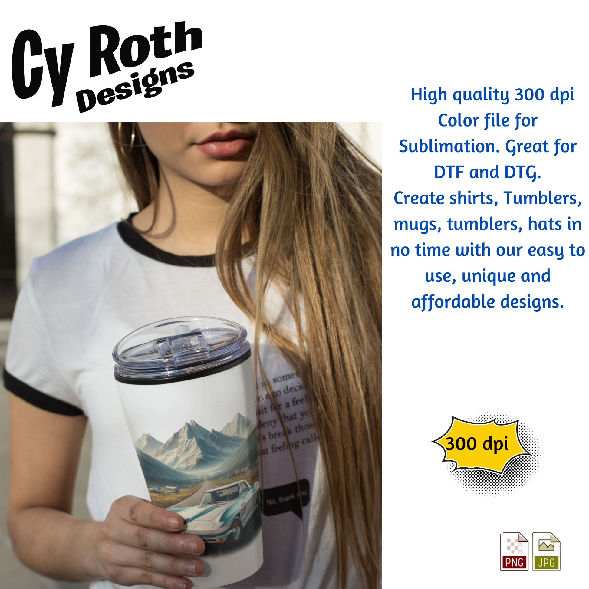 1966 Chevy Corvette sublimation file to make tumblers, t-Shirts, Printable Wall Art, Sweatshirts. Great to make personalized gifts. Popular junk journal image also.