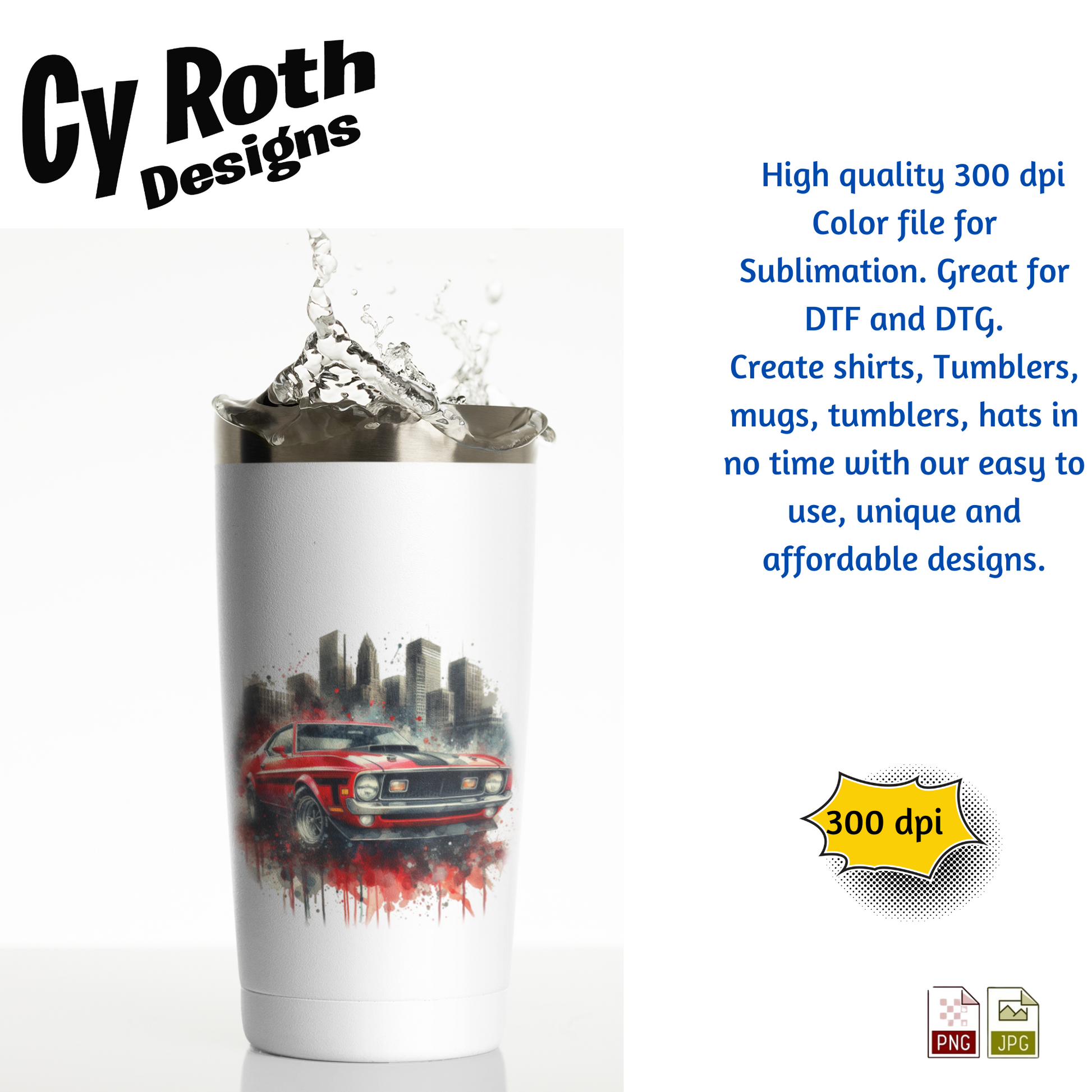 1971 Ford Mustang Mach-1 sublimation file to make tumblers, t-Shirts, Printable Wall Art, Sweatshirts. Great to make personalized gifts. Popular junk journal image also.