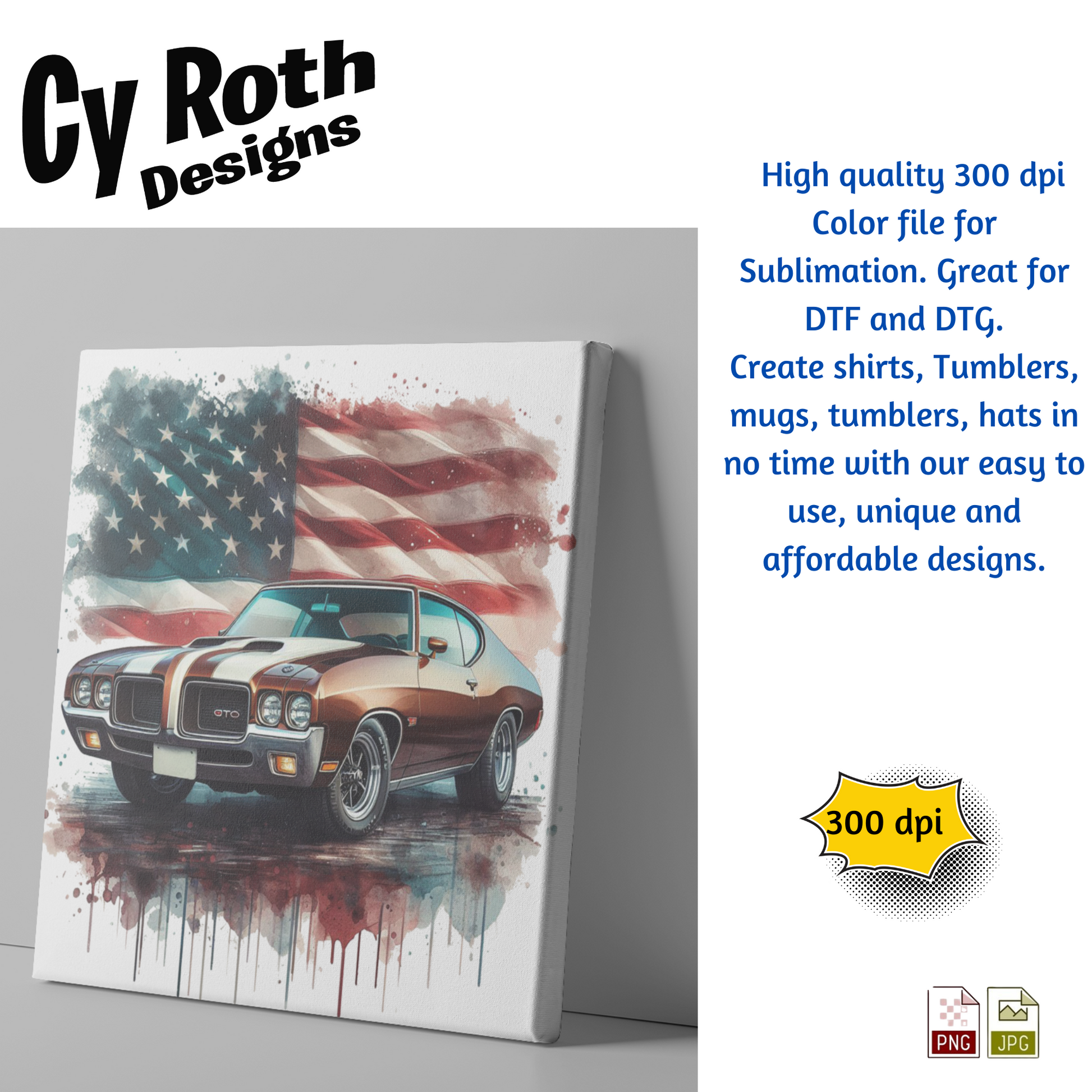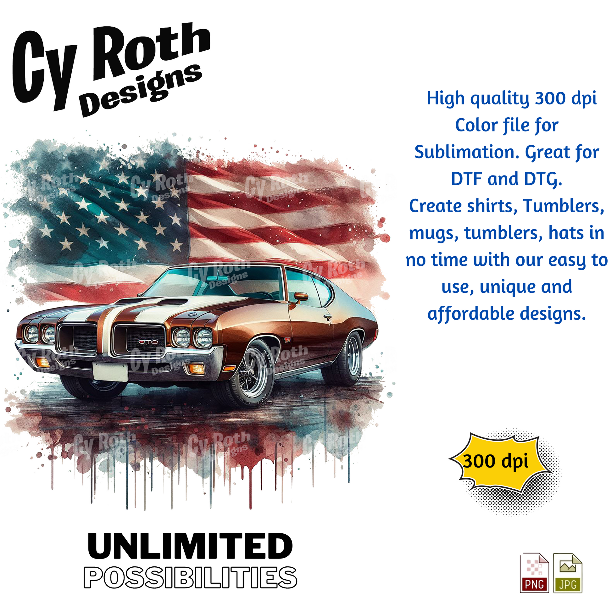 1971 Pontiac GTO sublimation file to make tumblers, t-Shirts, Printable Wall Art, Sweatshirts. Great to make personalized gifts. Popular junk journal image also.